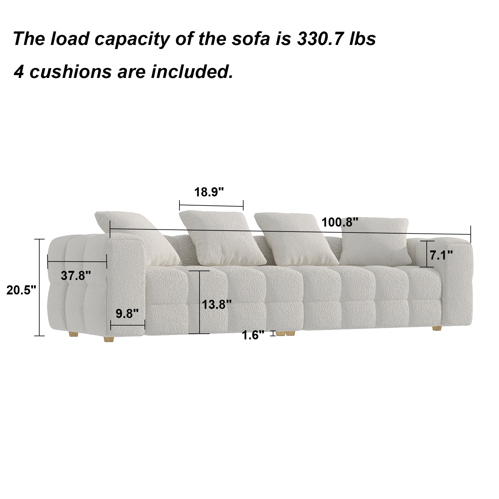 Mesurant 100,8'L x 37,8'P x 20,5'H, ce canapé est parfait pour un usage domestique.