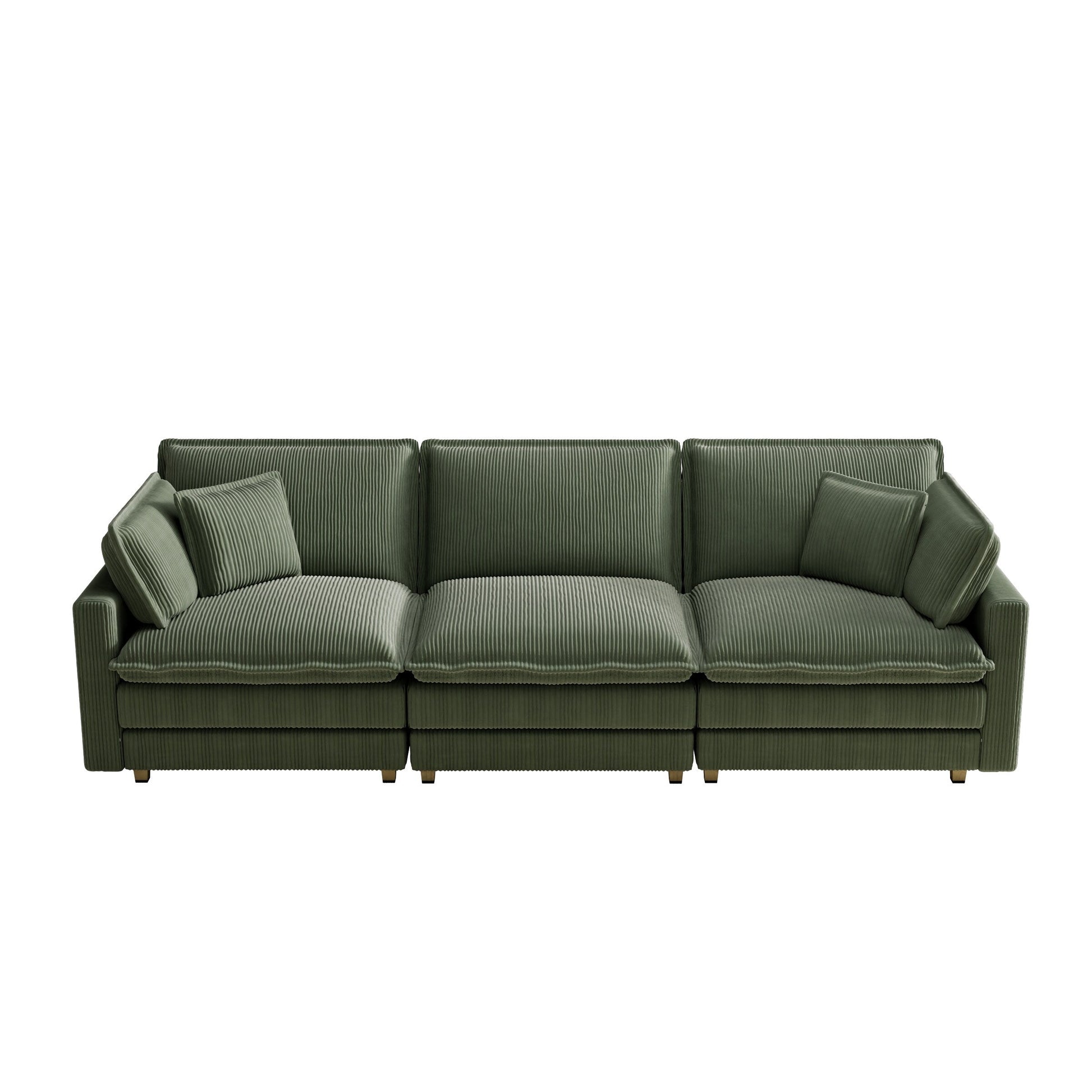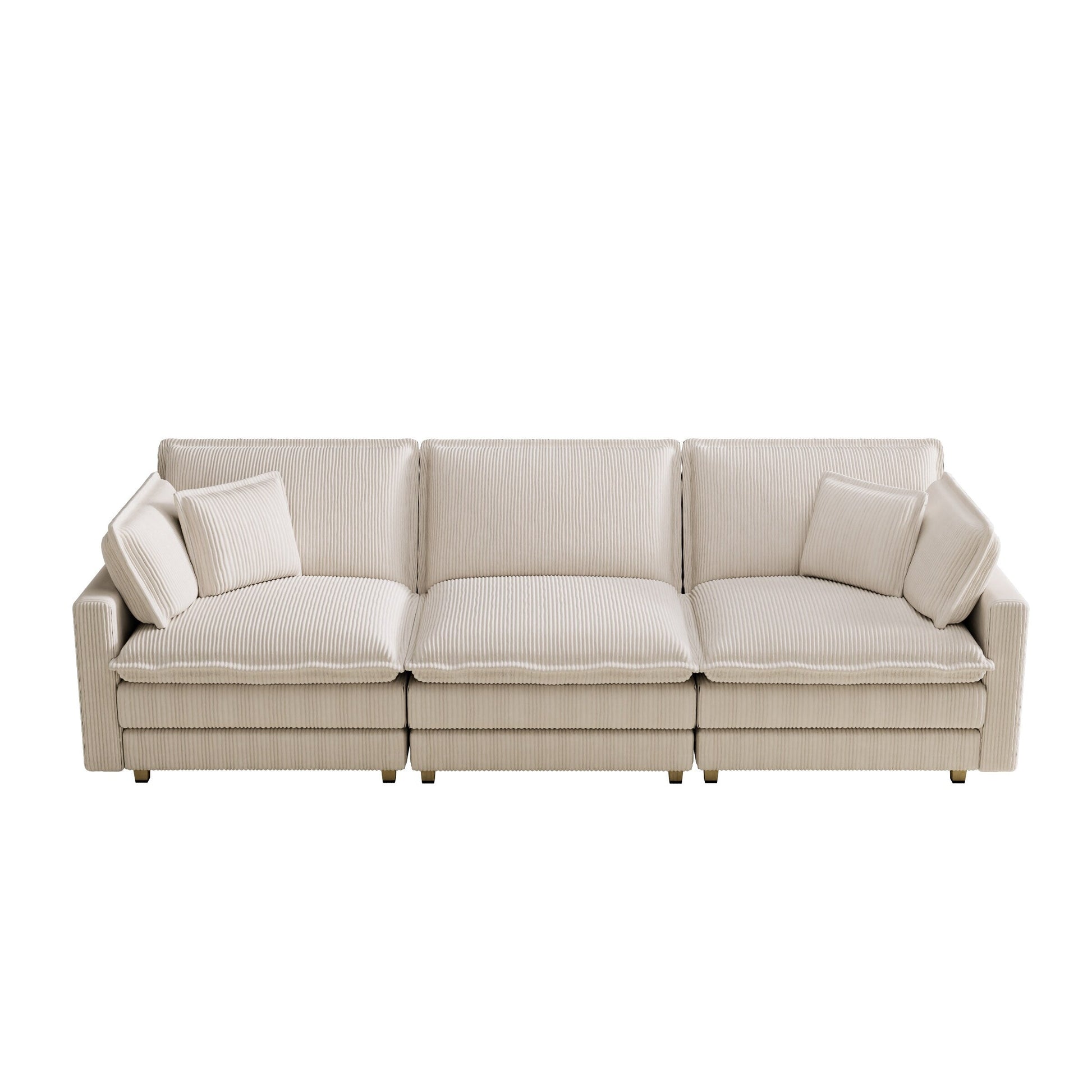 Canapé 4 places classique moderne en velours côtelé 103 - Assise profonde, avec 4 coussins pour le salon