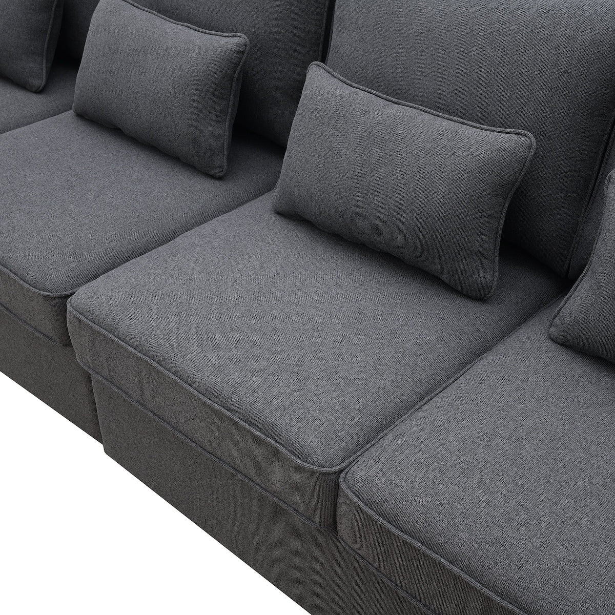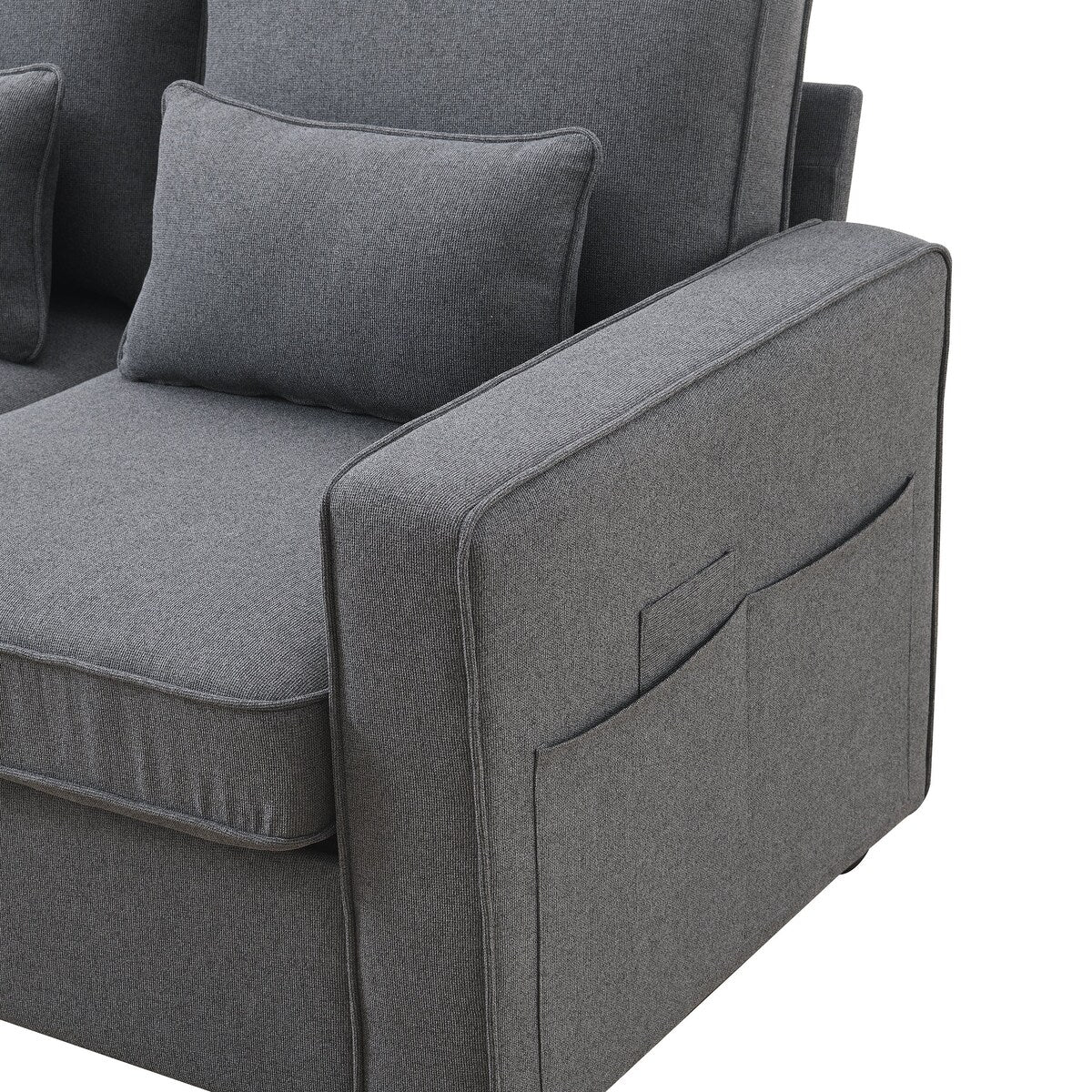 Canapé 4 places en lin moderne avec accoudoirs, poches et 4 coussins
