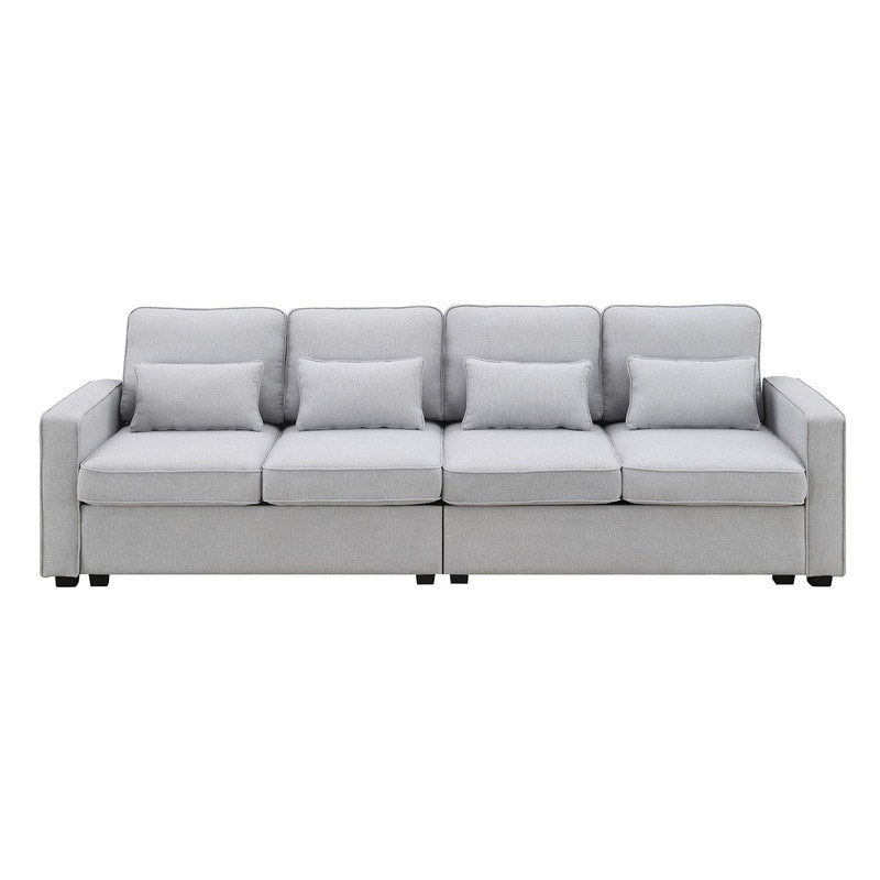 Canapé rembourré 4 places avec poches pour accoudoirs et 4 coussins, canapé moderne en lin de style minimaliste