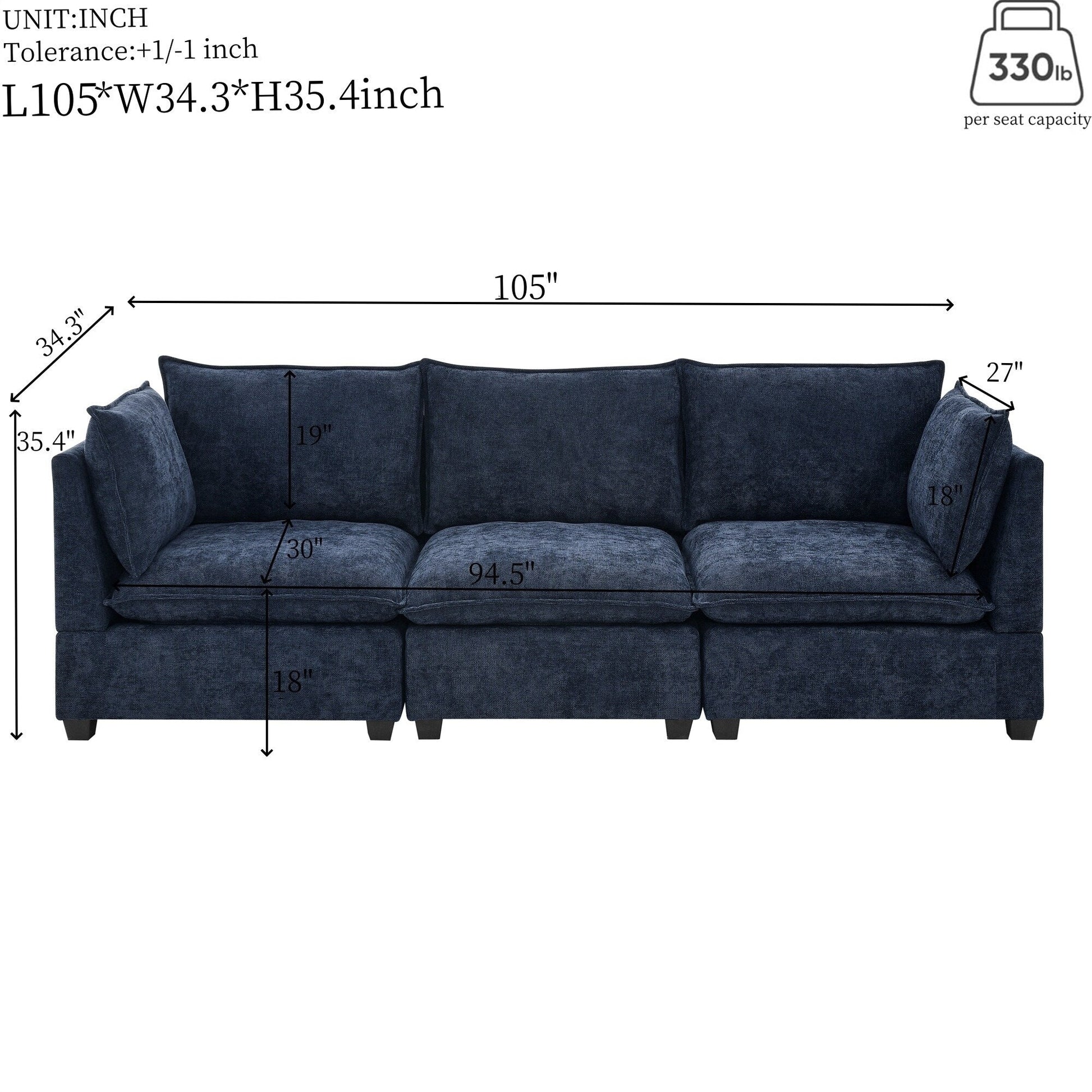 Canapé 3 places en chenille 105 avec coussins à 2 couches, mousse haute résilience