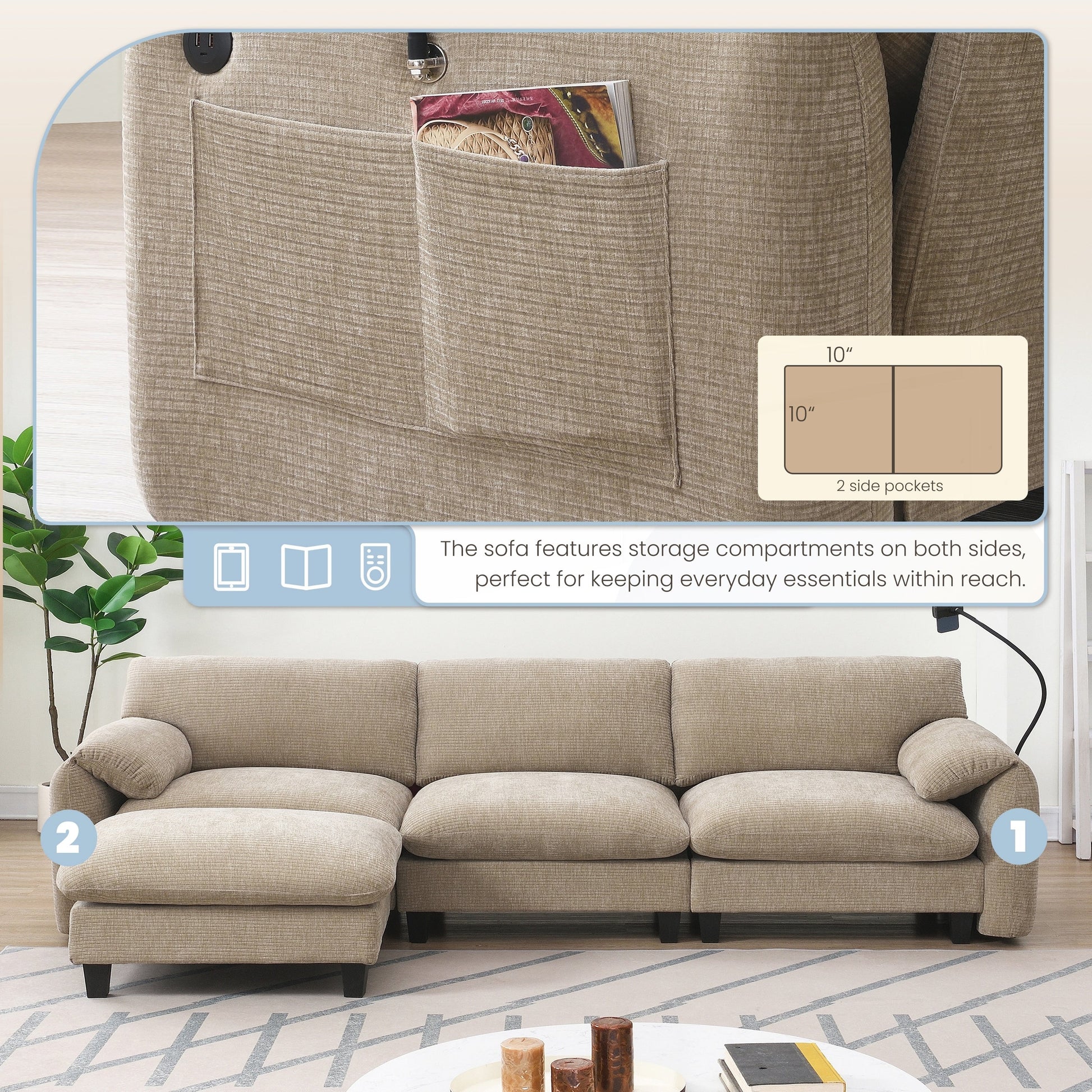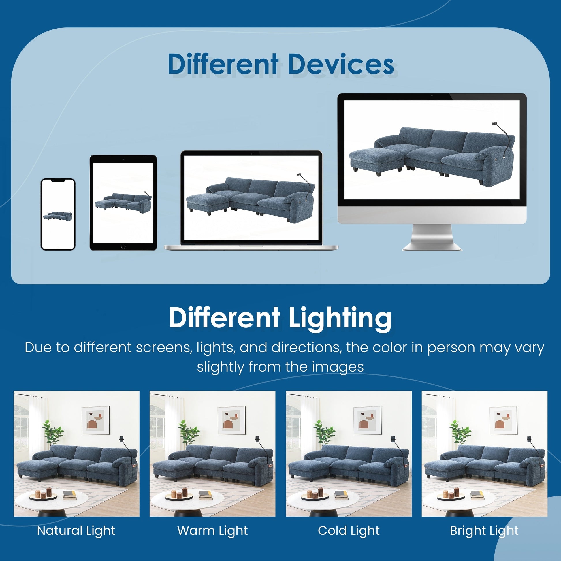 Design soigné : La conception modulaire permet une personnalisation aisée, vous permettant de réorganiser les éléments selon votre espace ou de modifier l'agencement selon vos envies. Le tissu chenille apporte texture et élégance au canapé, lui procurant une sensation de douceur et de confort, tout en rehaussant l'esthétique générale par son allure sophistiquée.