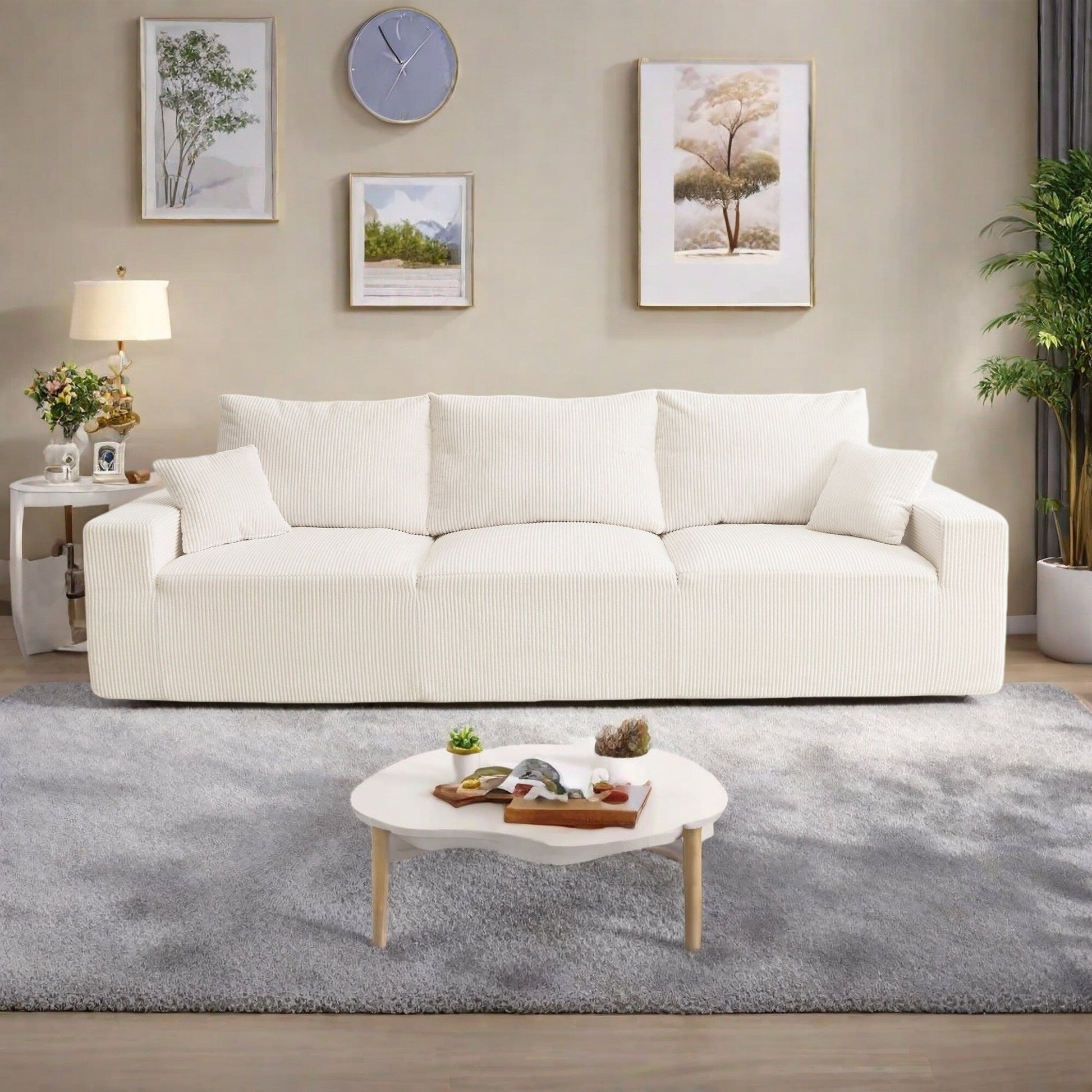 Canapé 4 places en velours côtelé 110, mousse à reprise lente (expansion 72 h, aucun assemblage requis)