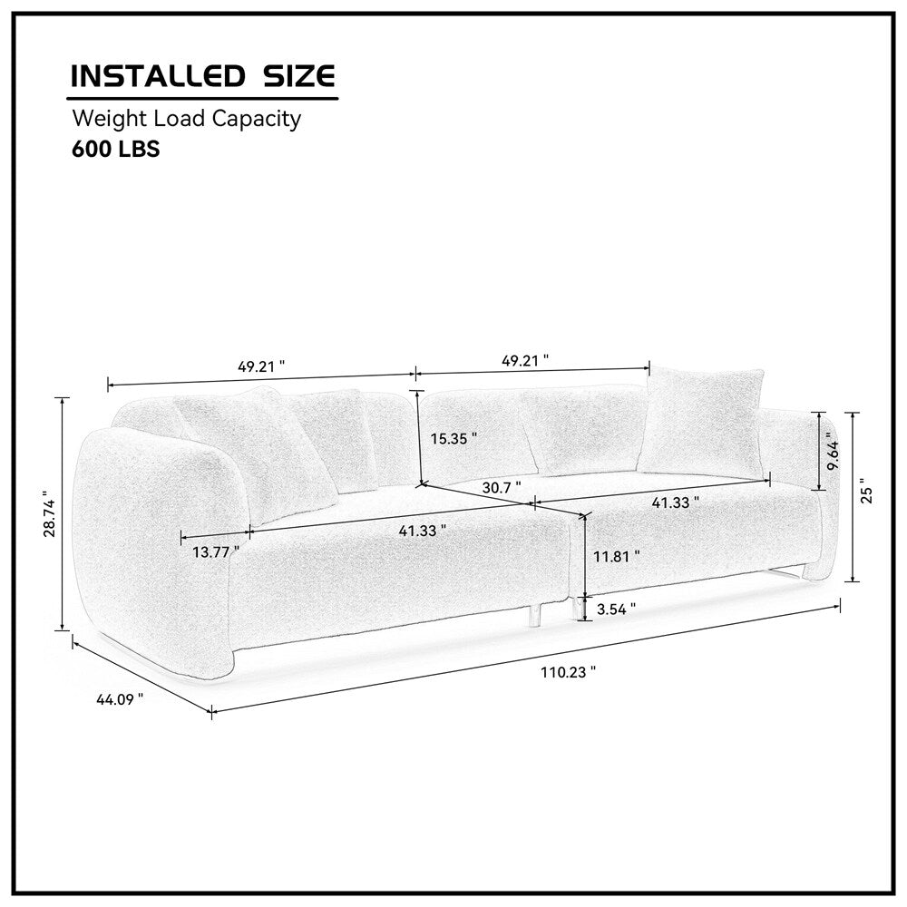 - Taille du produit : ce canapé pour le salon mesure 110,23'P x 44,09'L x 28,97'H, sa taille spacieuse est idéale pour les grandes familles et les invités de réception, son design élégant est idéal pour diverses applications telles que les appartements, les salons et les clubs.