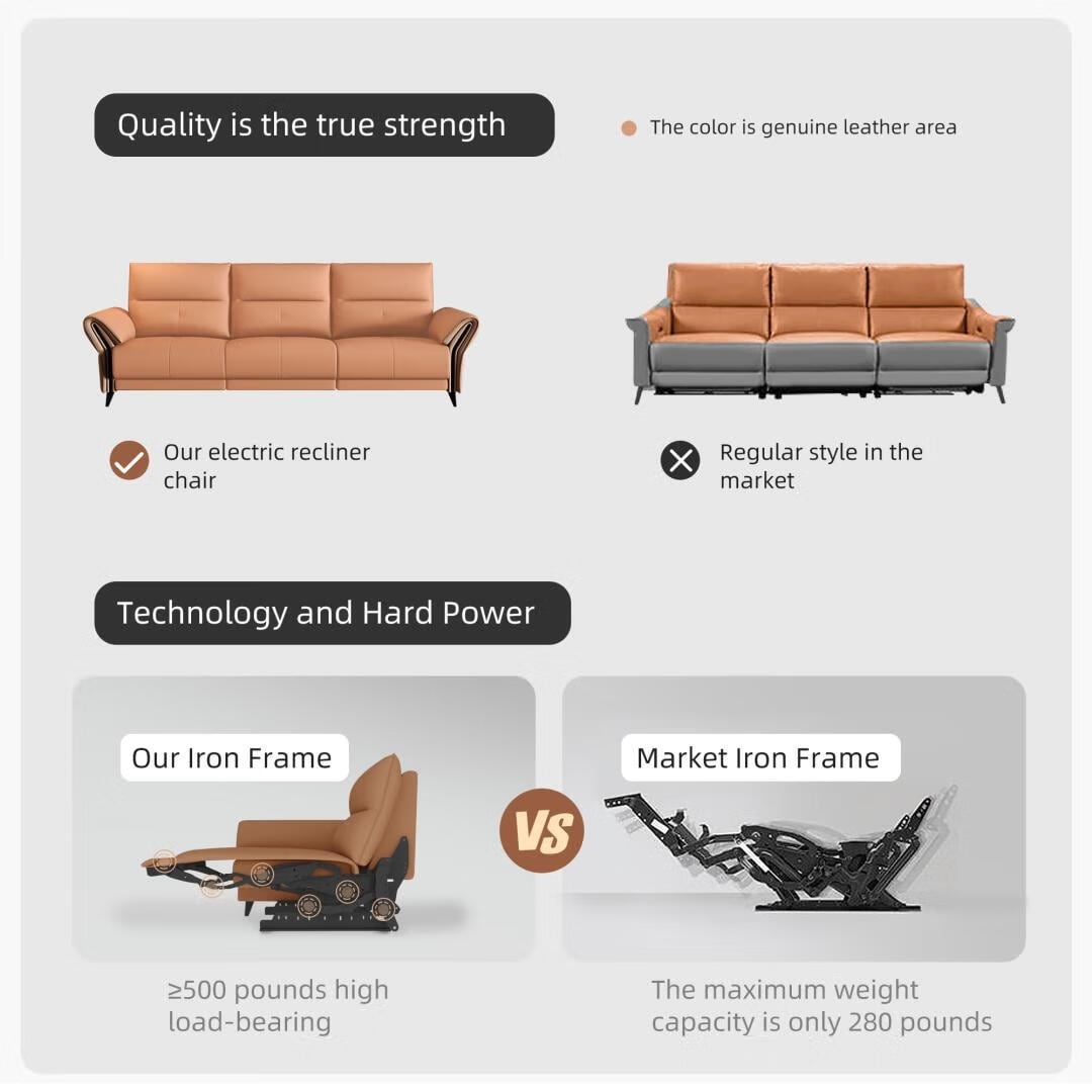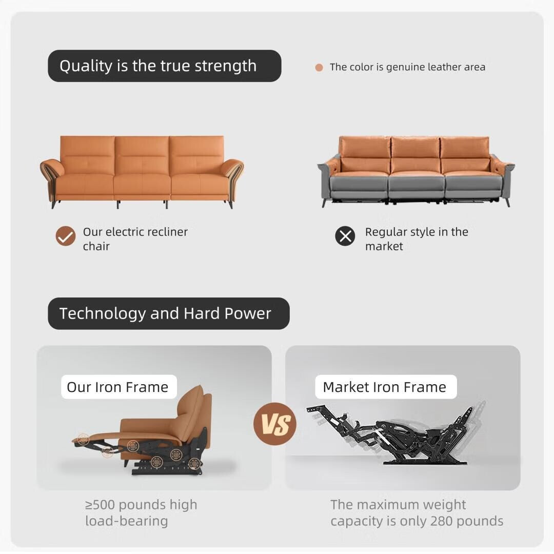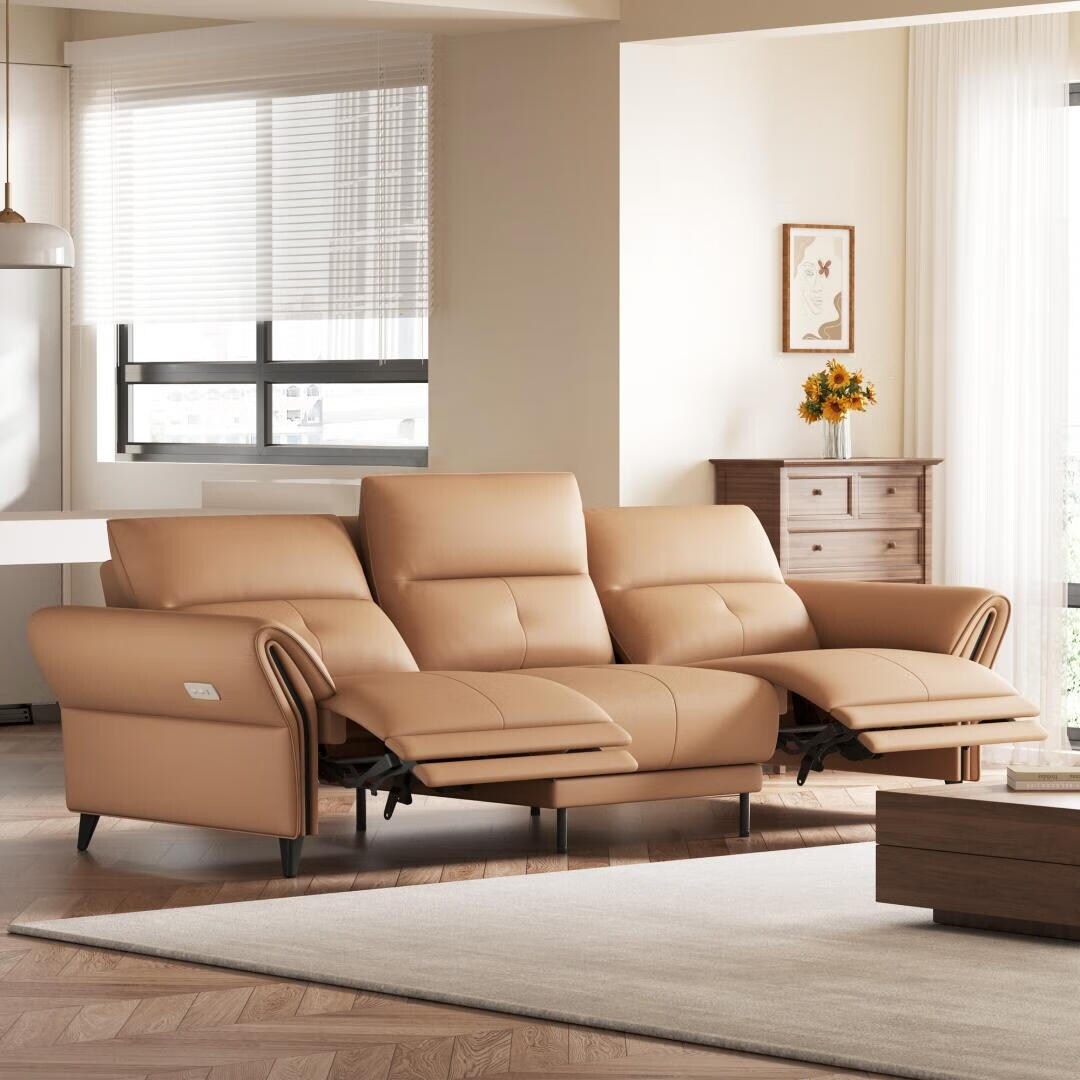Canapé inclinable électrique en cuir végétalien de 112,5 pouces avec port de chargement USB