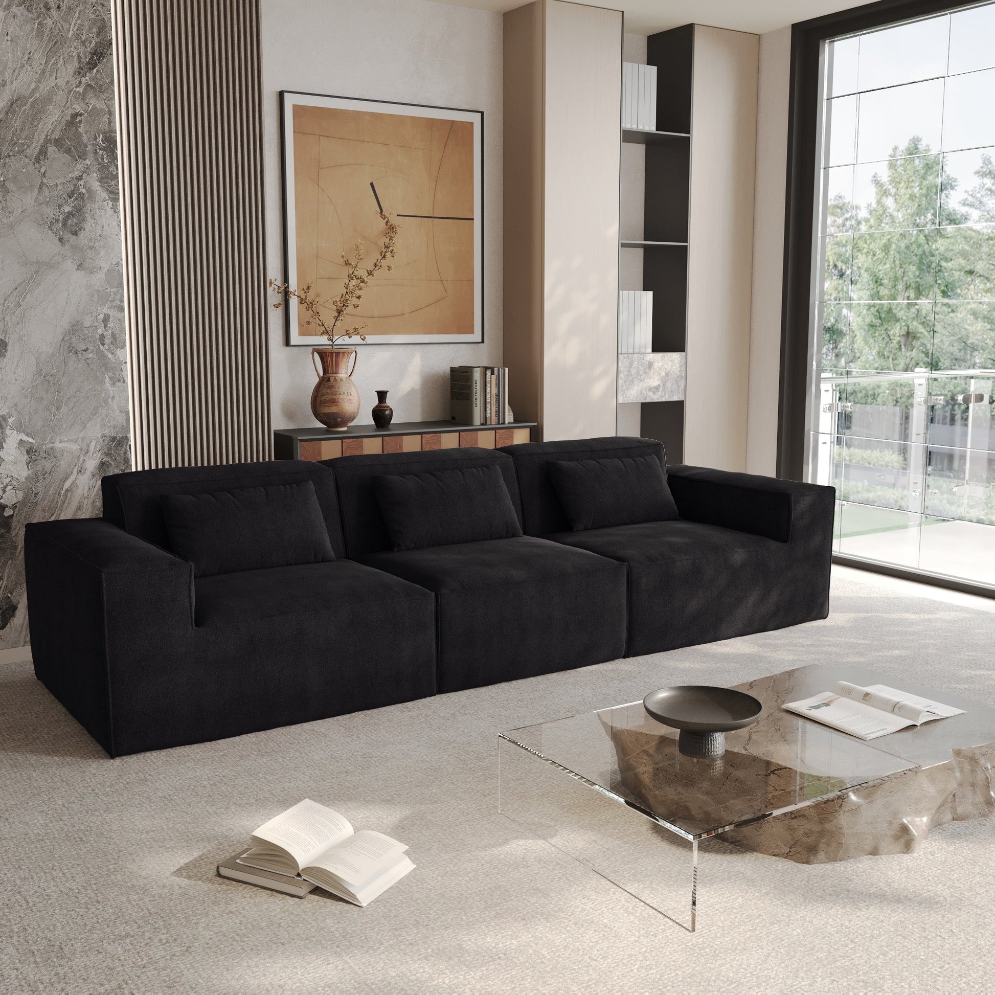 Canapé modulable 3 places en velours côtelé avec housse amovible et 3 coussins