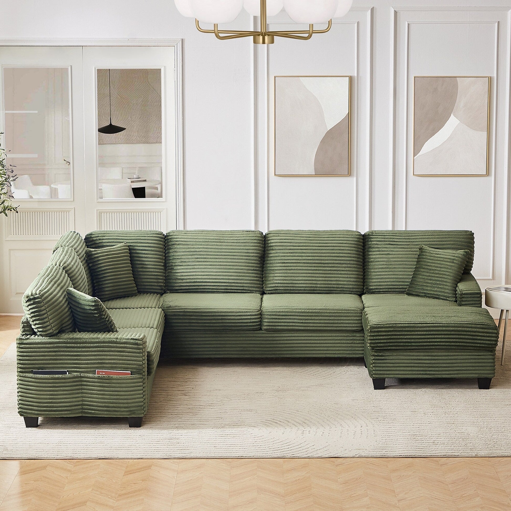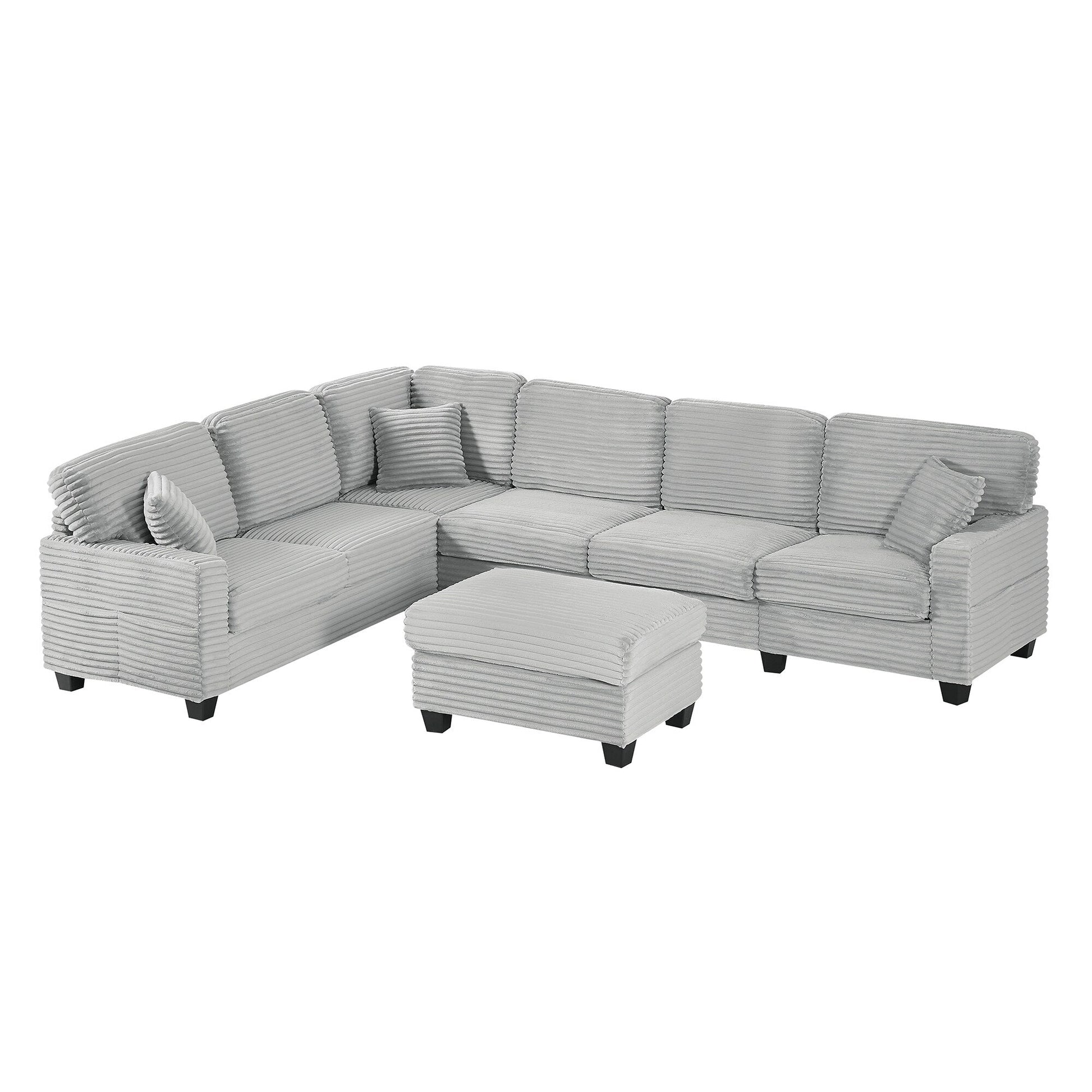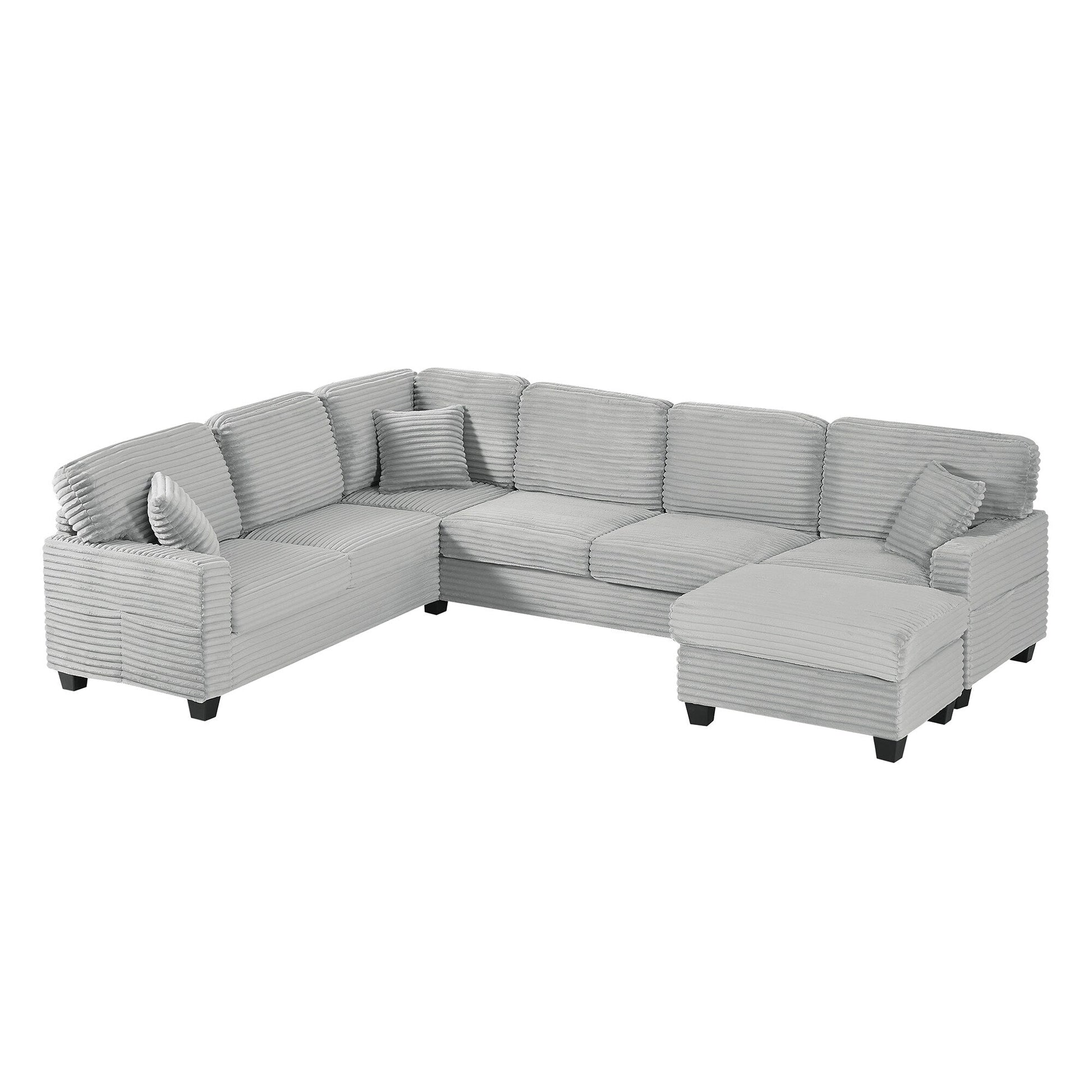 Canapé sectionnel en U en velours côtelé de 125 po avec pouf amovible