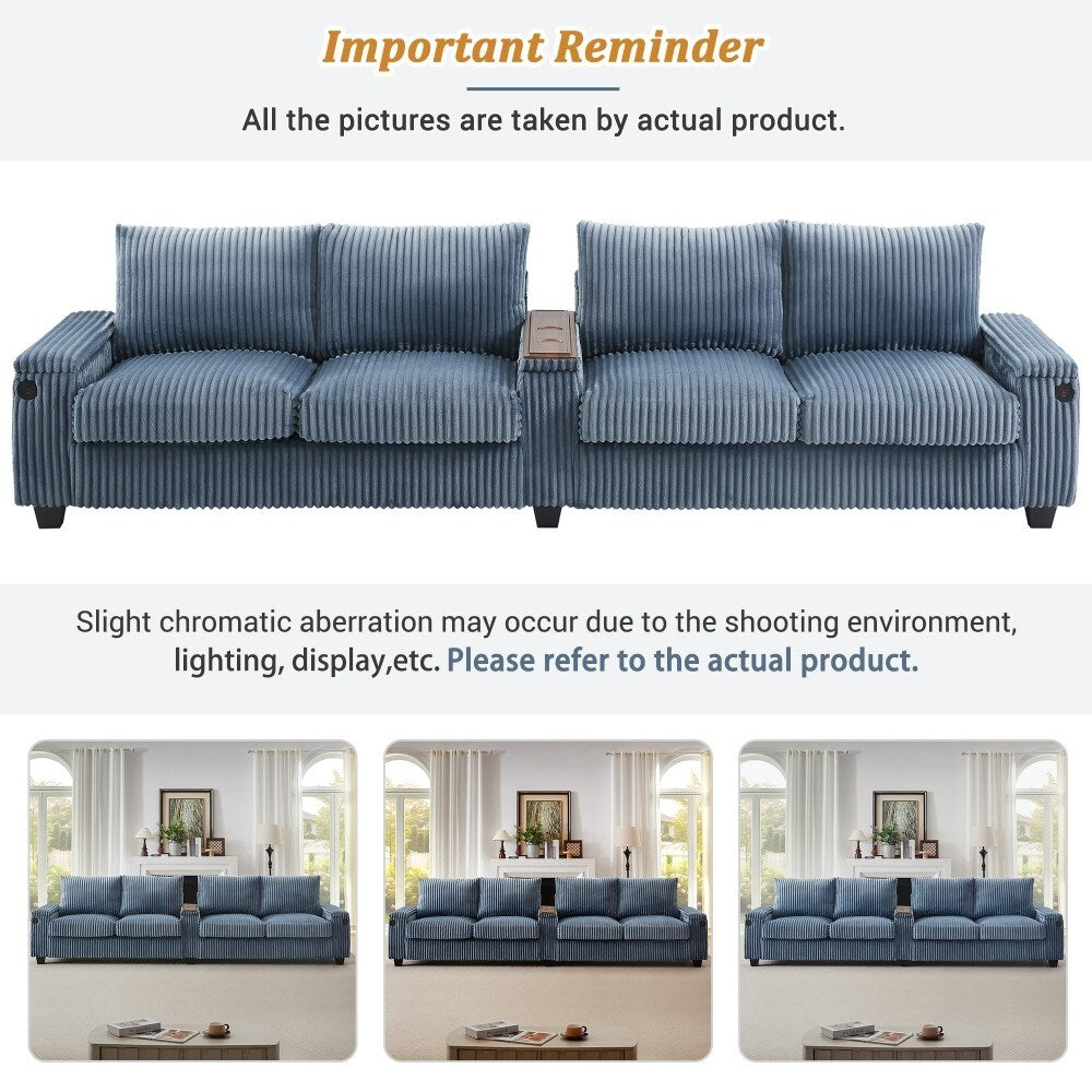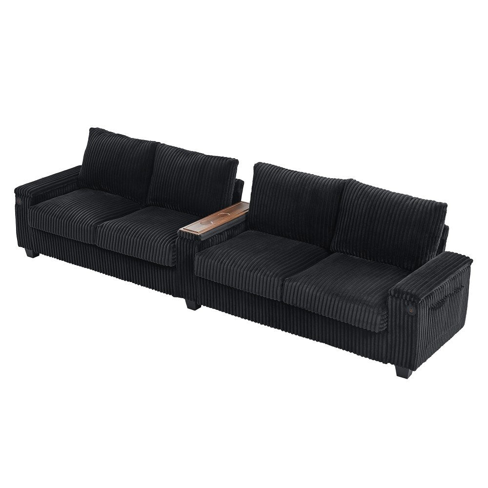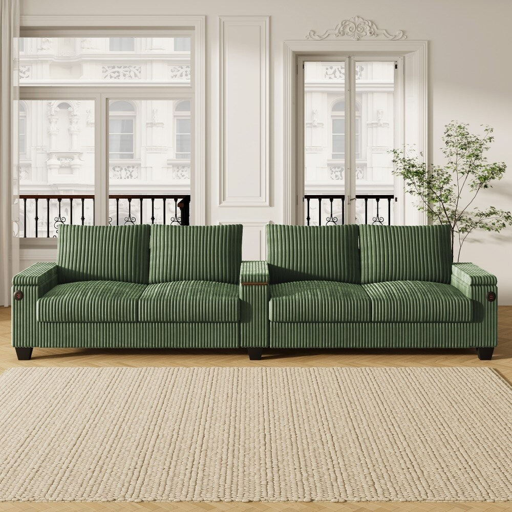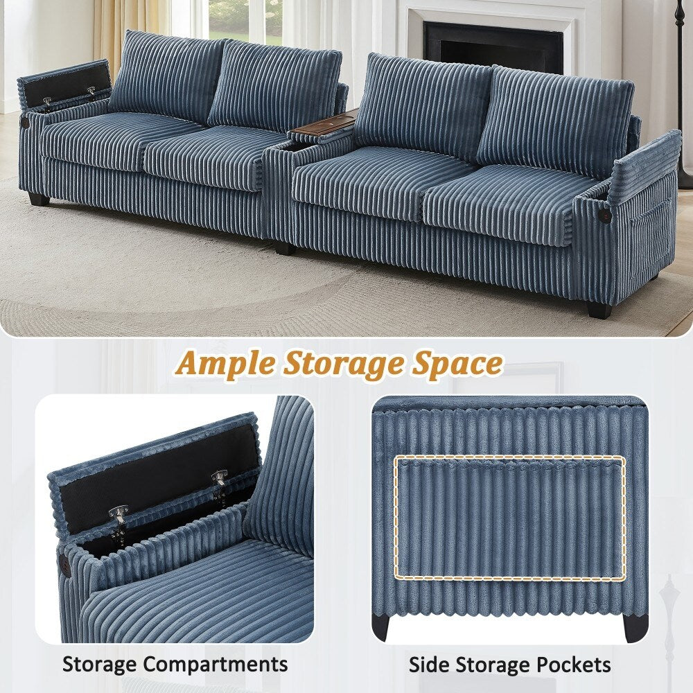 Canapé-lit 4 places moderne en velours côtelé avec ports USB et porte-gobelets rabattables