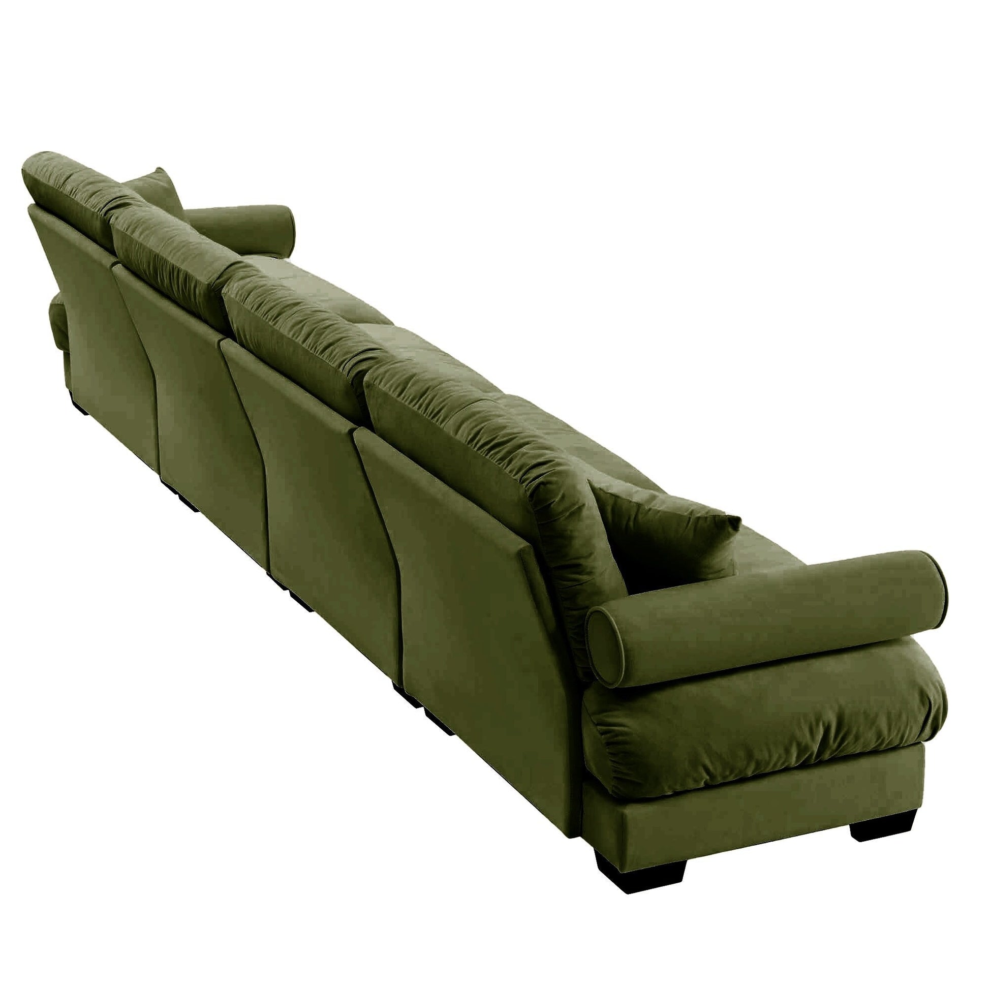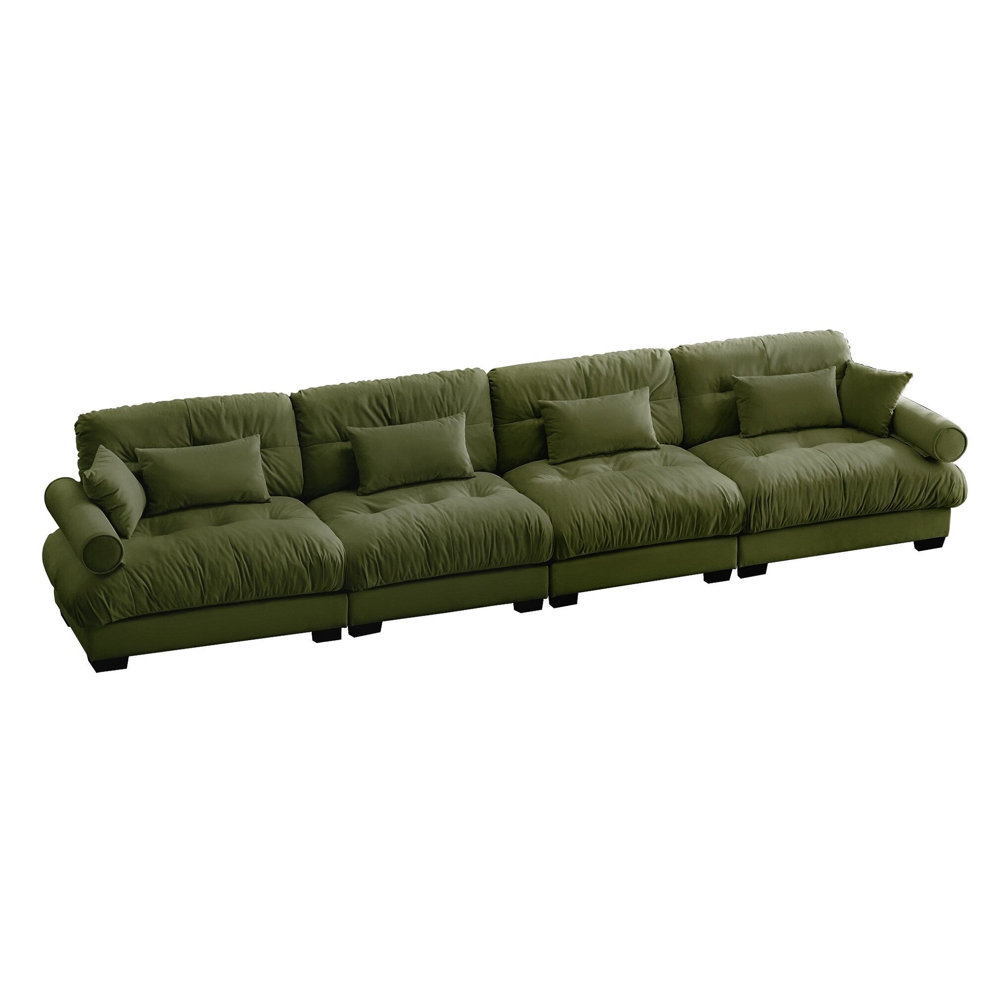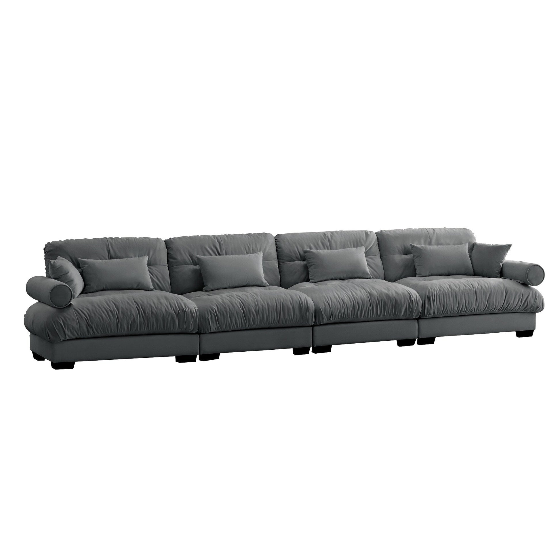 Canapé 4 places en velours 166 avec accoudoirs traversins et coussins en éponge haute résilience
