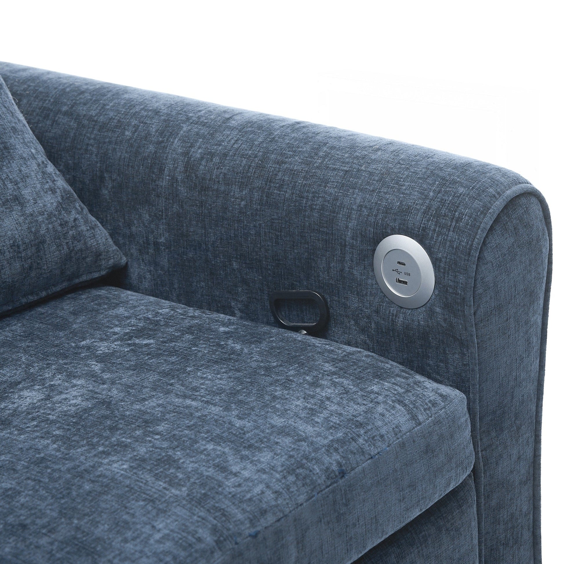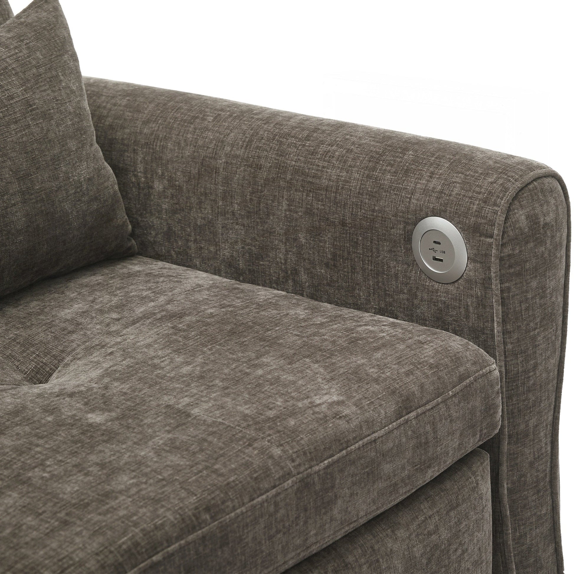 Deux ports de charge USB. Équipé de deux ports de charge USB intégrés idéalement situés sur l'accoudoir, ce canapé vous permet de recharger facilement smartphones, tablettes ou autres appareils électroniques sans quitter votre siège. Accoudoirs incurvés élégants avec détails capitonnés. Le canapé est doté d'accoudoirs gracieusement arrondis qui offrent à la fois un meilleur soutien des bras et une silhouette intemporelle et élégante. Les détails capitonnés sur les dossiers et les coussins d'assise ajoutent une texture visuelle raffinée, rehaussant l'esthétique générale.