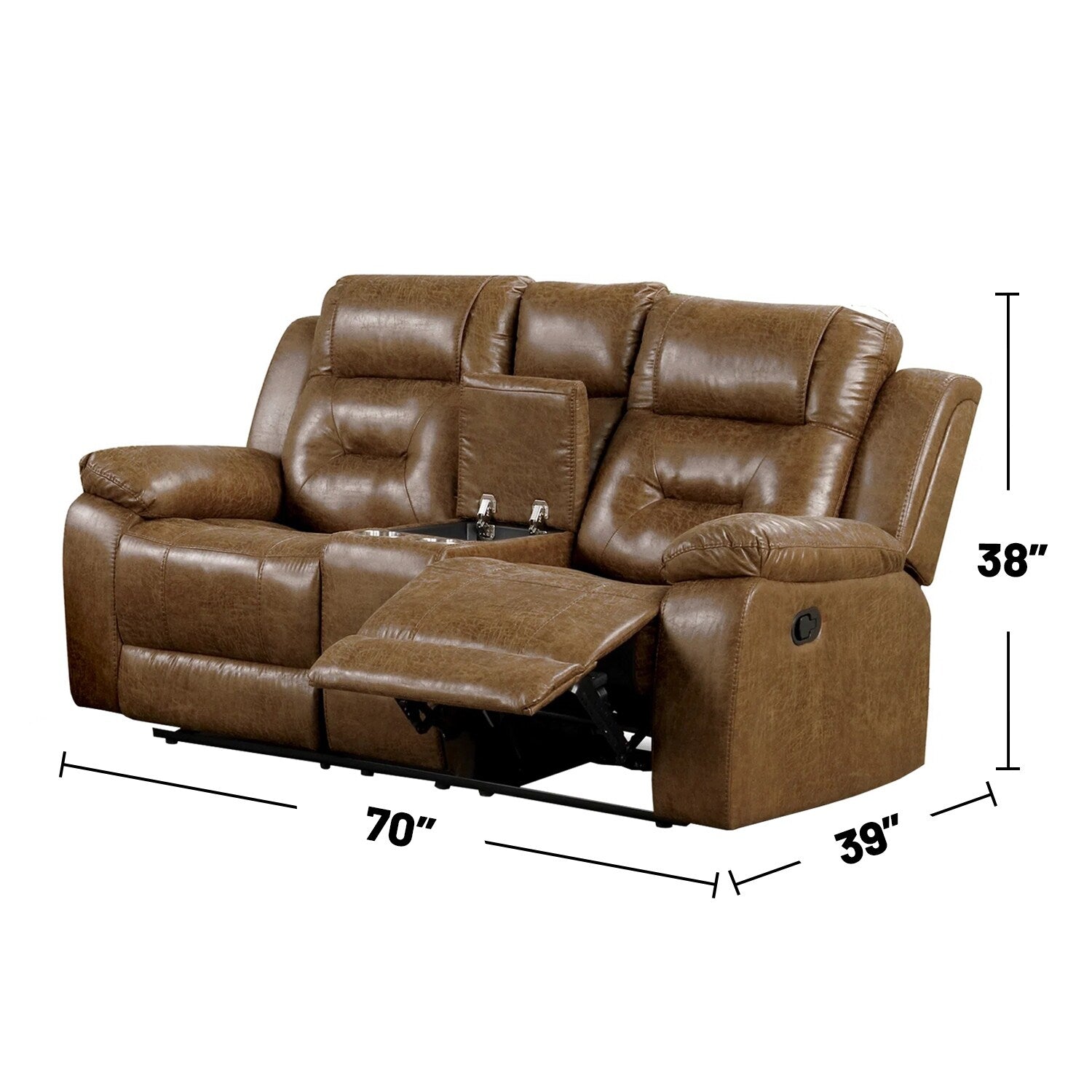 Transformez votre salon en un espace de détente ultime avec notre ensemble canapé et causeuse inclinables manuellement. Habillés d'un similicuir marron texturé doux, les deux meubles offrent une sensation de confort douillette et accueillante. L'inclinaison manuelle vous permet d'ajuster votre position d'assise pour un confort optimal, idéal pour regarder la télévision ou lire un livre. L'ensemble comprend des porte-gobelets amovibles en acier inoxydable, des compartiments de rangement pratiques à fermeture douce et des ports de charge USB pour plus de fonctionnalité. Dotés d'accoudoirs rembourrés pour un confort accru, cet ensemble canapé et causeuse est le complément idéal de tout espace de vie, alliant style et confort.
