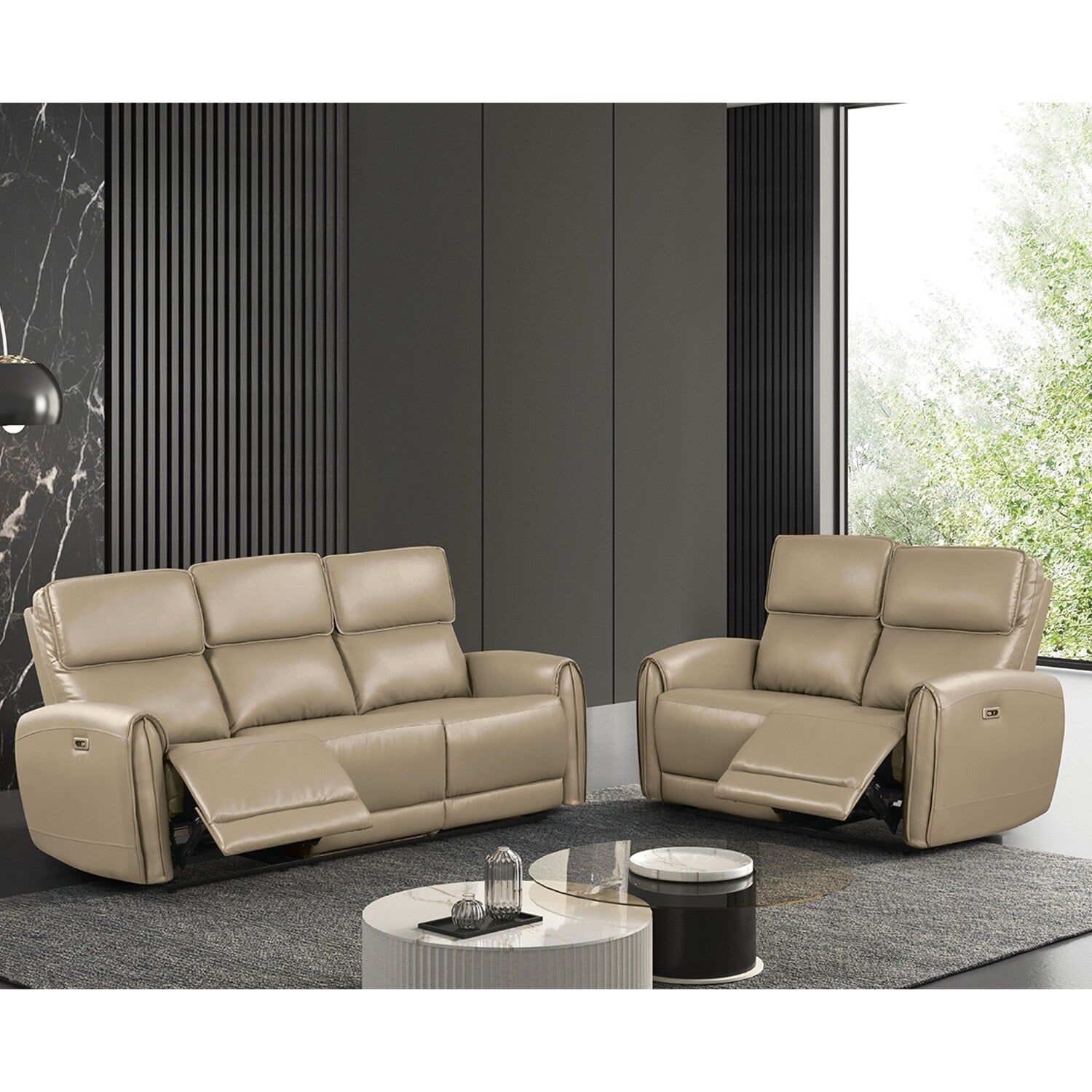 Ensemble de canapés électriques rembourrés 2 pièces avec ports de chargement USB