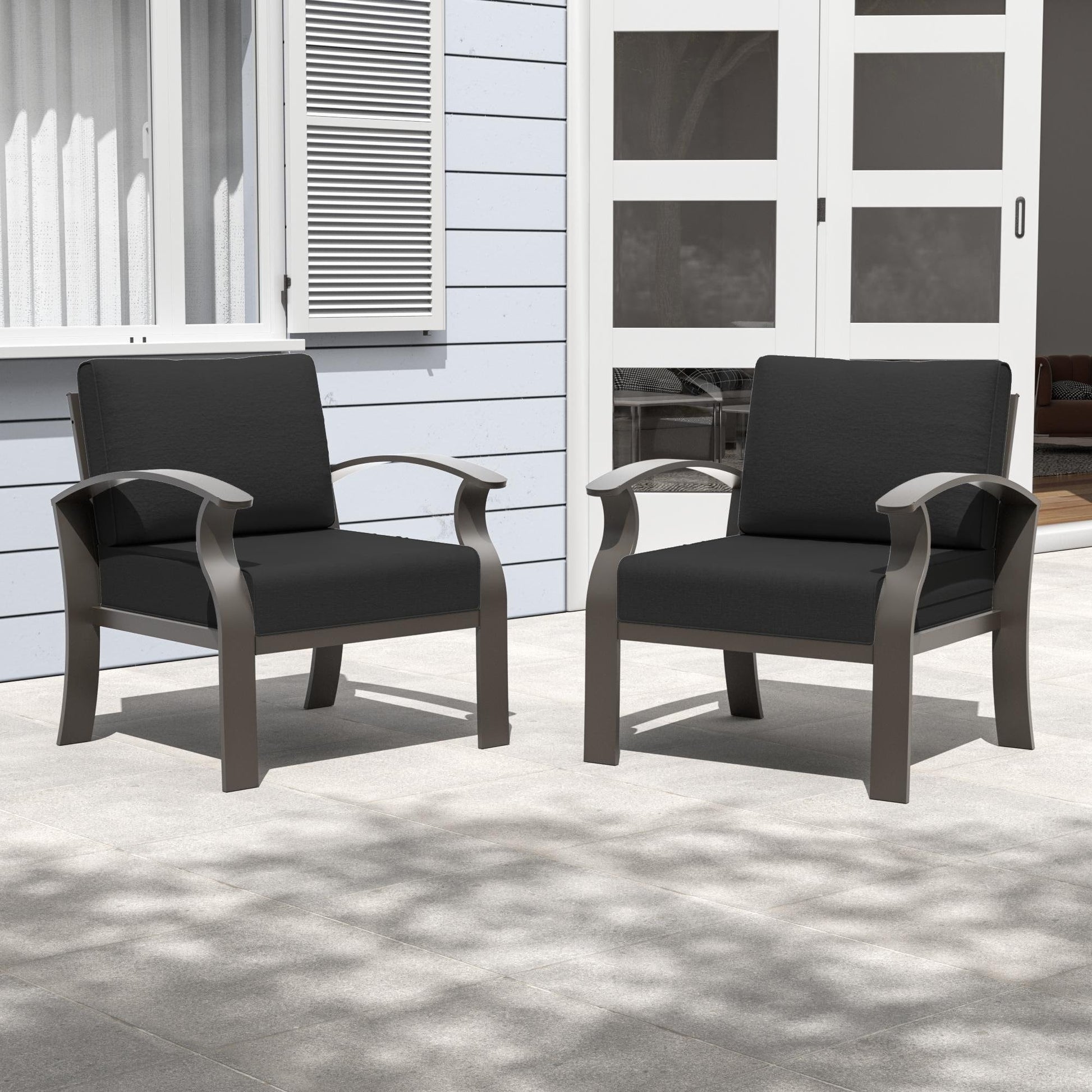 Canapés d'extérieur 2 places en aluminium avec coussins noirs