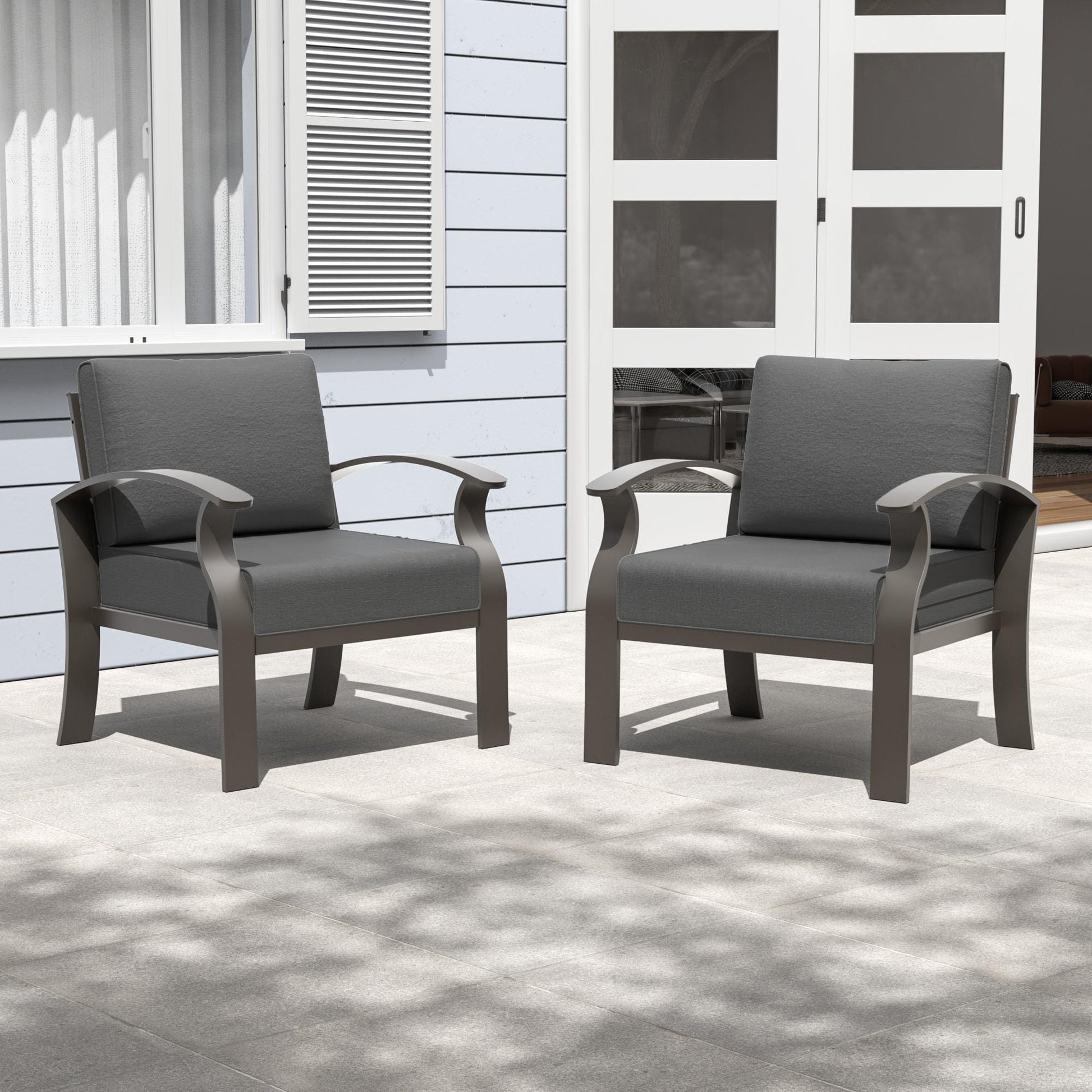Ces chaises d'extérieur font partie de la collection de canapés de conversation en aluminium de Kullavik. L'assemblage nécessite environ une heure pour une personne expérimentée. Elles sont dotées d'accoudoirs incurvés conçus pour un meilleur soutien. Fabriquées en aluminium avec une finition antirouille peinte par pulvérisation, elles allient robustesse, durabilité et légèreté pour une utilisation optimale en extérieur.