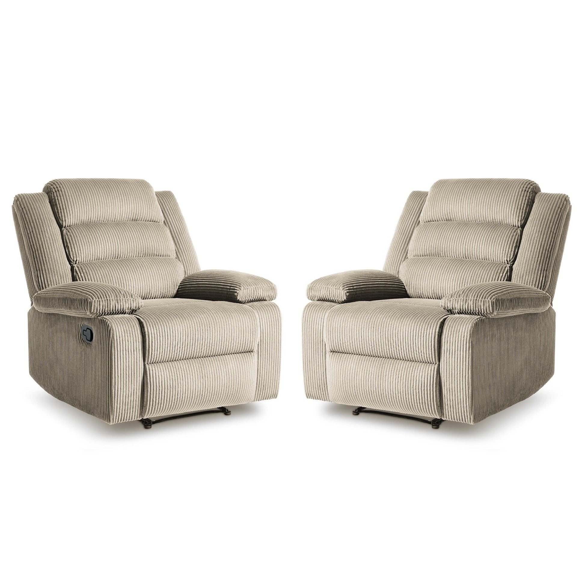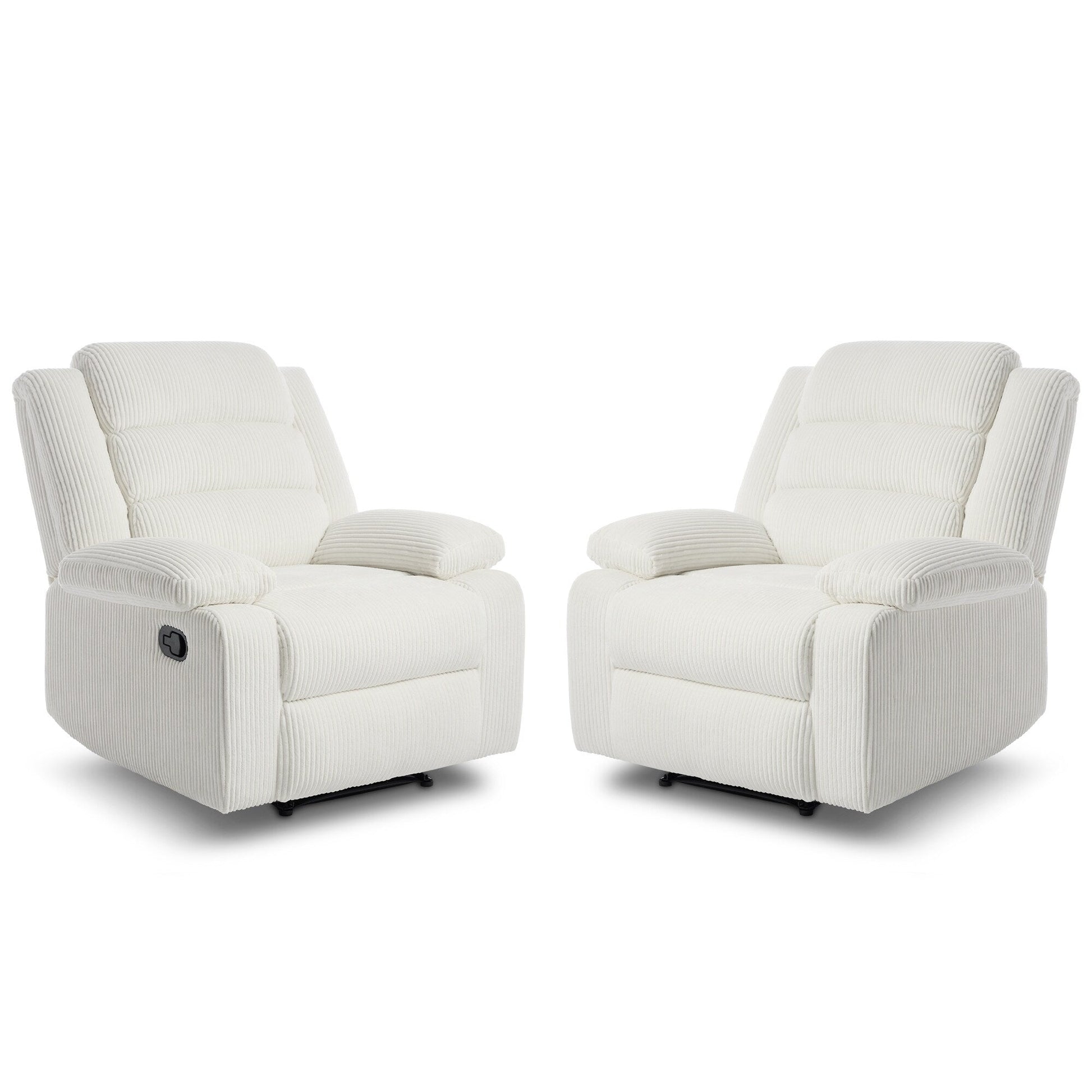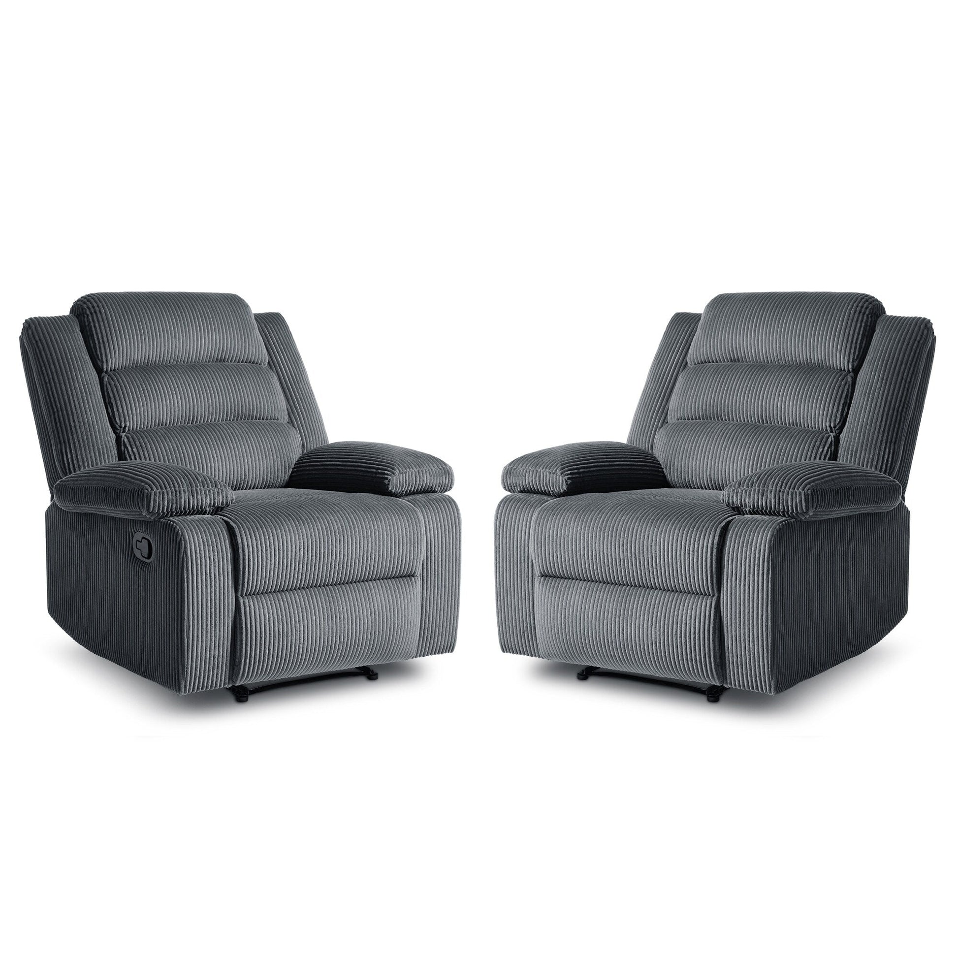 Lot de 2 fauteuils inclinables manuels modernes en velours côtelé, fauteuil d'appoint surdimensionné avec accoudoirs larges