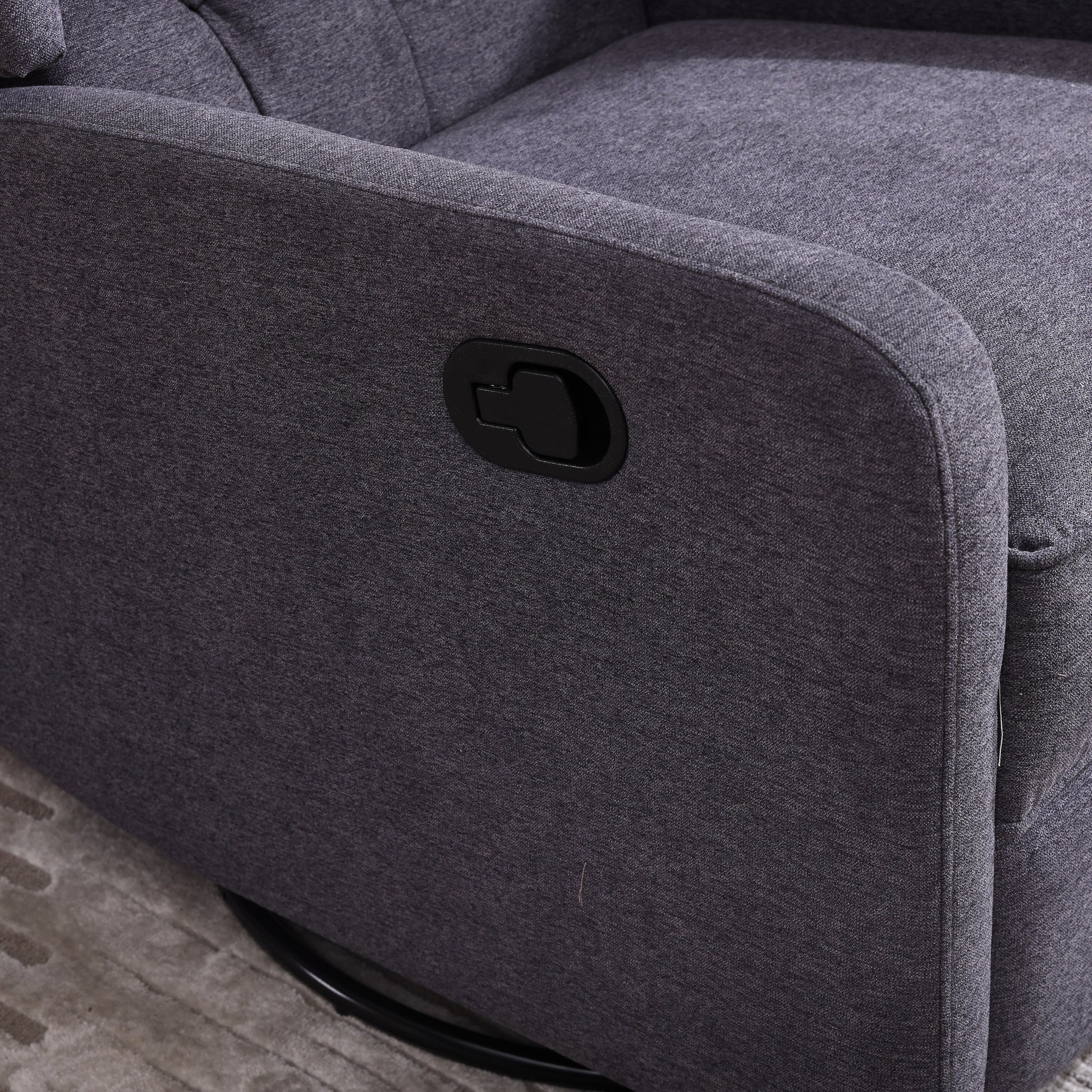 Découvrez l'alliance parfaite du confort, du style et de la fonctionnalité avec ce fauteuil inclinable à bascule COOLMORE. Conçu pour répondre à tous vos besoins, il allie harmonieusement le mouvement apaisant d'un fauteuil à bascule (basculement à 30°), la détente d'un fauteuil inclinable (trois vitesses réglables à 105, 120 et 140 degrés) et la polyvalence d'un fauteuil pivotant (rotation à 360°). Que vous vous détendiez après une longue journée, lisiez votre livre préféré ou fassiez une sieste, ce fauteuil offre un confort et un soutien inégalés. Son design ergonomique, son dossier épais et son coussin offrent un excellent soutien, réduisant la pression physique et améliorant votre bien-être général. Sa polyvalence en fait un ajout idéal à toute pièce, de la chambre au salon, en passant par le home cinéma. Avec une capacité de charge de 136 kg et une structure robuste en bois massif et contreplaqué, ce fauteuil est conçu pour durer. La bague de réglage de l'inclinaison et le repose-pieds inclus renforcent encore sa praticité et sa facilité d'utilisation. Améliorez votre expérience de relaxation avec ce fauteuil inclinable à bascule polyvalent et confortable.