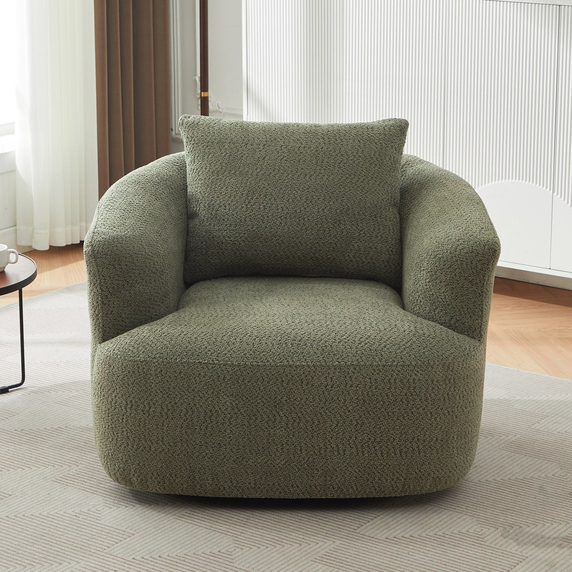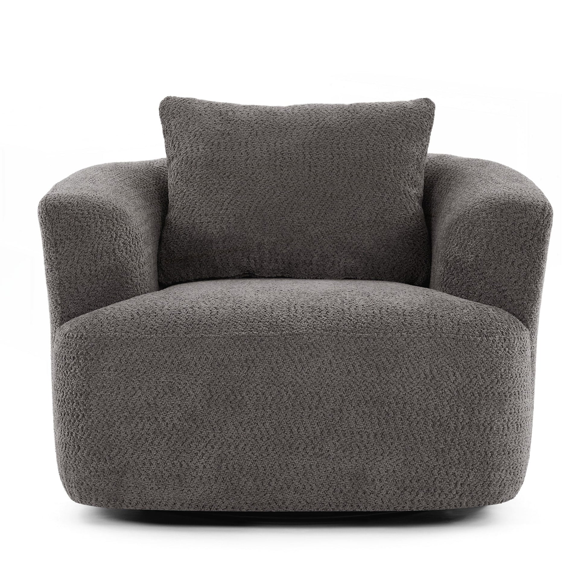 Ce fauteuil d'appoint pivotant à 360 degrés allie style, confort et fonctionnalité pour tous les espaces de vie. Doté d'une base pivotante complète, il permet une rotation facile dans toutes les directions, offrant un confort optimal, que ce soit au bureau ou comme fauteuil de lecture. Le système de coussins à ressorts ensachés, la mousse haute densité et le tissu bouclé doux offrent une assise spacieuse et un bon maintien, offrant un espace de détente généreux. Les accoudoirs incurvés ergonomiques réduisent la tension et favorisent une meilleure posture. Avec son design épuré et minimaliste, ce fauteuil s'intègre parfaitement aux appartements modernes, aux bureaux à domicile et aux salons, ce qui en fait un ajout polyvalent à n'importe quelle pièce. Assise profonde : Installez-vous confortablement dans l'assise généreusement profonde de 48 cm, conçue pour vous bercer, que vous vous prélassiez, vous étiriez ou profitiez d'une sieste paisible. Avec sa forme spacieuse et accueillante, ce fauteuil redéfinit la détente : parfait pour ceux qui apprécient à la fois espace et style.
