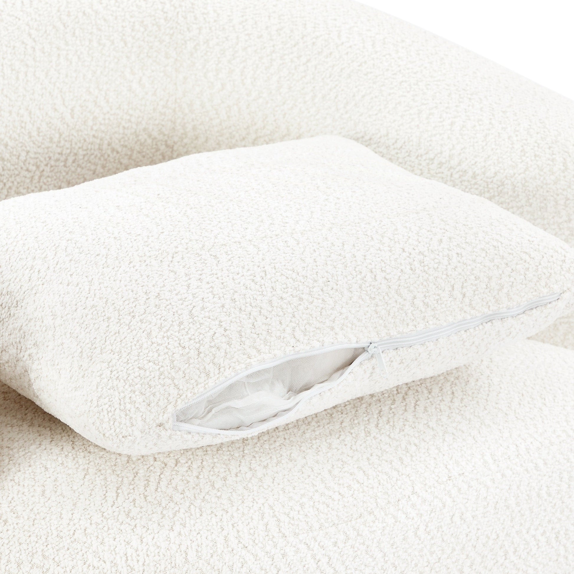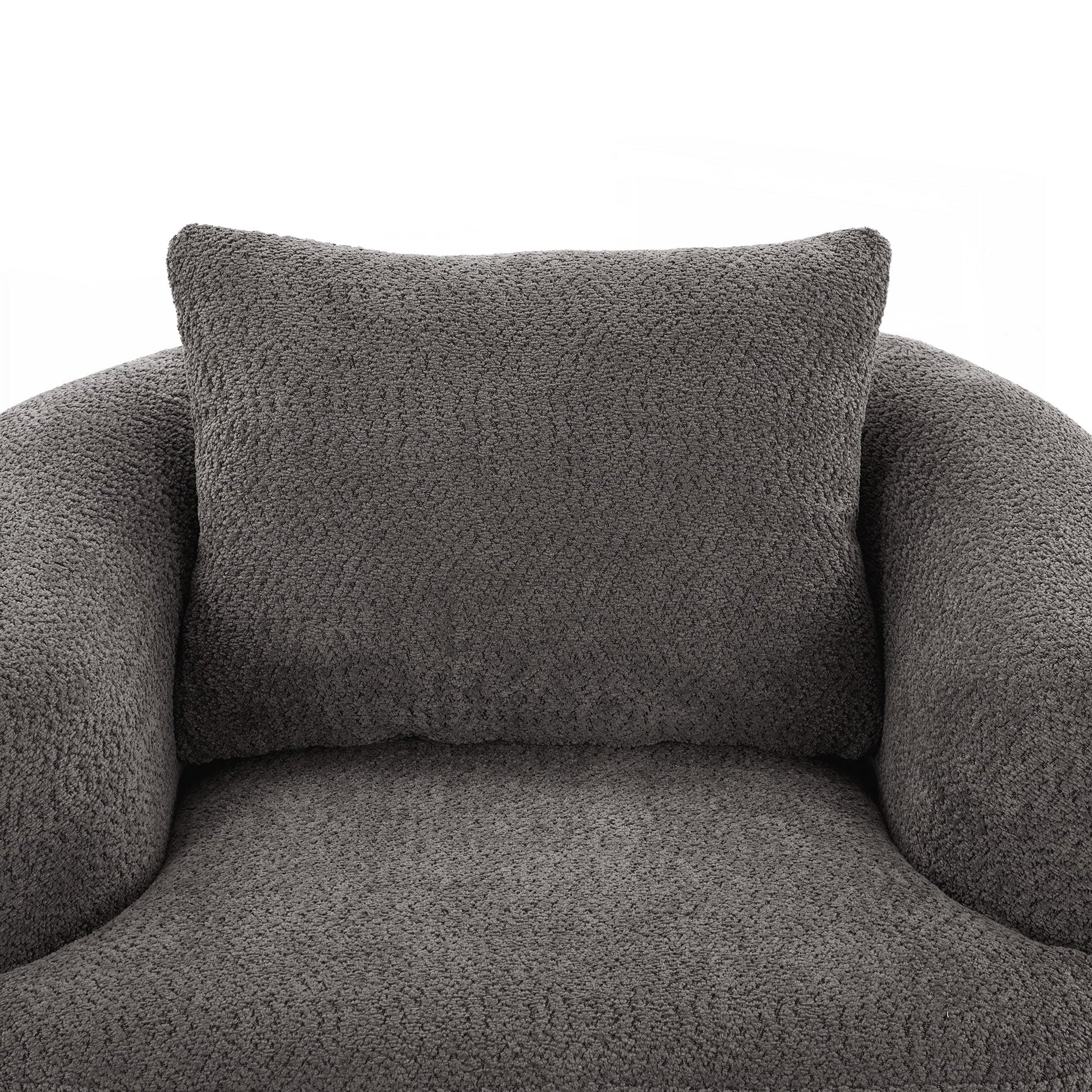 Rembourrage confortable et spacieux - Ce fauteuil pivotant est doté d'un système de ressorts ensachés, associé à une mousse haute densité et à un tissu bouclé doux, offrant un confort et un soutien exceptionnels. Avec une profondeur d'assise de 48 cm et une largeur de 97 cm, il offre un espace de détente généreux. Ces éléments combinés assurent un confort et un soutien durables, même en position assise prolongée.