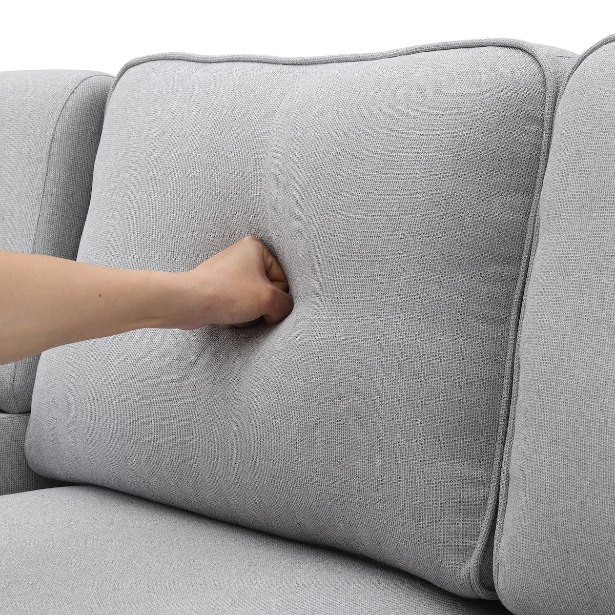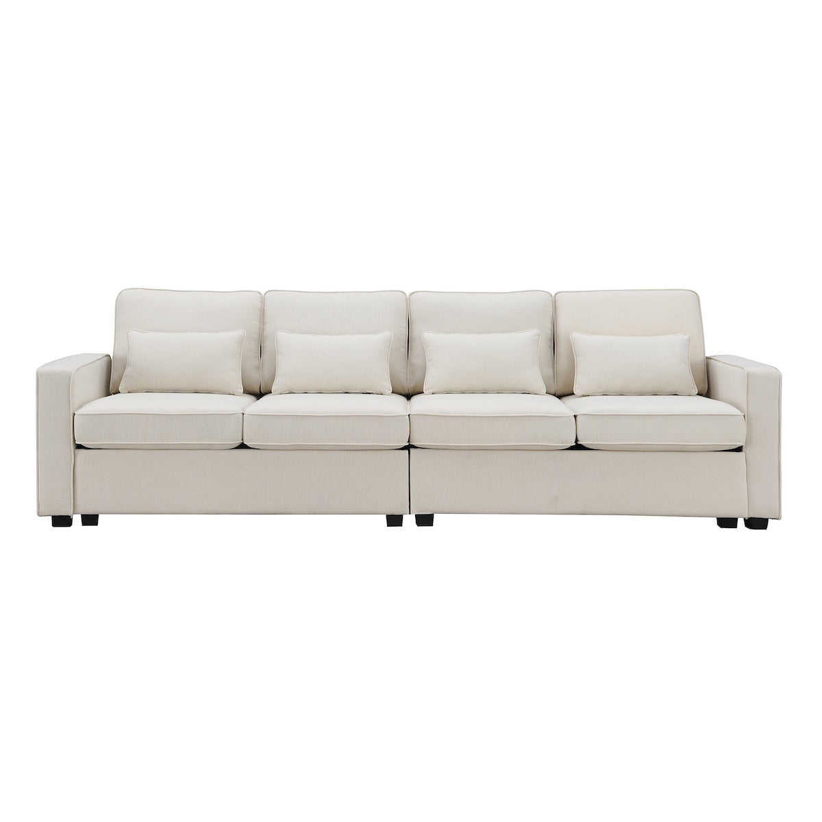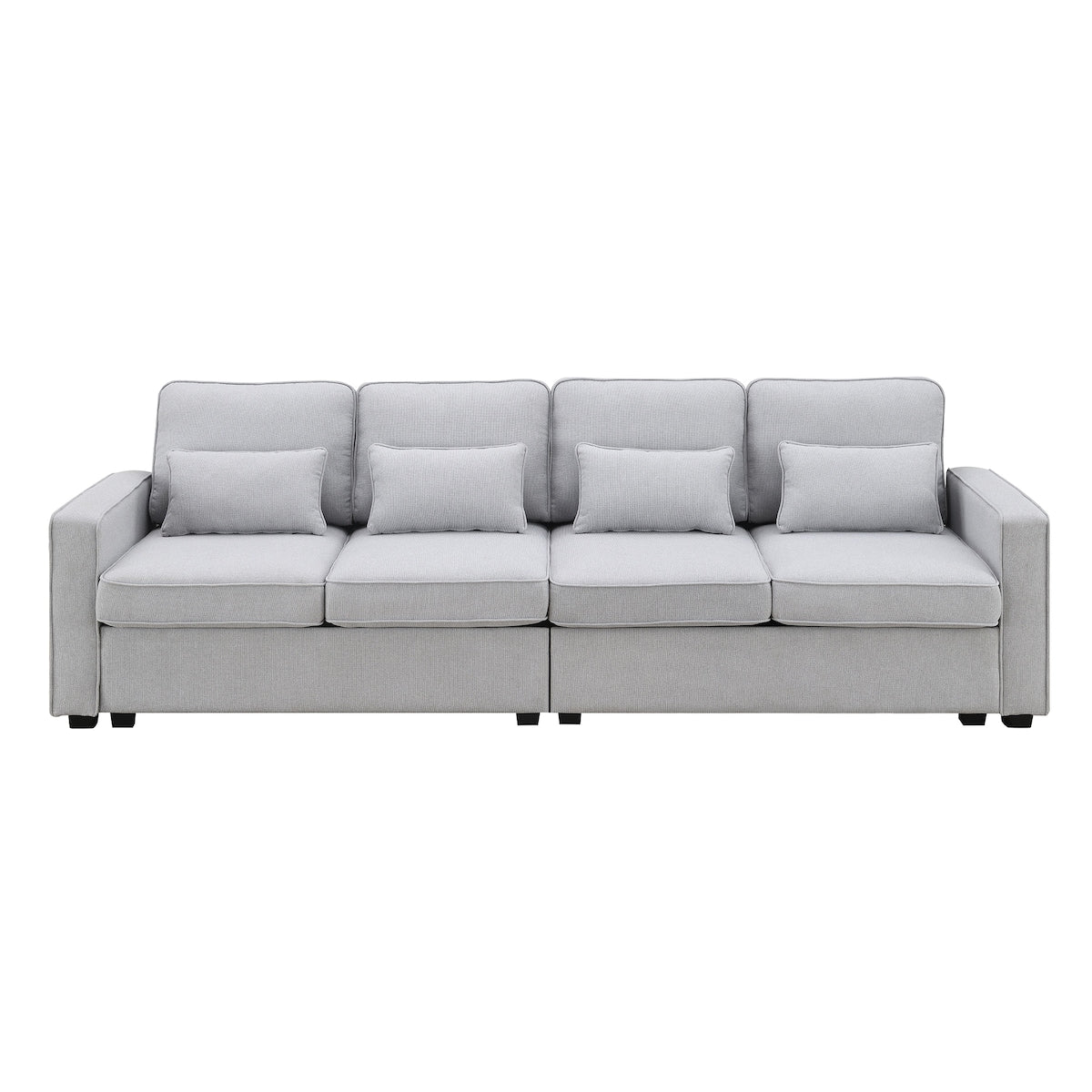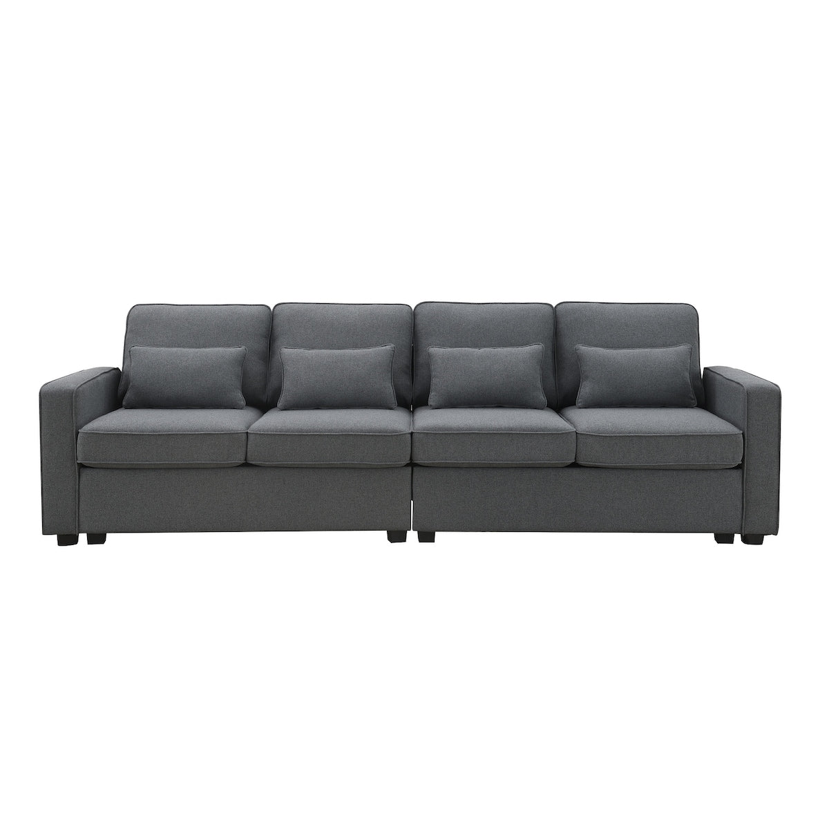 Canapé 4 places moderne en lin avec poches d'accoudoirs et 4 oreillers