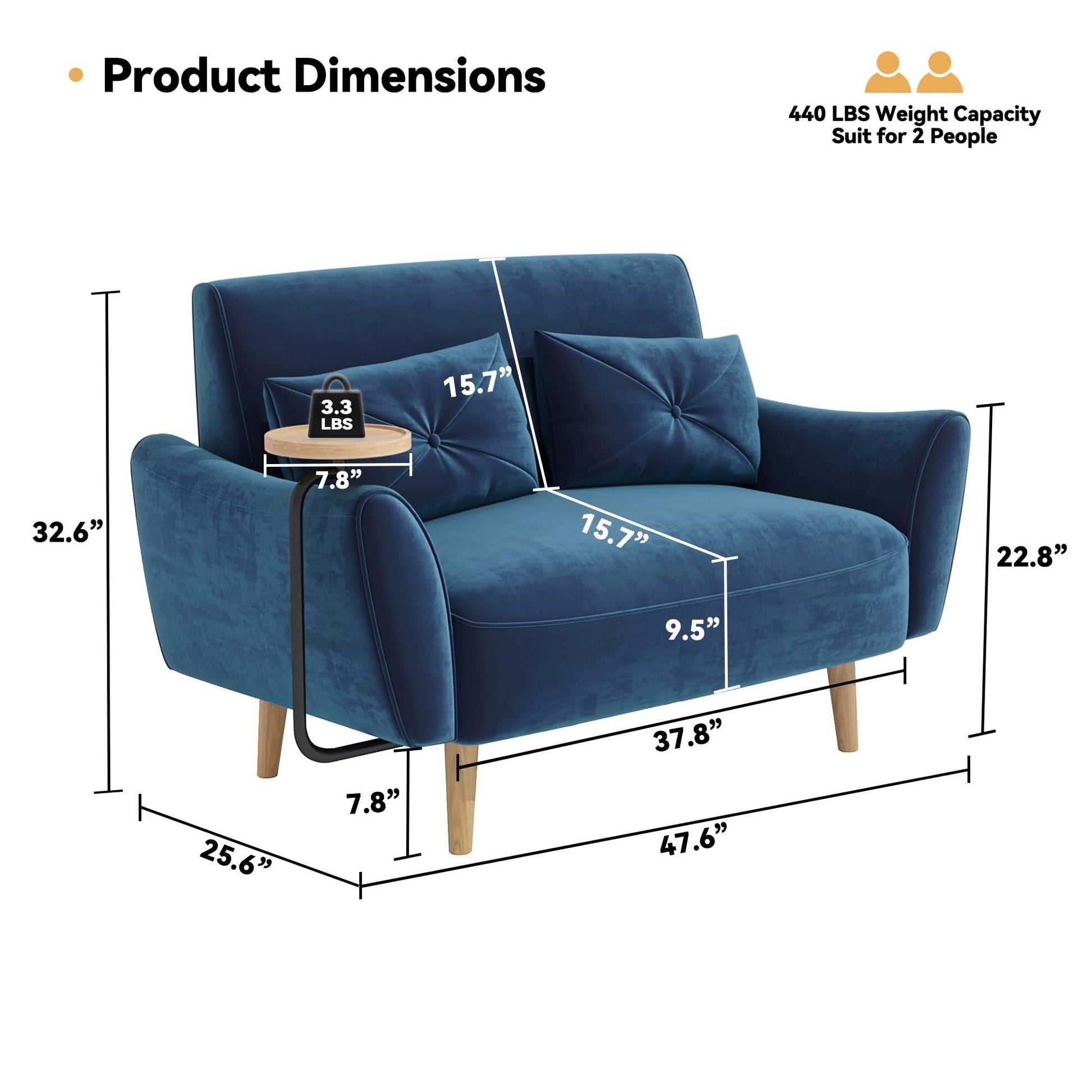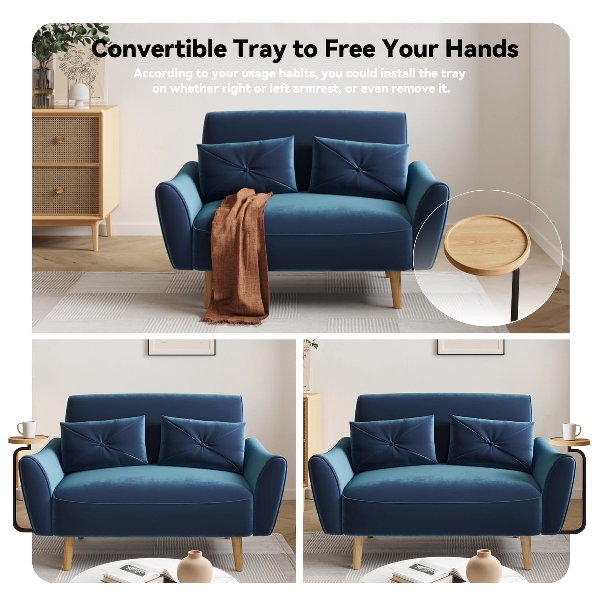 Canapé 2 places en bois 47,6 avec plateau convertible et accoudoirs incurvés - Sièges de luxe compacts pour petits espaces