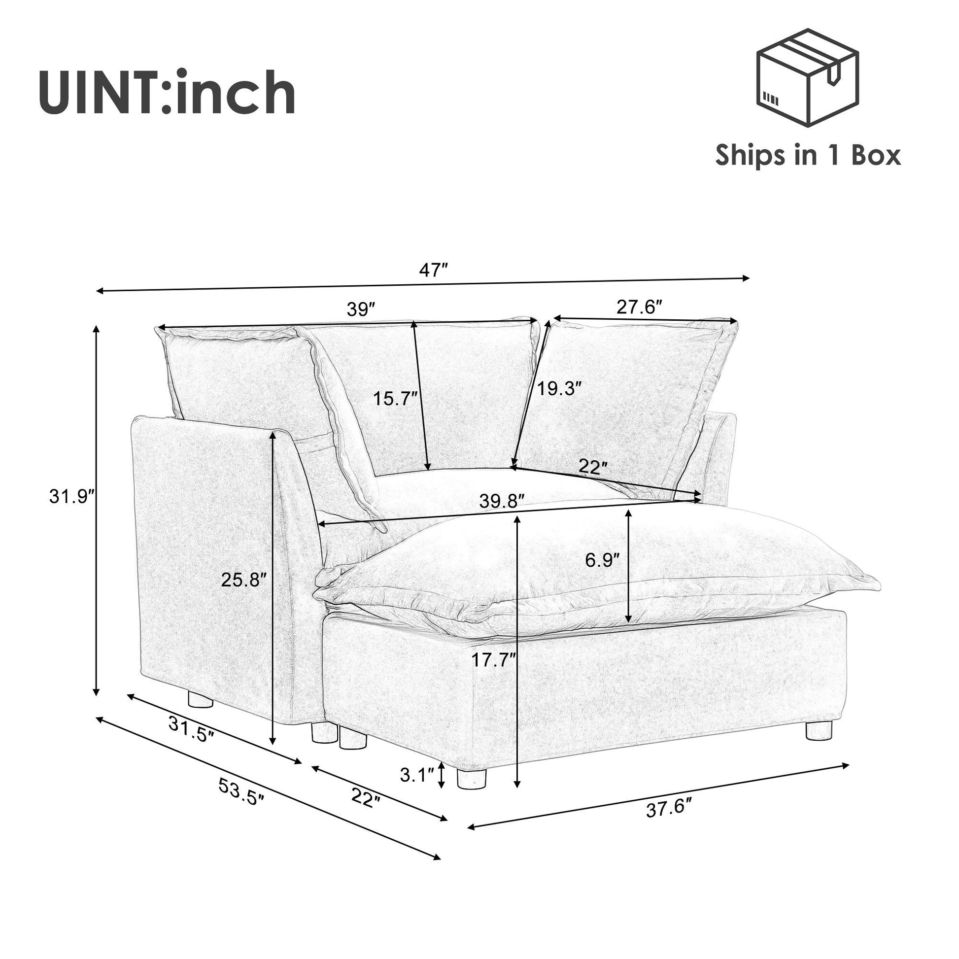 Fauteuil moderne avec pouf - Fauteuil de salon rembourré, assise large, accoudoirs incurvés et coussins moelleux pour le salon