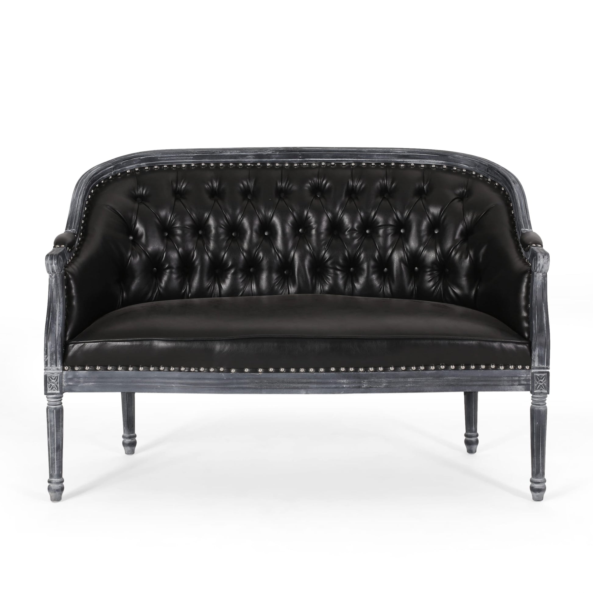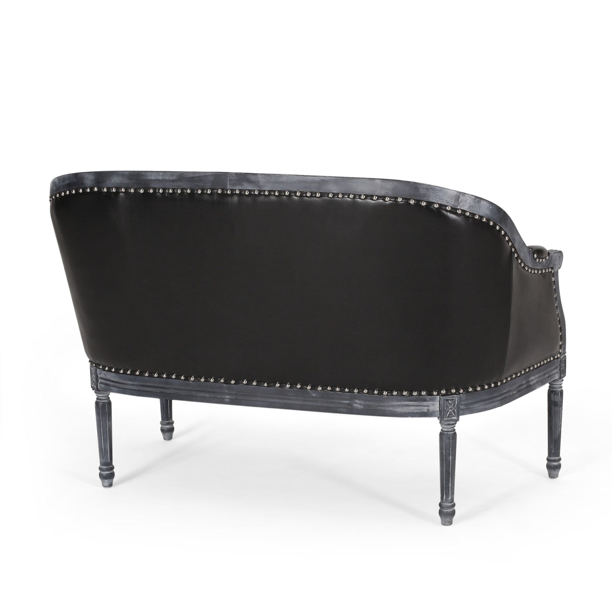 Canapé causeuse en similicuir 49,5" avec pieds tournés et clous décoratifs pour le salon
