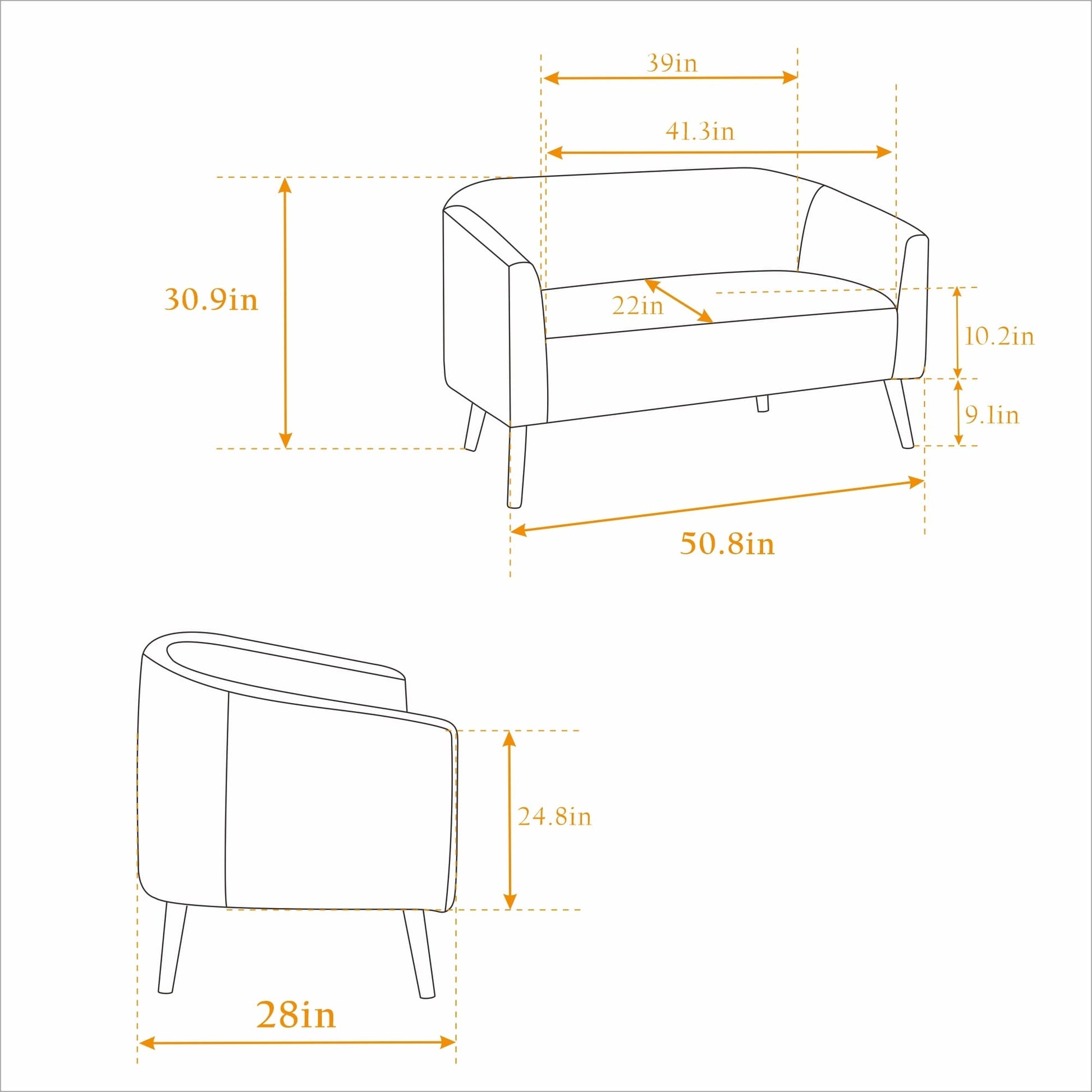Canapé deux places moderne 50,78 $, tissu velours côtelé, avec pieds en bois de noyer