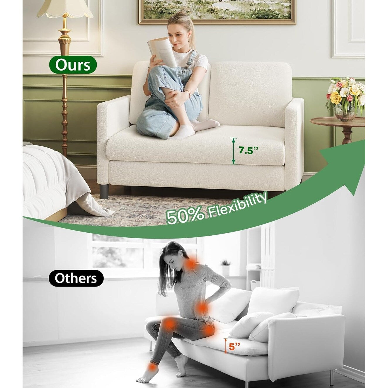 - Ce petit canapé est doté d'un coussin d'assise à ressorts de 2,2 m offrant un excellent soutien et une grande élasticité. Le dossier de 1,8 m et l'assise de 6,7 m de profondeur offrent un soutien supplémentaire et un confort optimal. Installez-vous confortablement et sentez le dossier du petit canapé pour une chambre confortable. Que vous regardiez la télévision, lisiez un livre ou partagiez avec votre famille, ce petit canapé vous offrira un confort optimal.