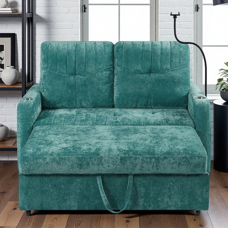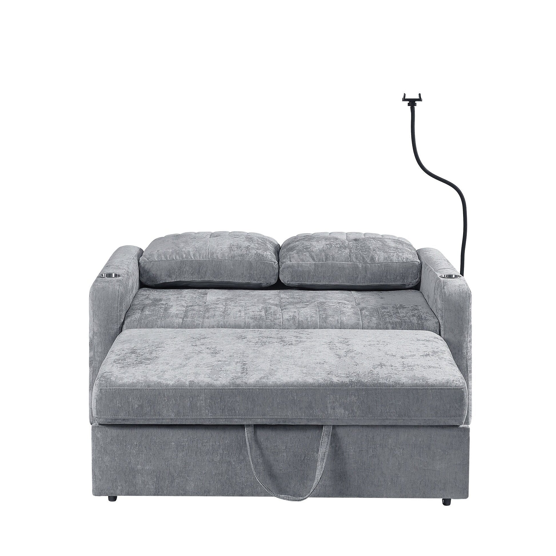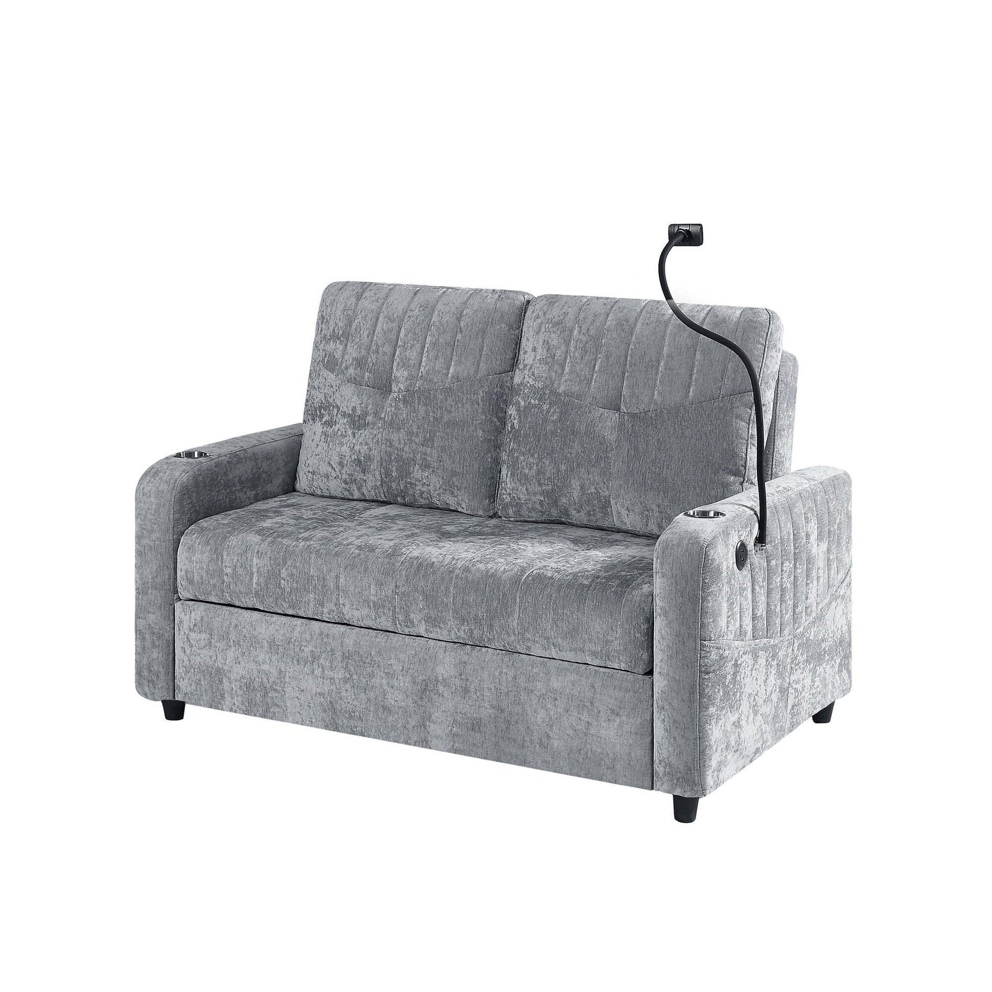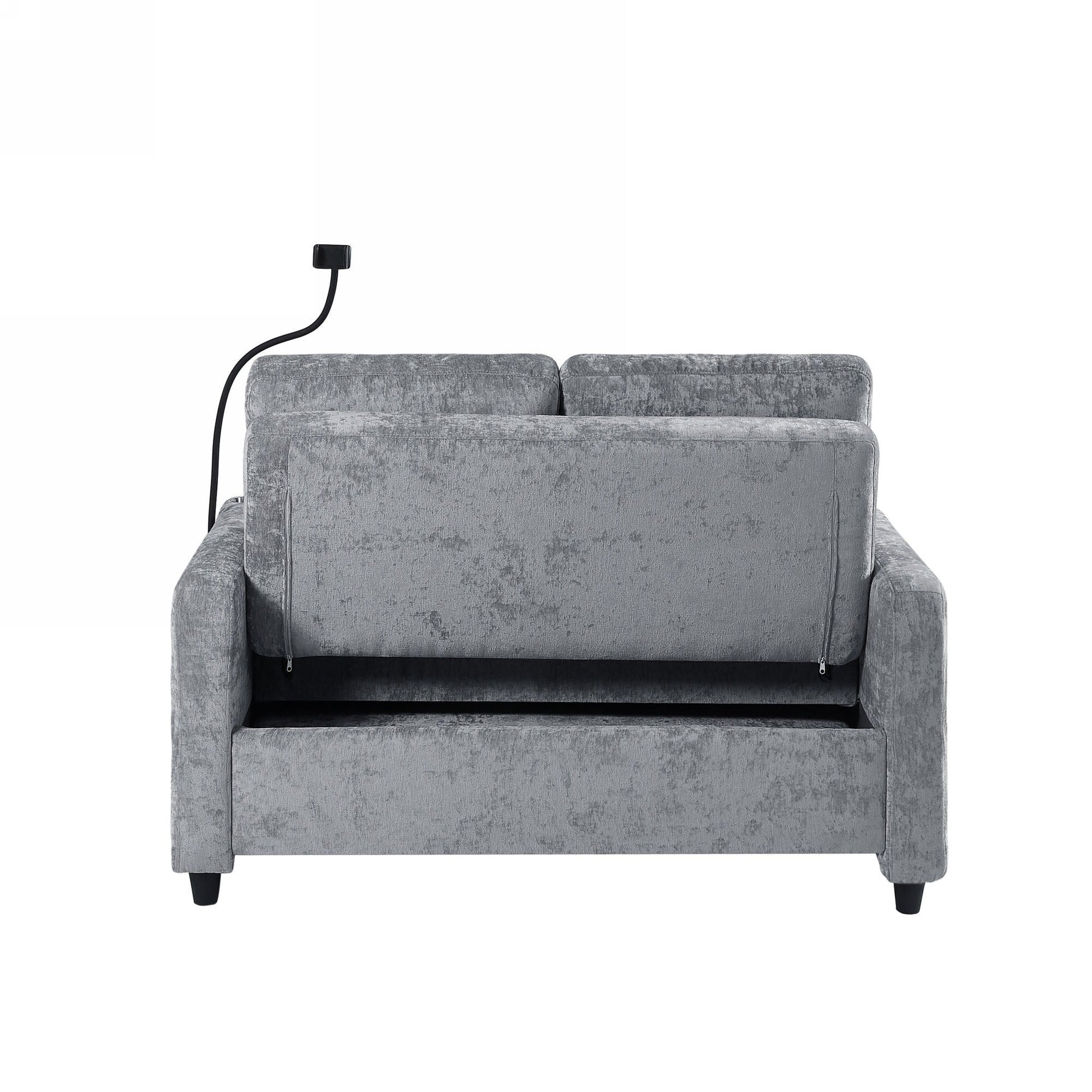 Canapé convertible en chenille de 53,9 po avec lit gigogne, 3 ports USB et rangement intelligent