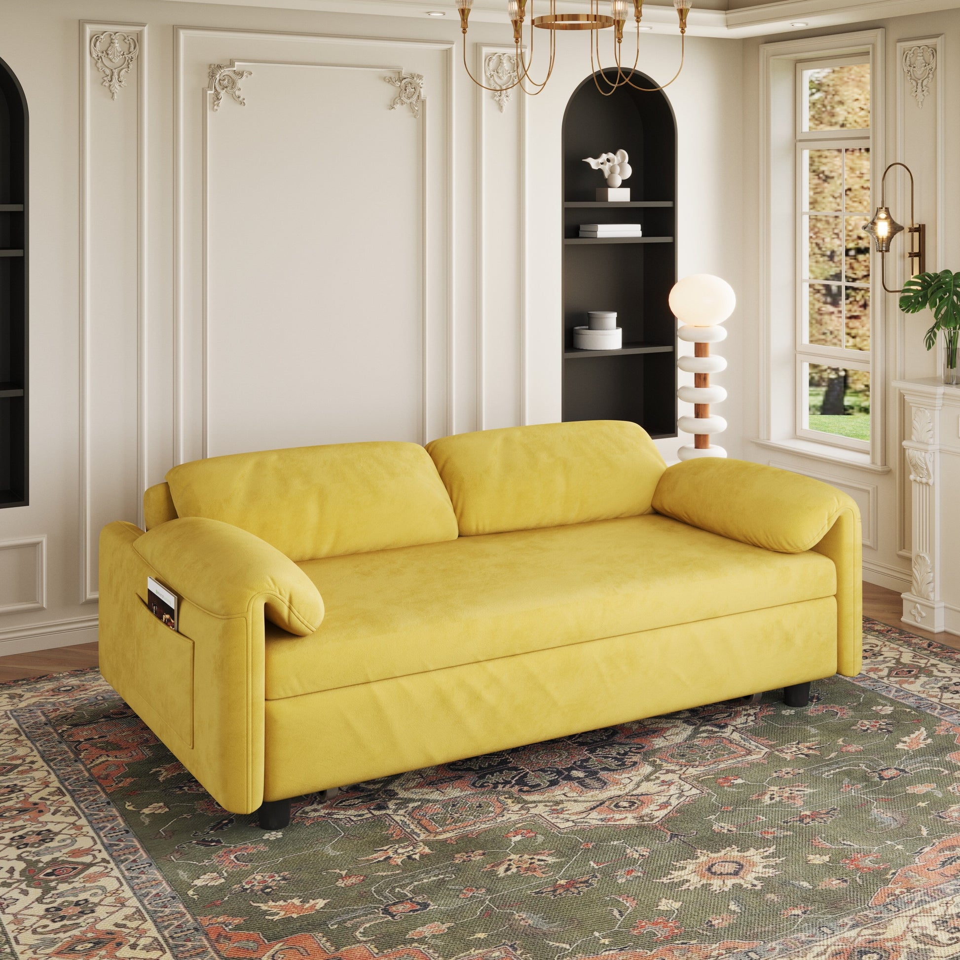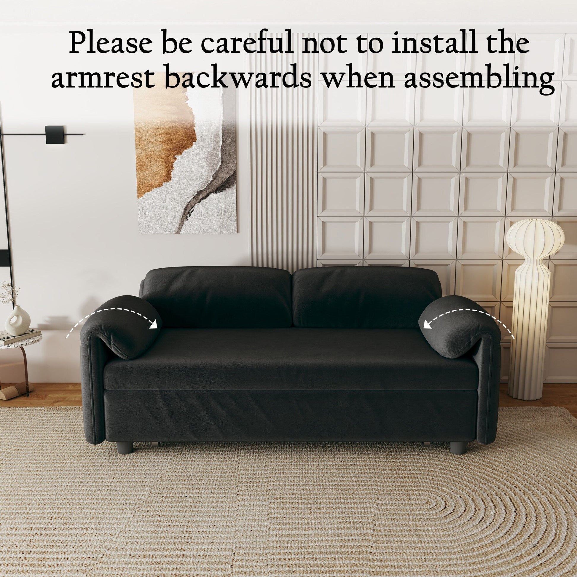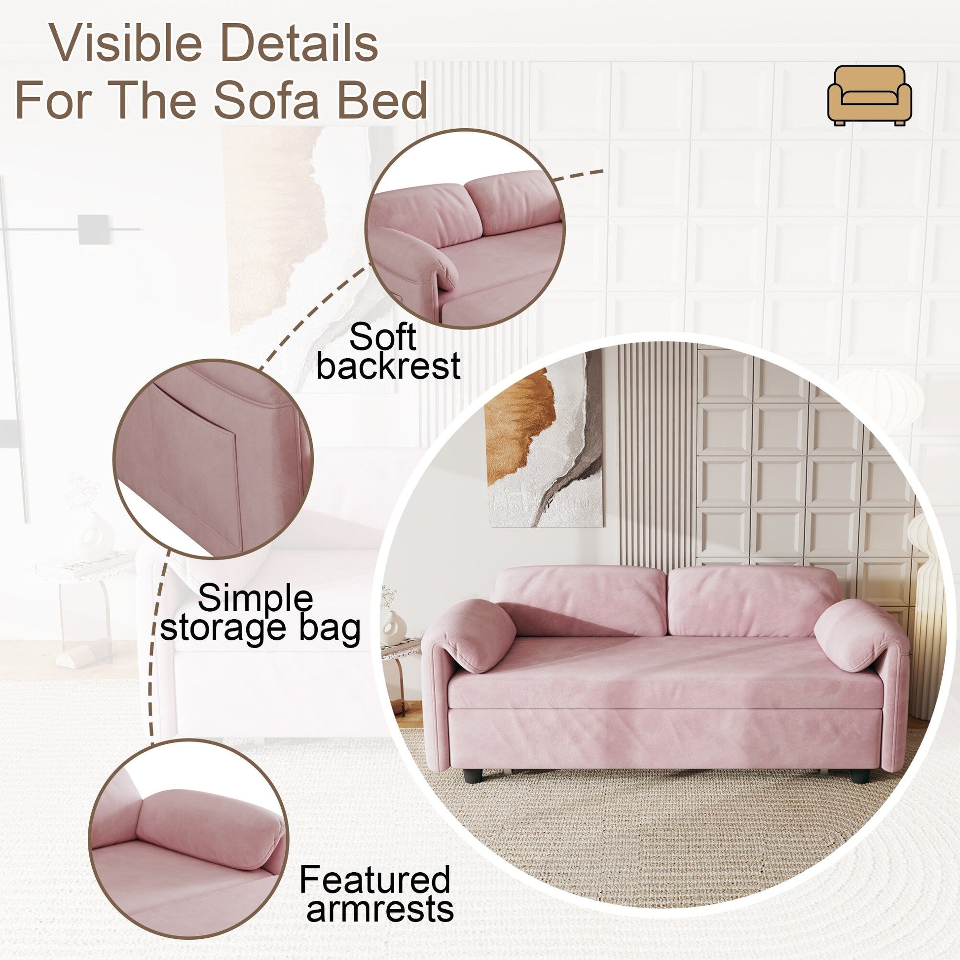 Canapé-lit en velours de 54 pouces - Conception polyvalente avec lit queen-size rétractable et rangement pour accoudoirs