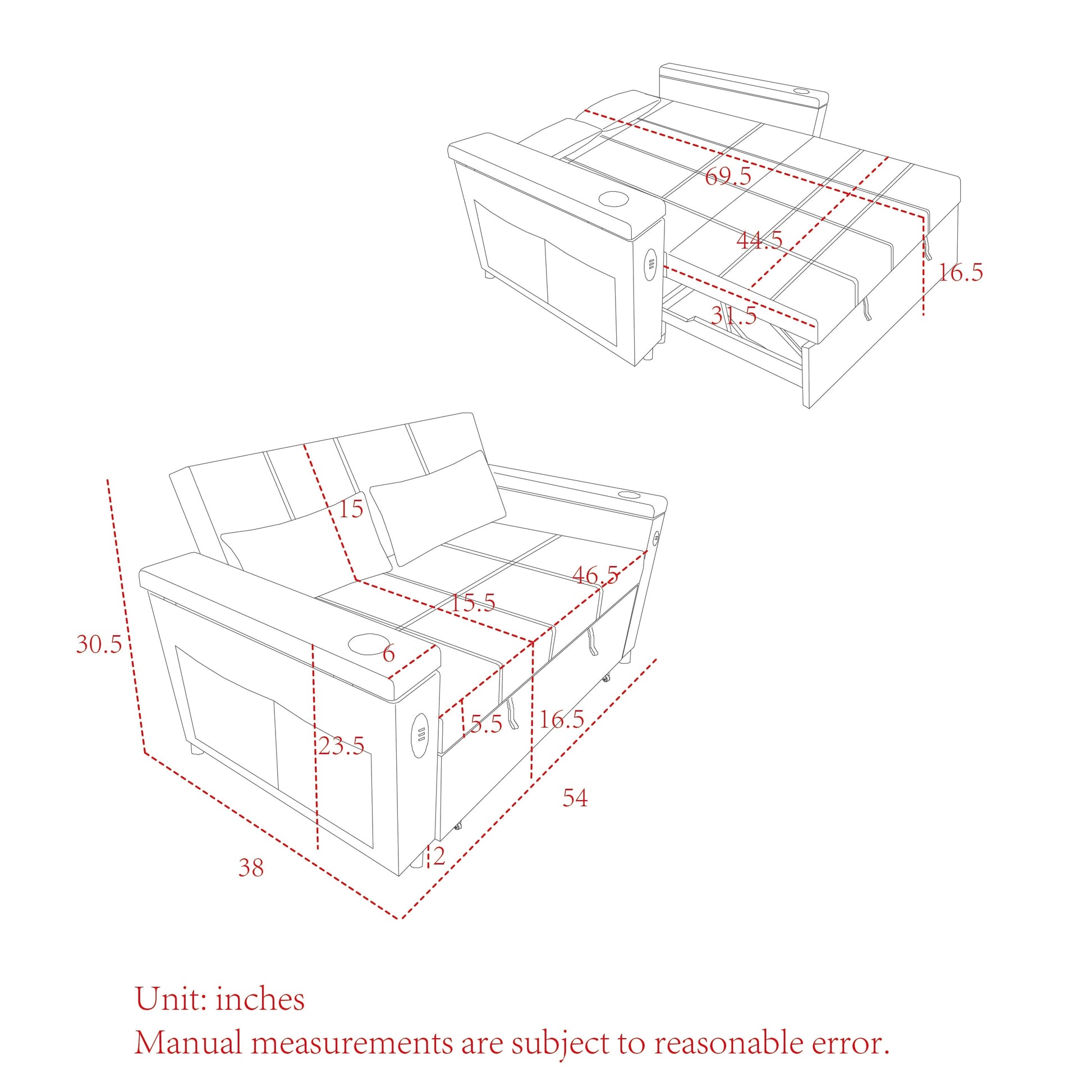 Les accoudoirs latéraux sont équipés d'un port d'alimentation USB, qui peut fournir des fournitures lorsque vous vous reposez ou êtes assis sur le canapé pour jouer à votre téléphone portable.