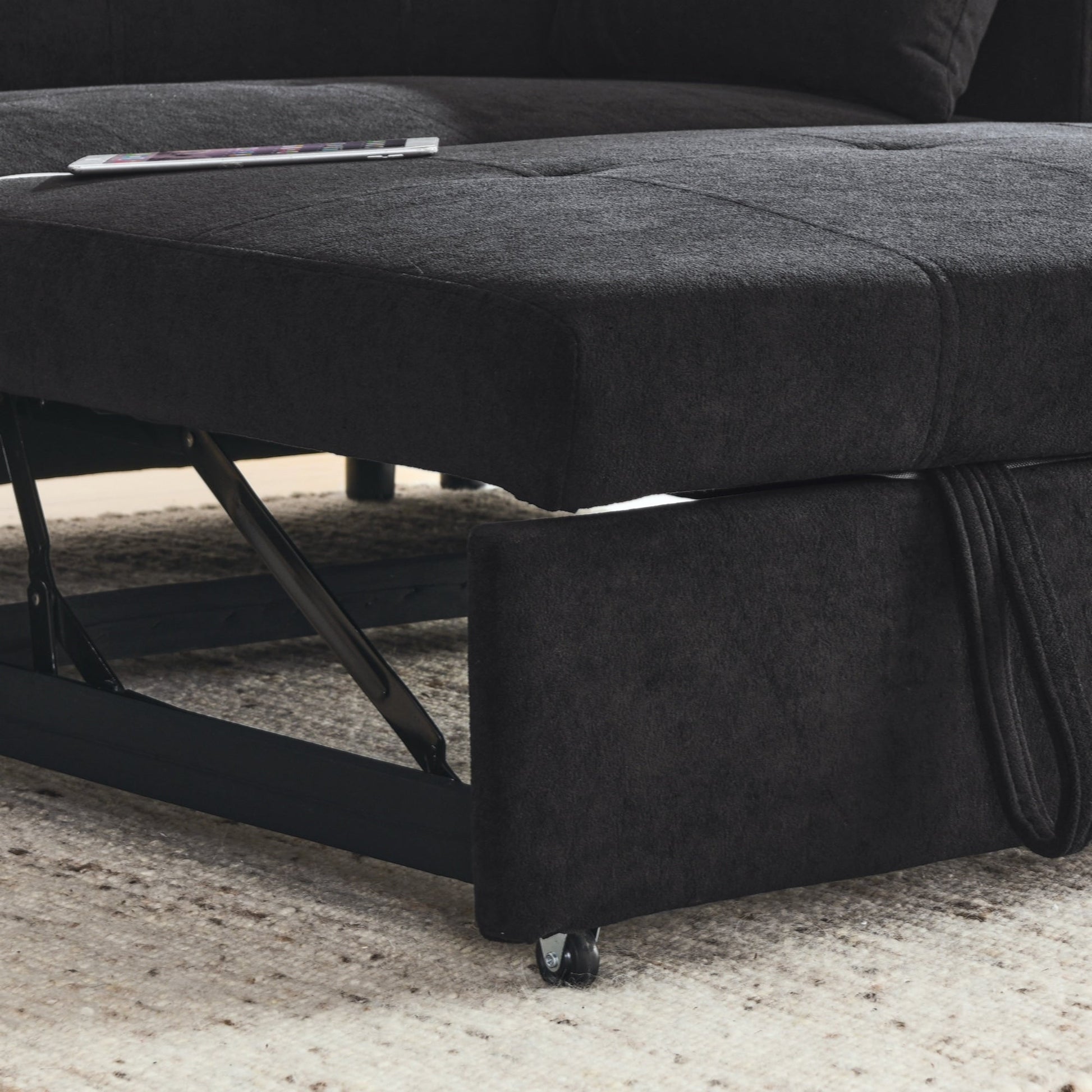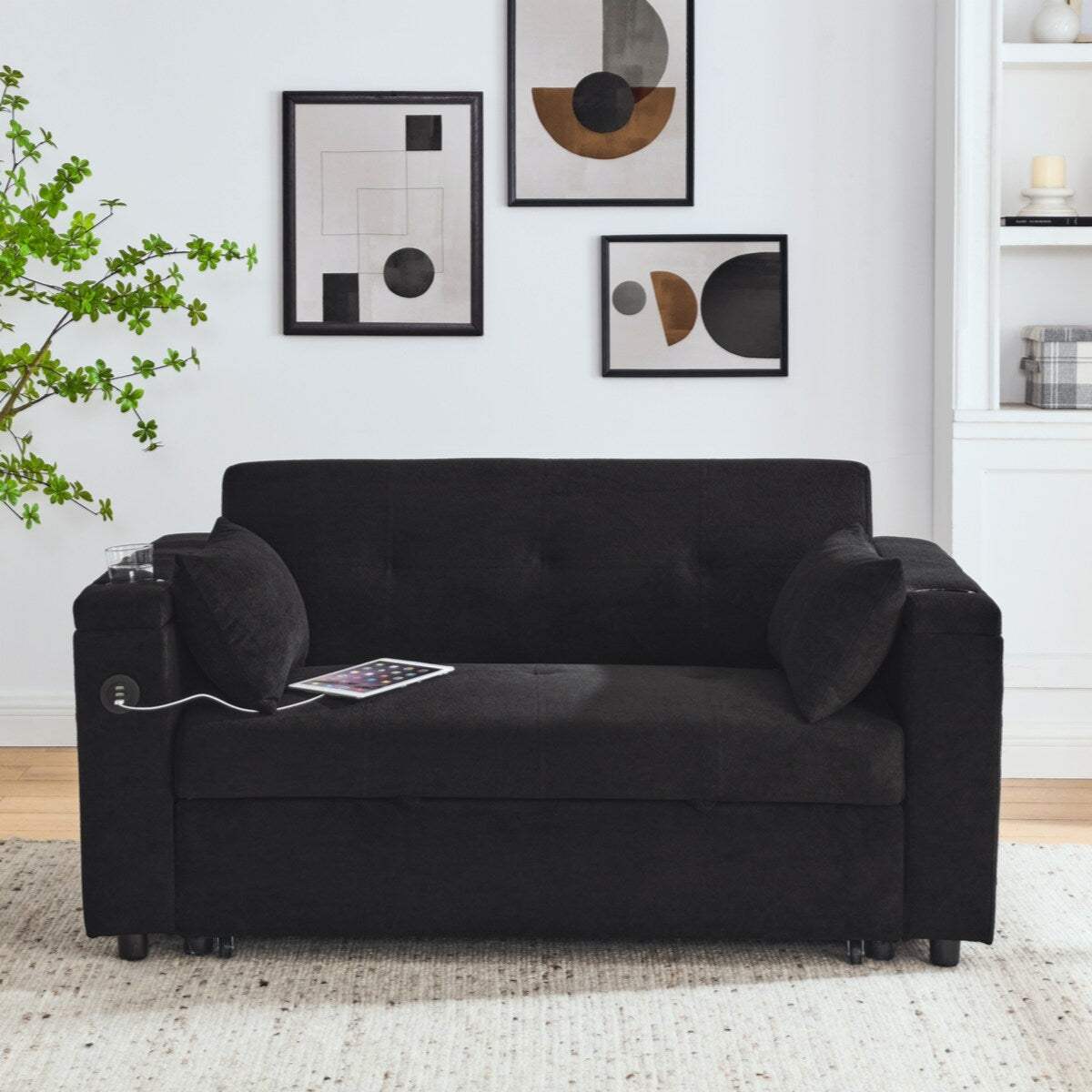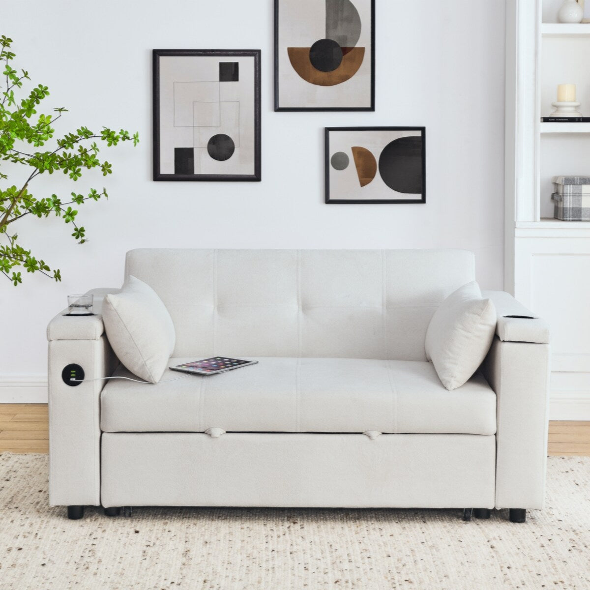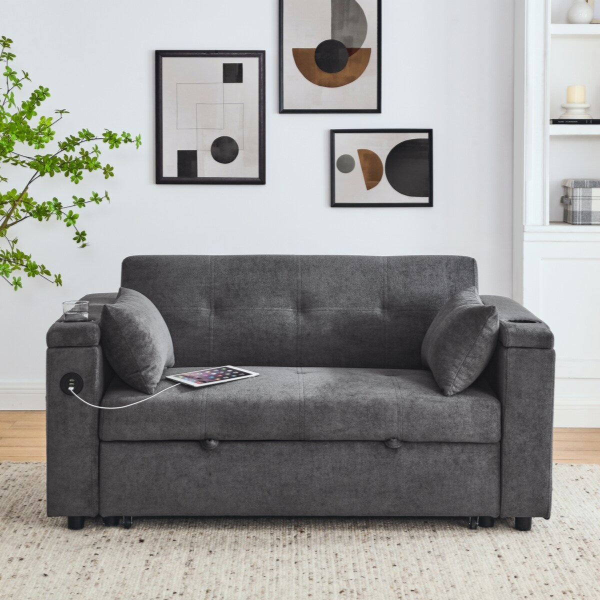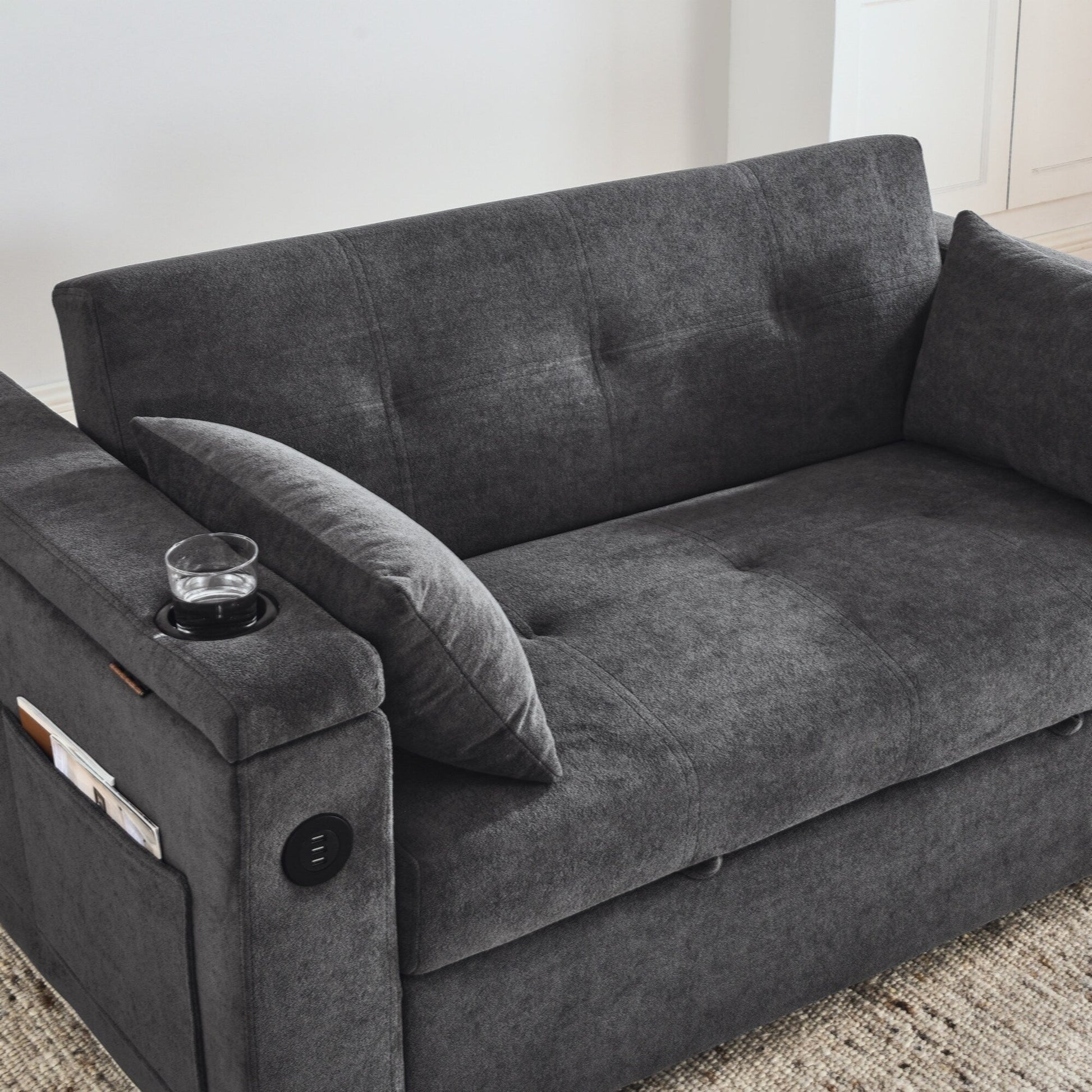 Canapé-lit gigogne 54 places inclinable avec accoudoirs, rangements et poches latérales, prise USB