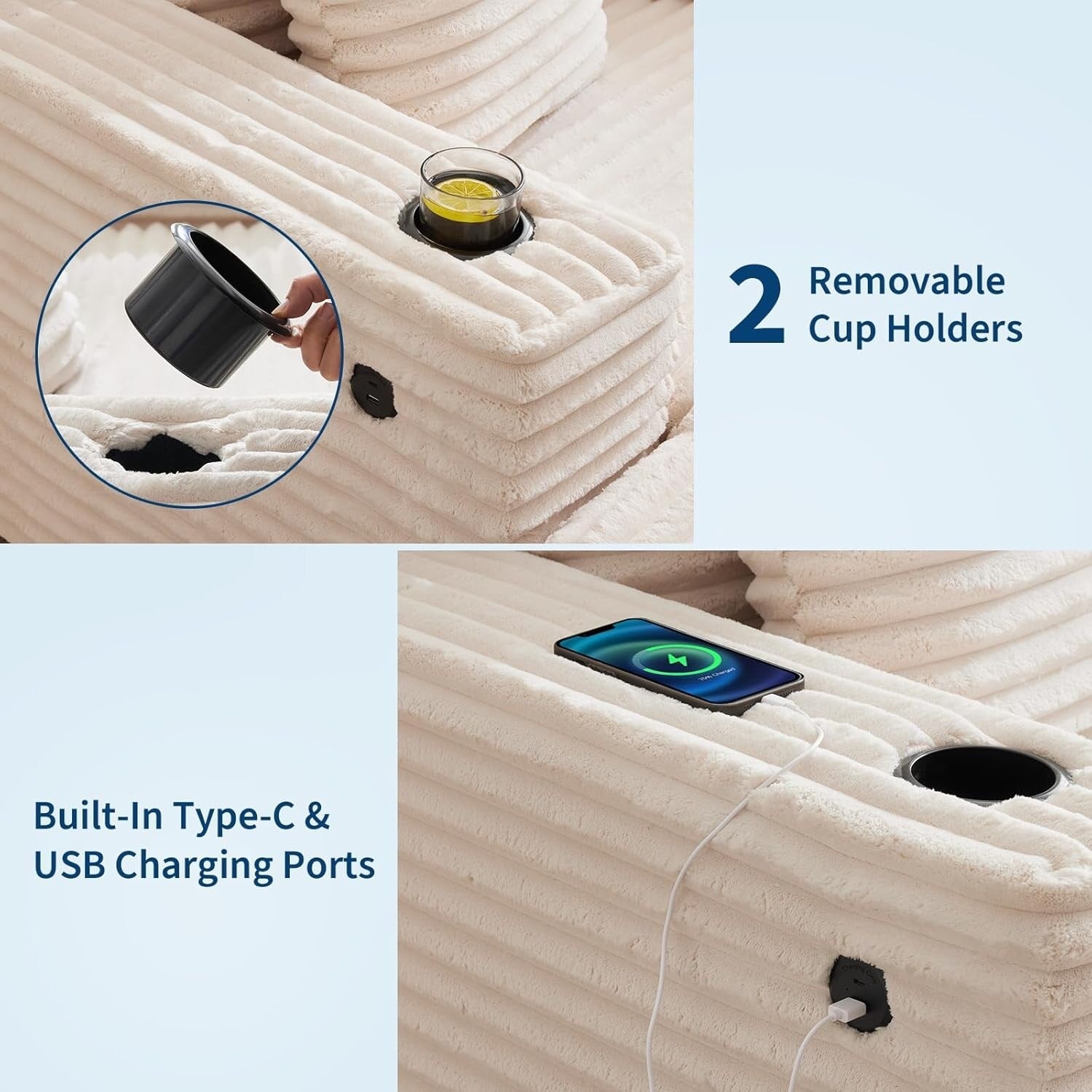 [Confort et espace détente] Profitez d'une détente exceptionnelle avec cette chaise longue surdimensionnée, dotée d'une largeur généreuse de 137 cm et d'une profondeur d'assise de 119 cm. Idéale pour la lecture, la sieste ou les soirées cinéma, elle offre un espace généreux pour vous et vos proches. Son design spacieux garantit une assise haut de gamme, ce qui en fait un ajout idéal aux salons, chambres et espaces de divertissement. [Revêtement en velours côtelé durable et de qualité supérieure] Fabriqué en velours côtelé respirant de haute qualité, ce canapé-lit allie luxe et durabilité. Sa texture douce procure une sensation de confort, tandis que la mousse haute densité et les ressorts ensachés à l'intérieur maintiennent la forme du fauteuil et offrent un soutien moelleux. Que vous jouiez, vous détendiez ou vous reposiez, le revêtement haut de gamme offre un confort et un style durables. [Soutien ergonomique complet] Conçue pour votre confort, cette chaise longue surdimensionnée est dotée d'une assise profonde et ergonomique qui soutient tout votre corps. Cela favorise la détente pour lire, méditer ou se détendre après une journée bien remplie. La structure du fauteuil favorise une posture saine et réduit la fatigue, vous procurant une sensation de fraîcheur et de confort même pendant une utilisation prolongée. [Pratique et pratique] Restez connecté sans effort grâce aux ports de charge intégrés au fauteuil-lit, qui vous permettent de recharger vos appareils tout en restant allongé. Les porte-gobelets amovibles sont pratiques et vous permettent de savourer vos boissons préférées sans avoir besoin de meubles supplémentaires. Ces fonctionnalités bien pensées optimisent votre détente, idéales pour lire ou regarder la télévision. [Assemblage simple et design moderne et élégant] Cette chaise longue moderne est facile à installer grâce à un processus d'assemblage simple, pour une détente immédiate. Son design élégant et contemporain s'intègre à une variété de styles d'intérieur, apportant sophistication et confort à tout espace. Que ce soit dans un salon, un bureau ou une chambre, c'est une solution d'assise élégante et pratique.