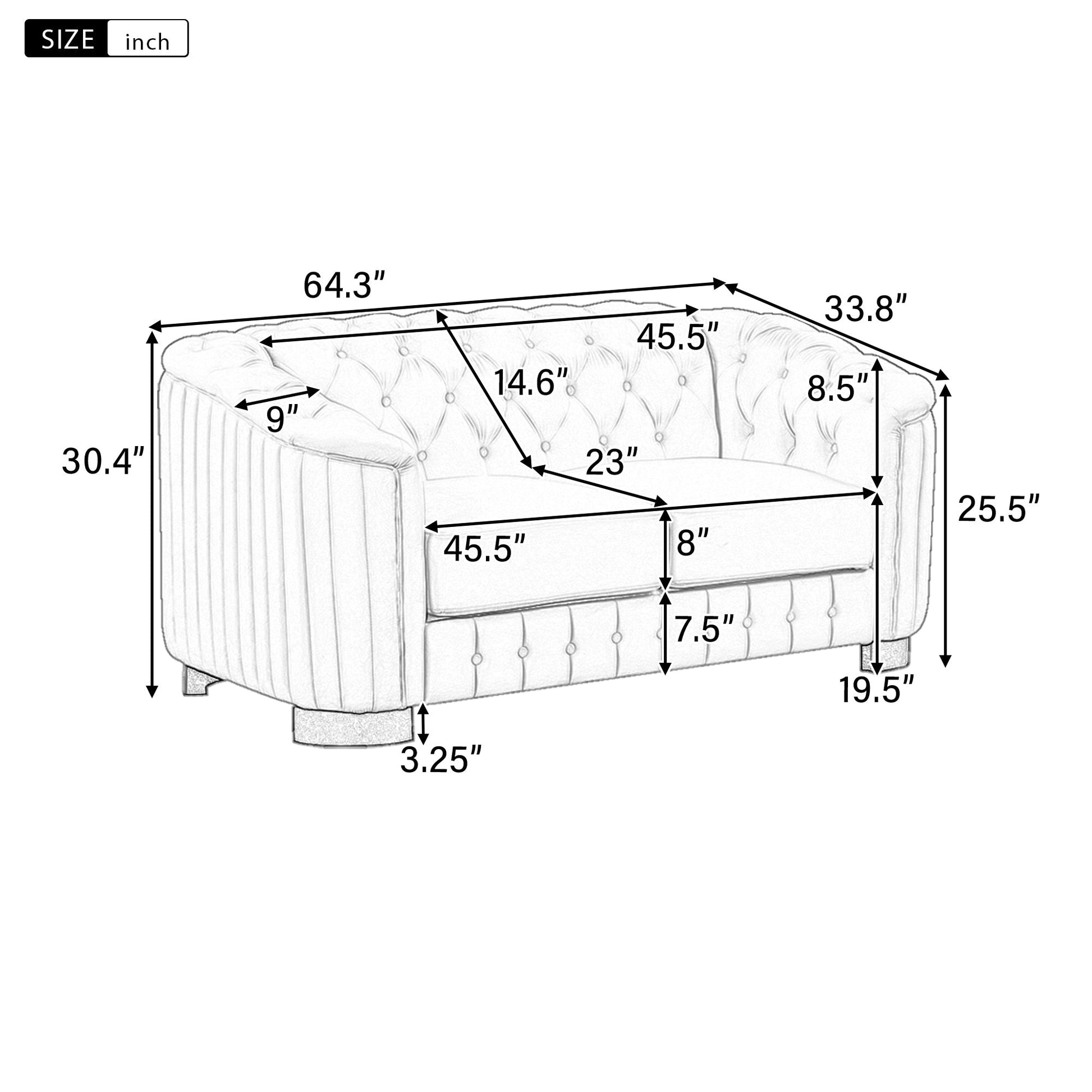 Canapé causeuse rembourré en velours 64,3 pouces, canapé causeuse moderne avec coussin d'assise épais et amovible, canapé causeuse 2 places