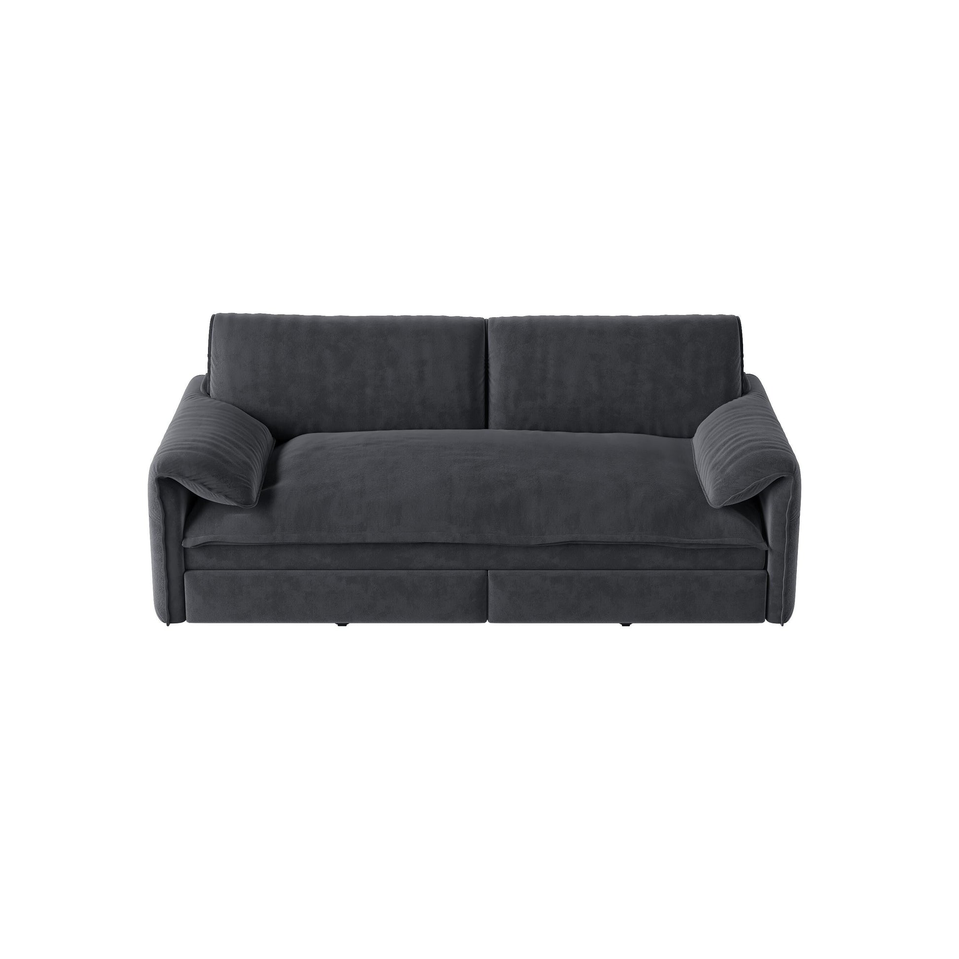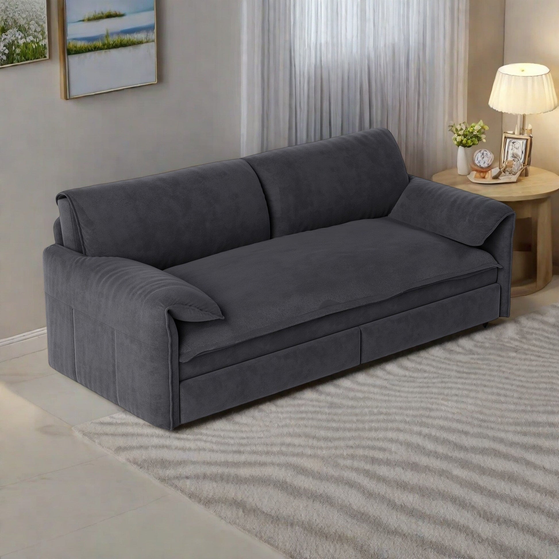 Canapé-lit 2 places en velours avec rangement latéral pour salon et appartement