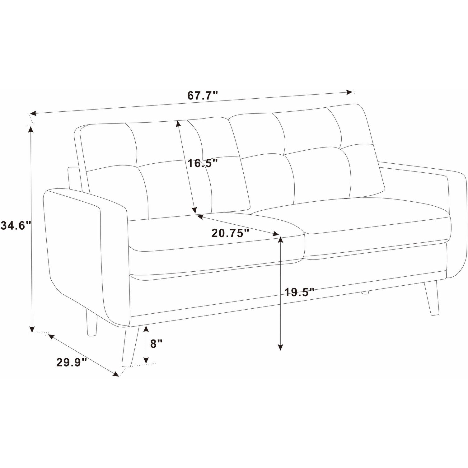 Canapé causeuse capitonné moderne du milieu du siècle de 67,7 po de large avec pieds en bois