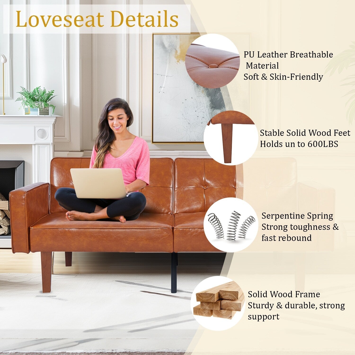 - 【Design élégant】 Conception de canapé moderne du milieu du siècle avec dossier touffeté, design vintage avec un similicuir doux, canapé-lit causeuse avec des tissus délicats qui peuvent correspondre à toutes sortes de styles de décoration intérieure et embellir votre maison.