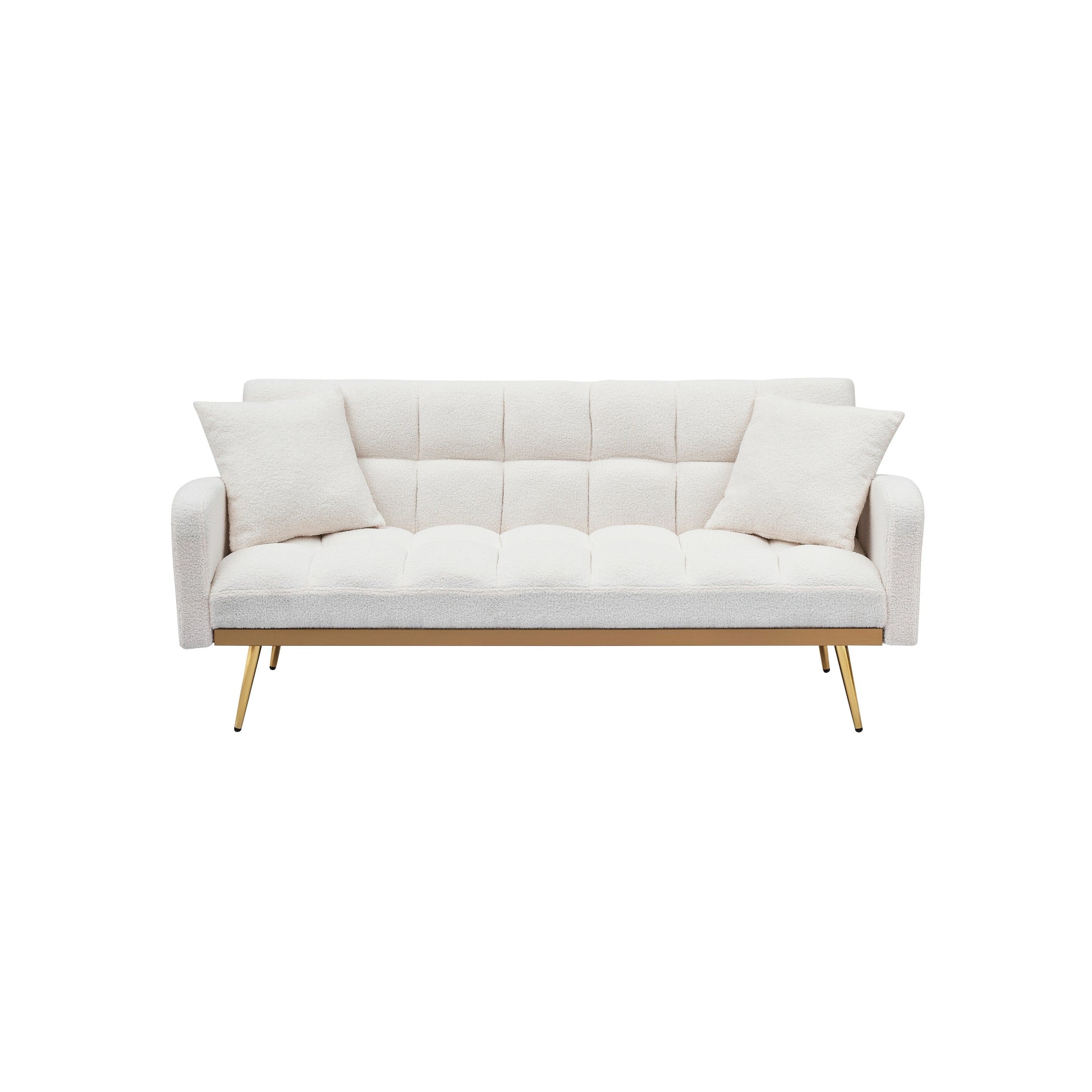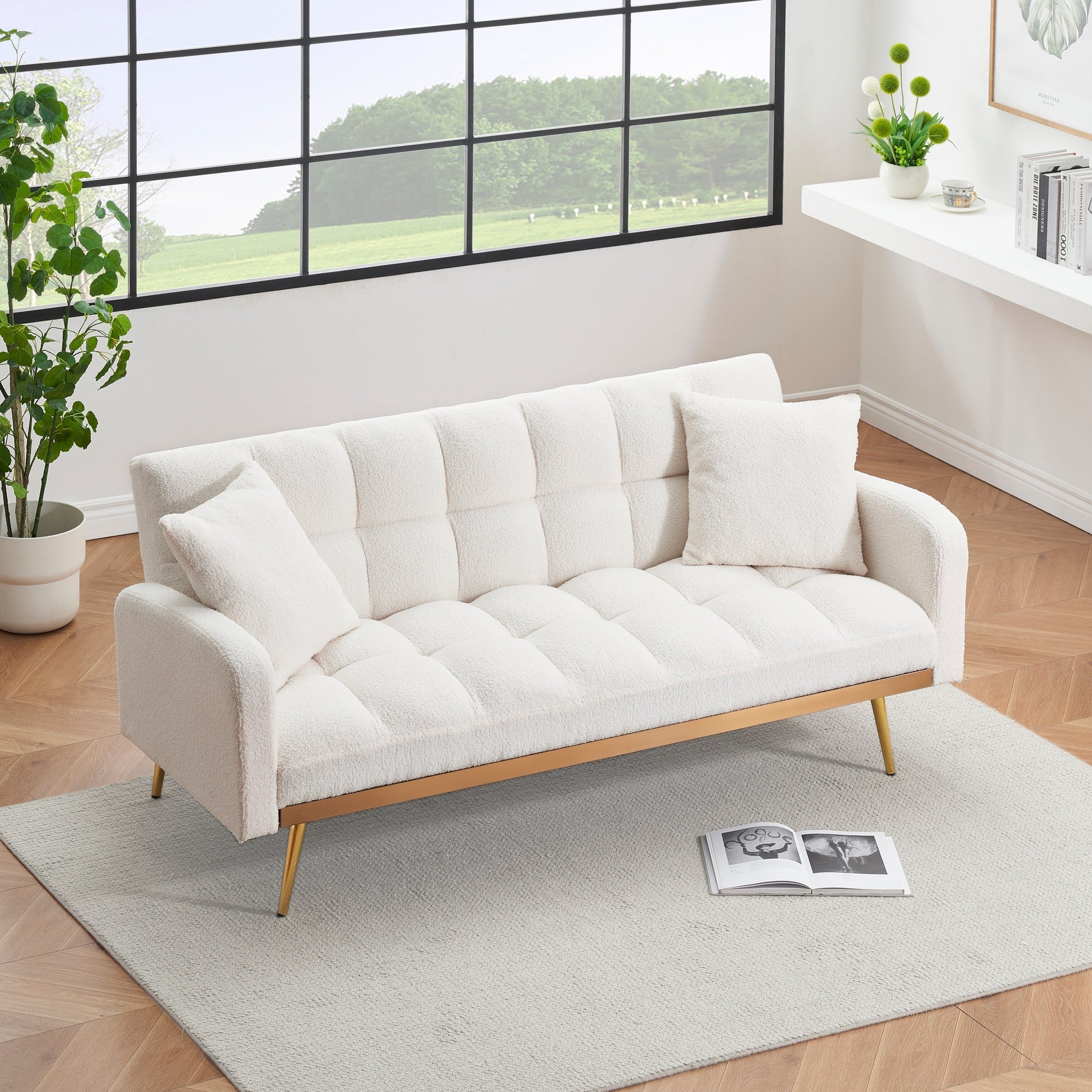 Canapé-lit beige 69 pouces avec canapé Teddy réglable pour petits espaces, salon et chambre