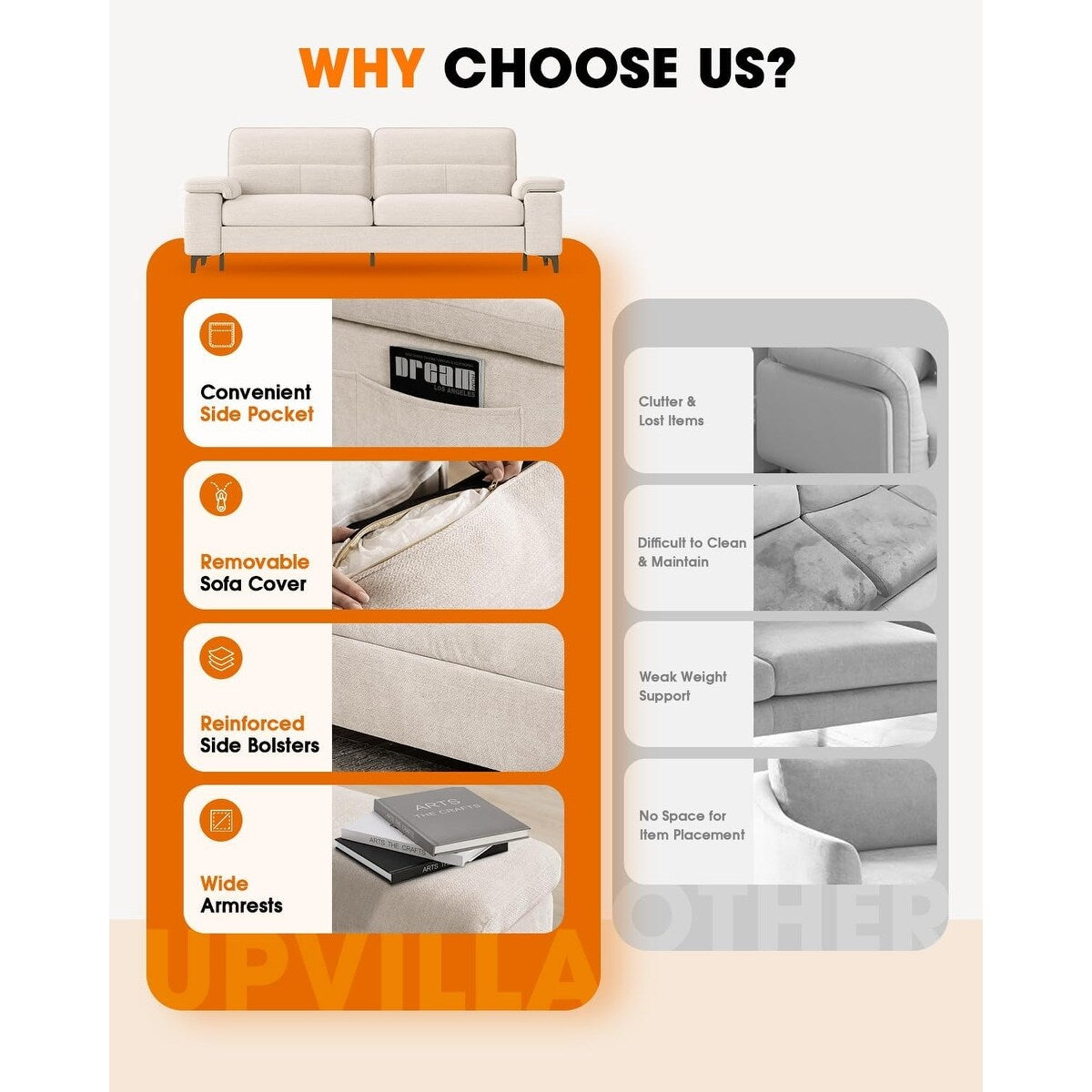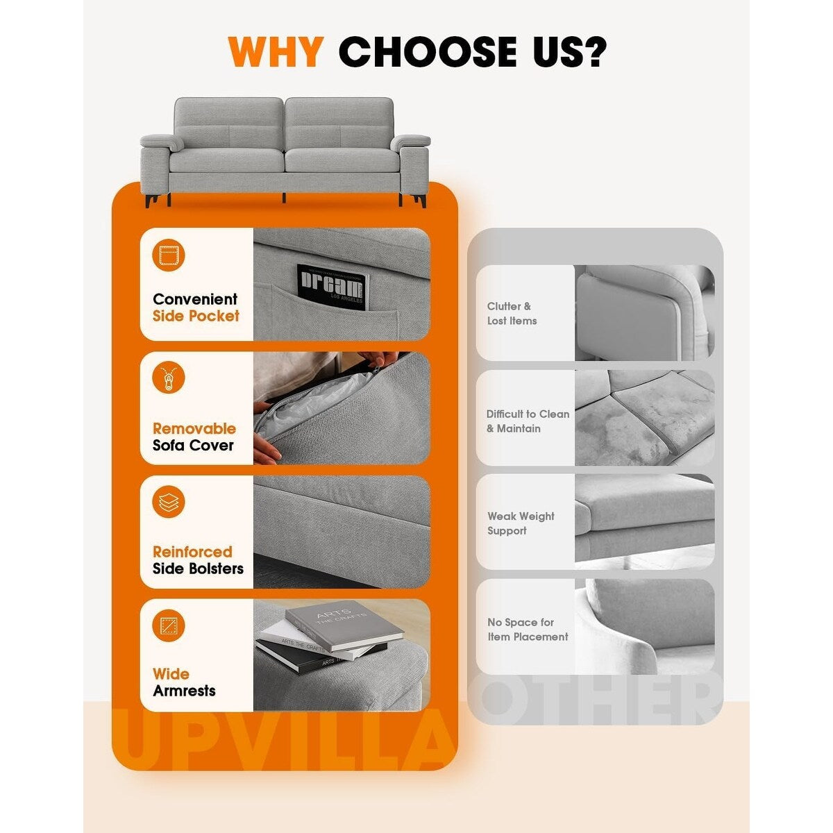 Canapé 2 places en chenille 71,25 po – Assise profonde avec coussin 8 places, accoudoir convertible et housse amovible