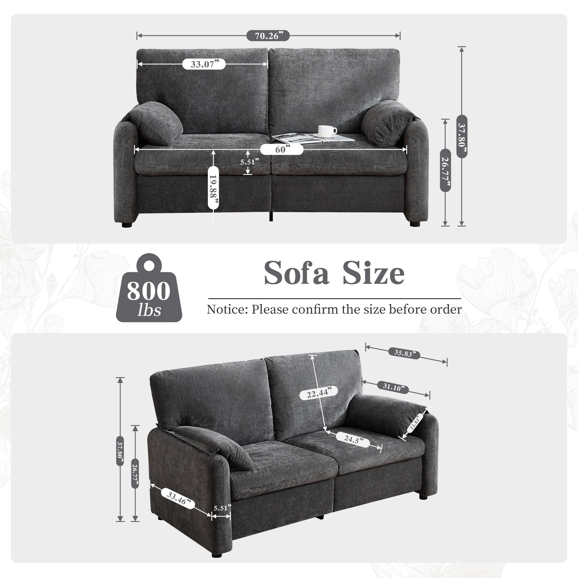 Canapé 2 places en chenille 71,28 pouces, confort nuageux avec éponge haute résilience, design minimaliste moderne