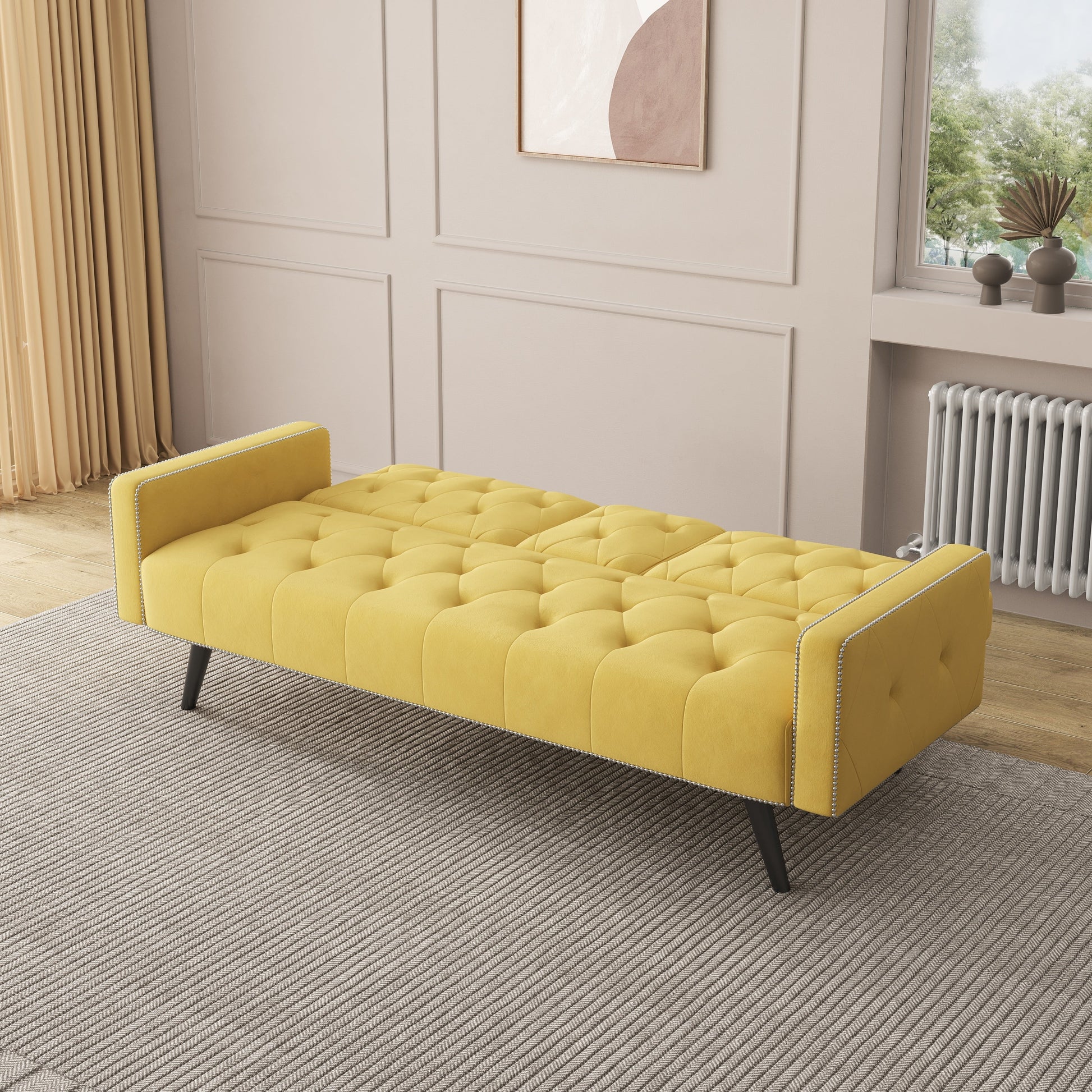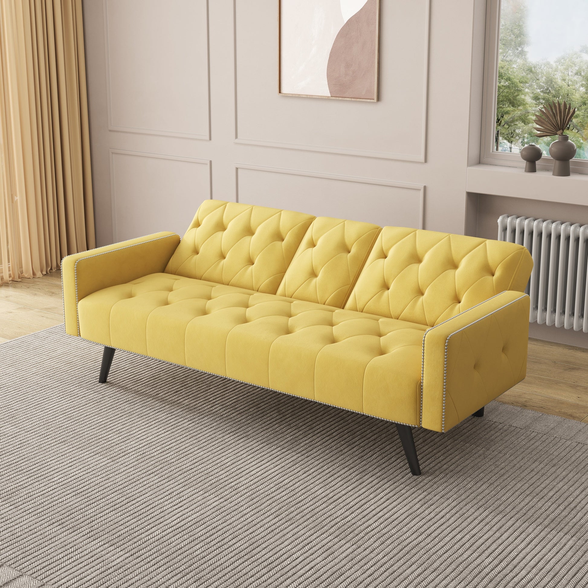 Canapé-lit 3 places en velours 72 avec tête de clou et porte-gobelets pour le salon