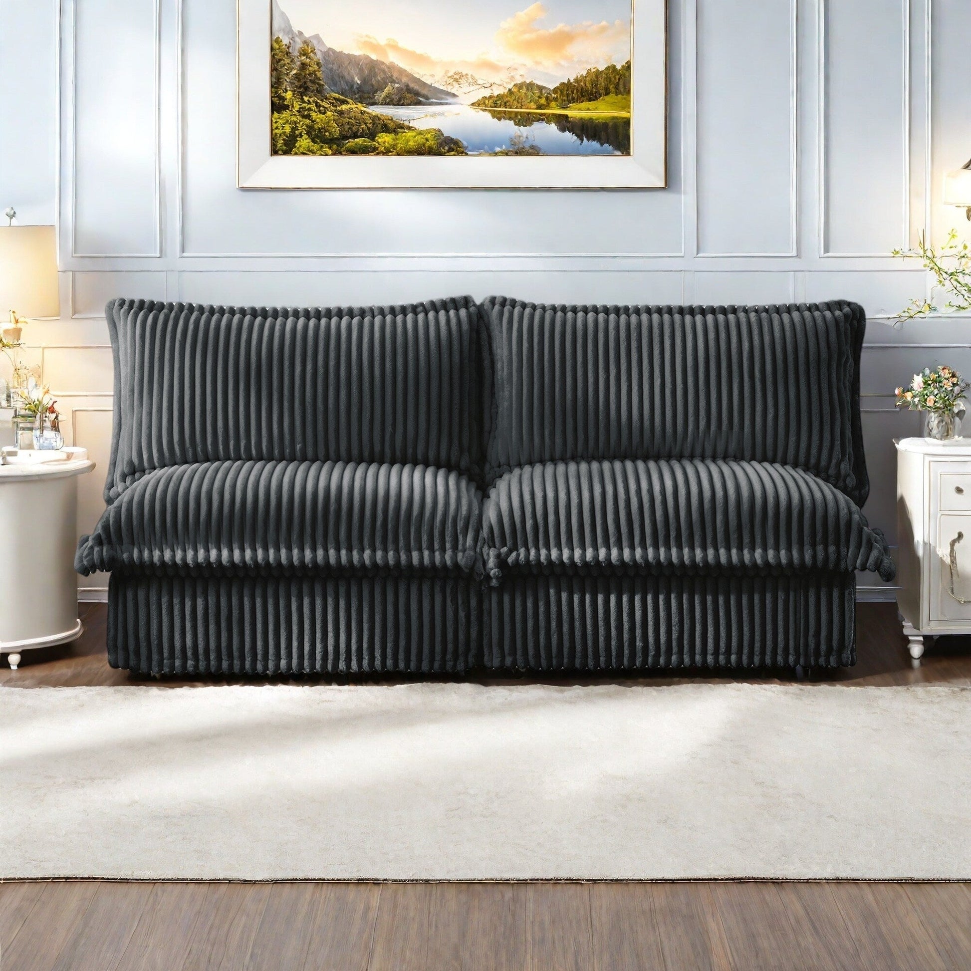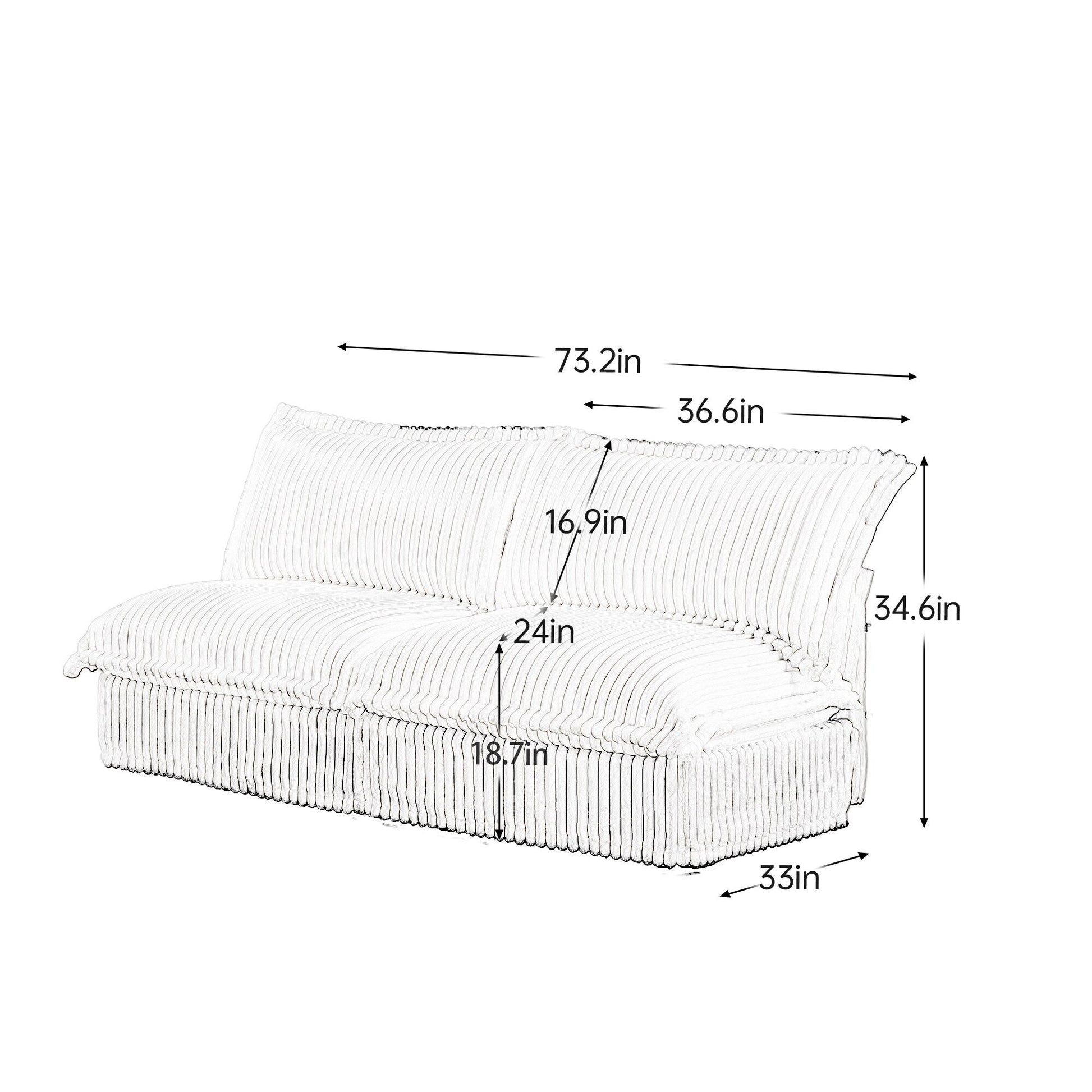 Canapé 3 places sans accoudoirs en velours côtelé 73.2 profond pour salon et chambre