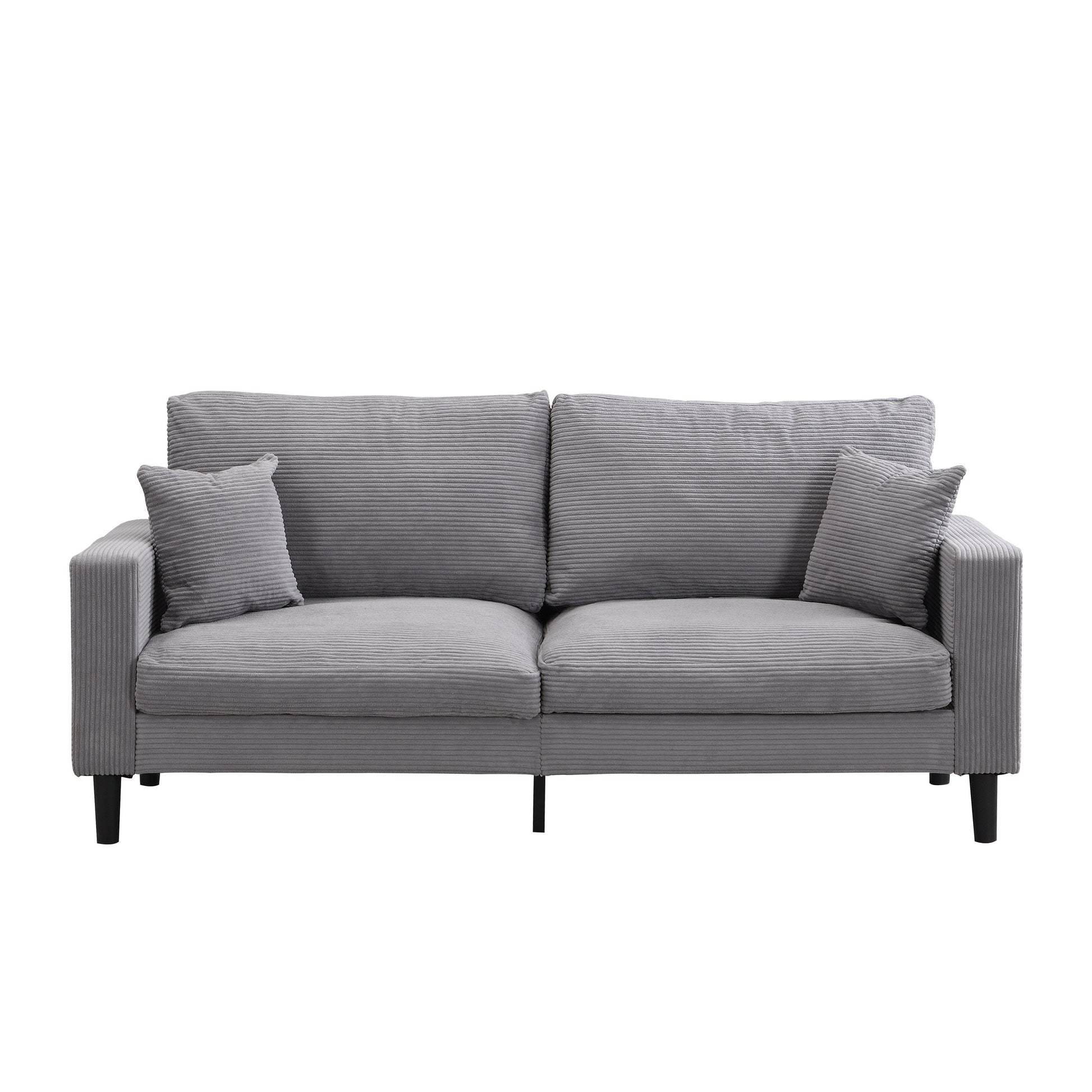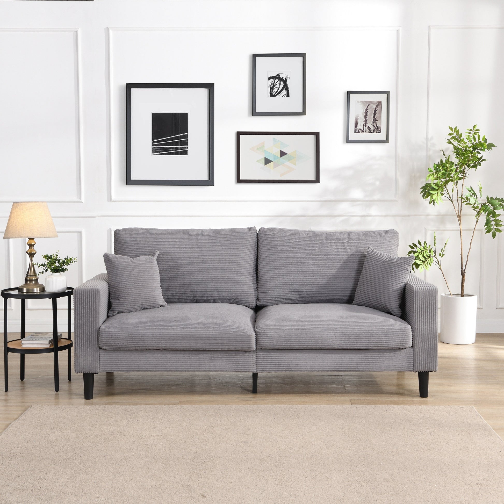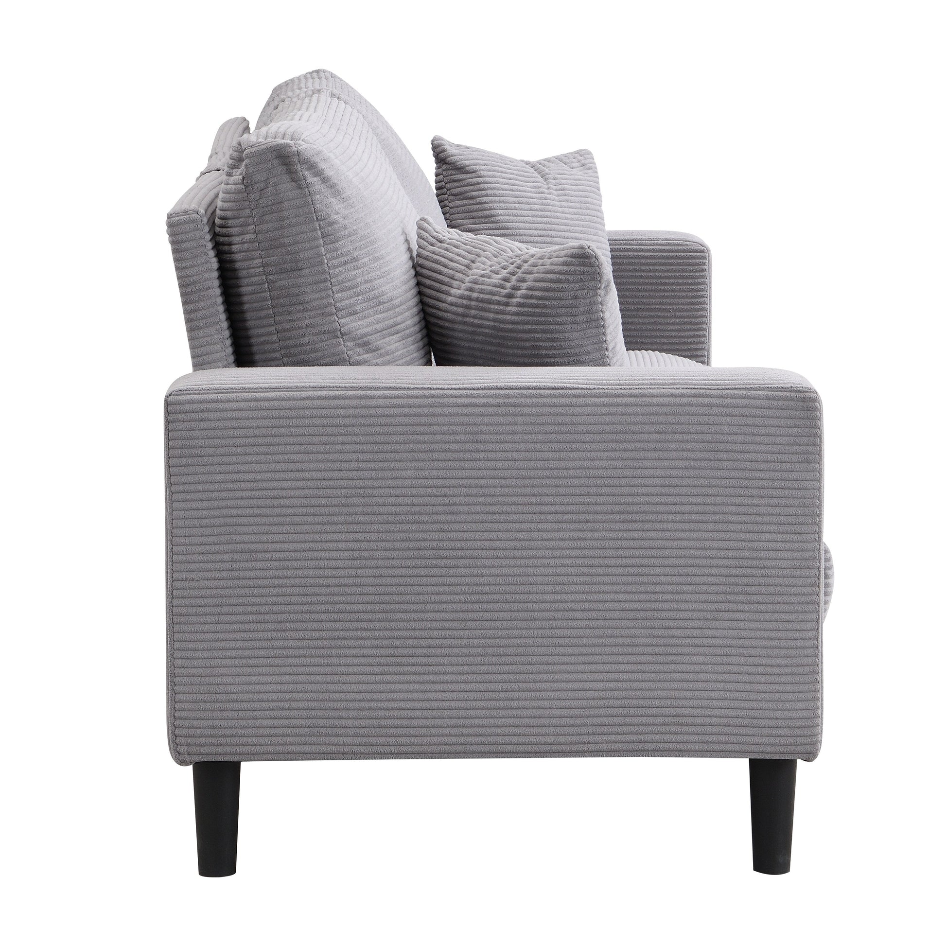 Canapé 3 places haute résilience de 74 pouces, cadre en bois, confortable, moderne, rembourré, gris clair