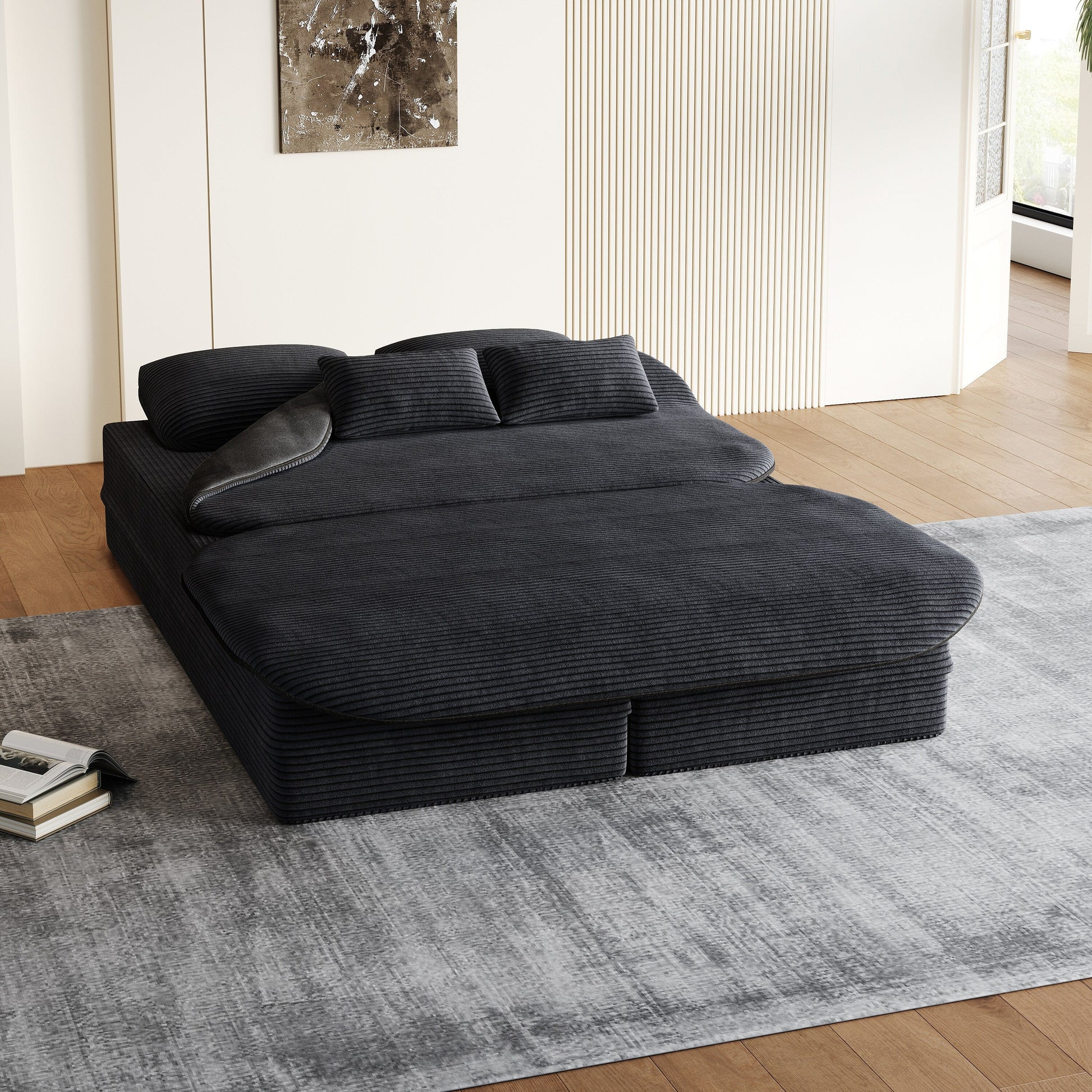 - Confort haut de gamme : Revêtu d'un velours côtelé doux et respirant, ce canapé convertible est doté d'une mousse haute densité qui soulage efficacement la pression tout en offrant un soutien optimal. Les quatre oreillers inclus optimisent votre détente et vous garantissent une détente incomparable.