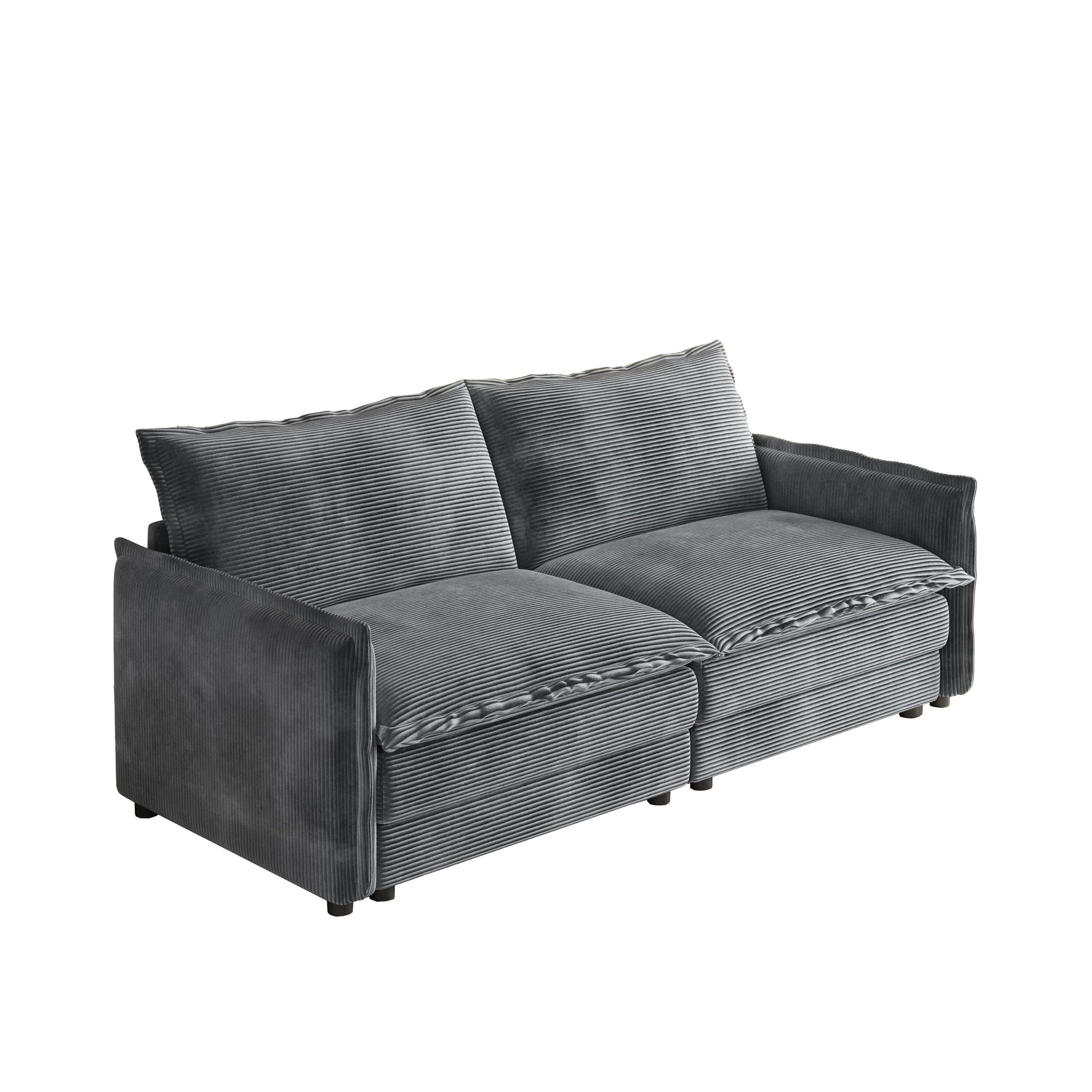 Canapé 2 places en velours côtelé 75, assise profonde avec canapé et 2 coussins pour le salon