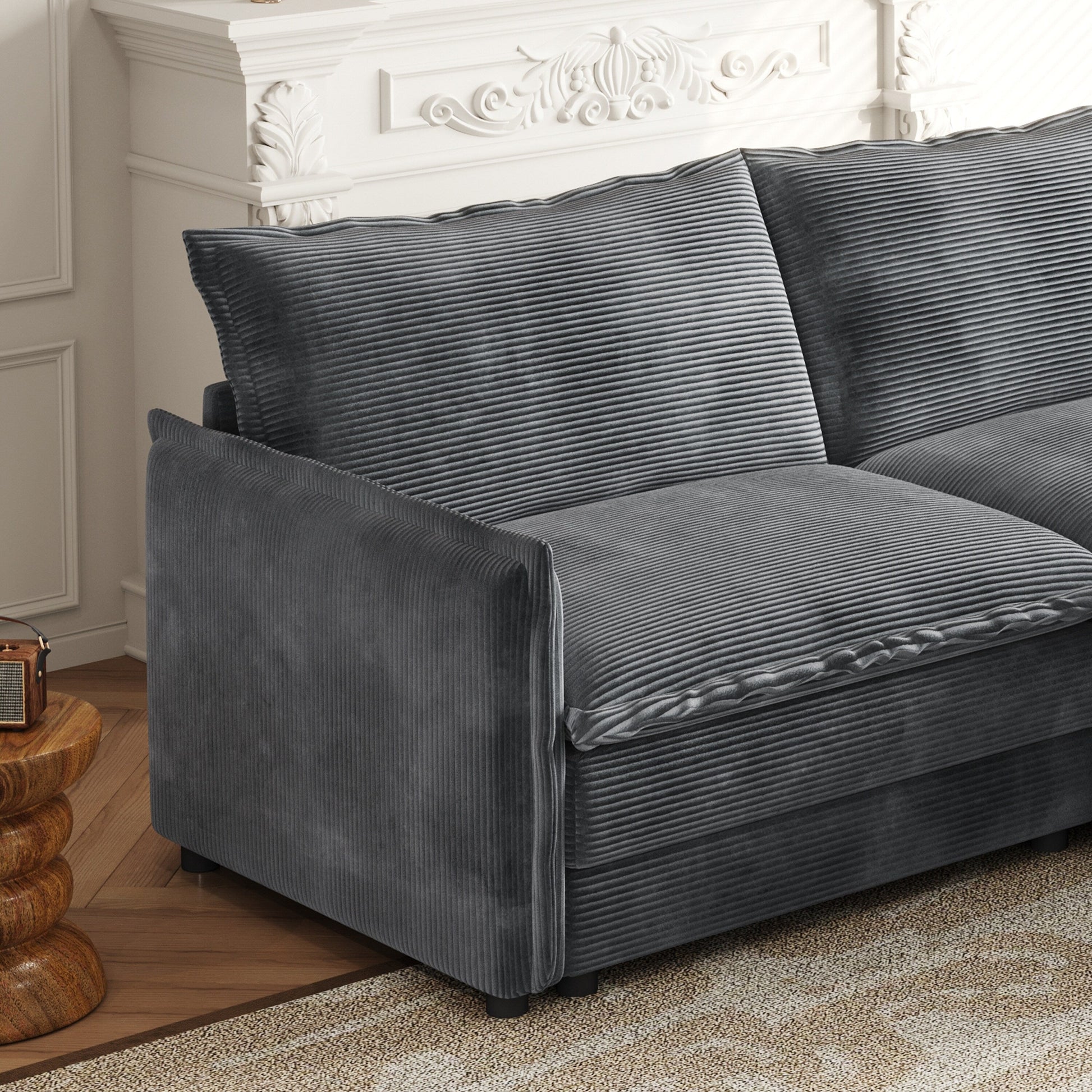 - Matériau de qualité supérieure : cadre en bois massif robuste, tissu en velours côtelé haut de gamme et éponge de haute qualité garantissent durabilité et confort.