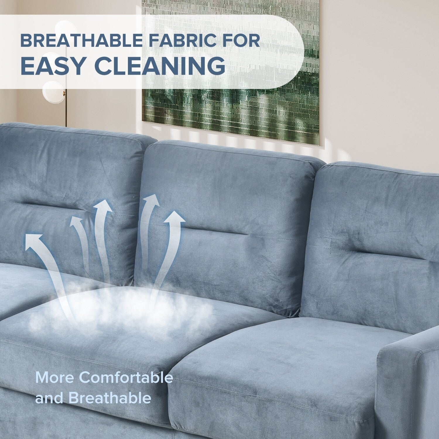 - Plongez dans l'étreinte luxueuse de notre canapé, recouvert d'un tissu de velours exquis qui ajoute non seulement une touche de raffinement, mais offre également une commodité de nettoyage facile, rehaussant à la fois le style et la praticité de votre espace de vie.