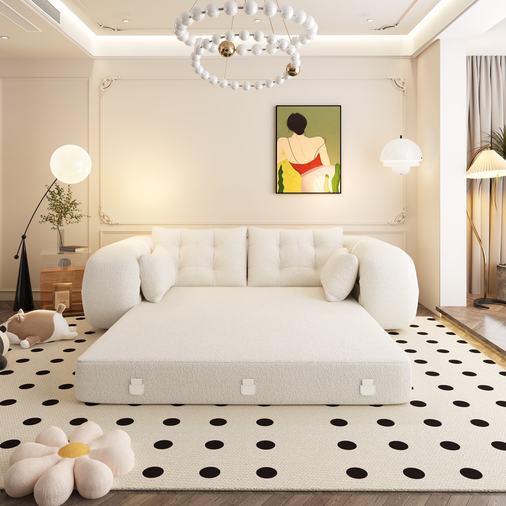 - Confort haut de gamme : Revêtu d'un tissu Teddy doux et respirant, ce canapé convertible est doté d'une mousse haute densité qui soulage efficacement la pression tout en offrant un soutien optimal. Ses coussins moelleux optimisent votre détente et vous garantissent une détente incomparable. Idéal pour toute la famille, ce havre de paix est aussi doux pour les peaux sensibles qu'élégant.