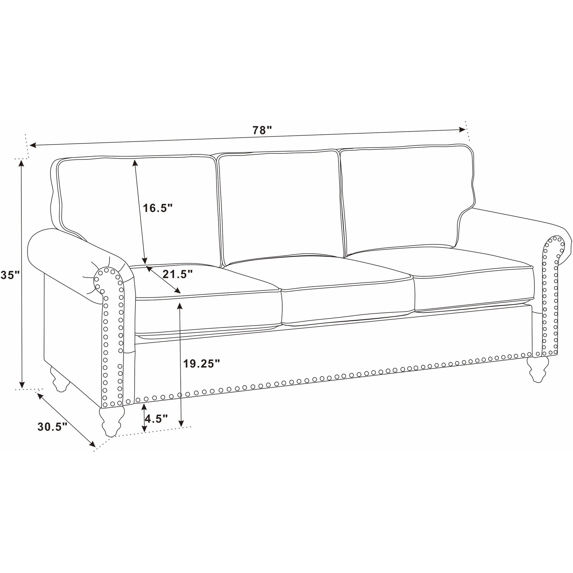 - Dimensions : 30,5 pouces de long x 78,0 pouces de large x 35,0 pouces de haut
