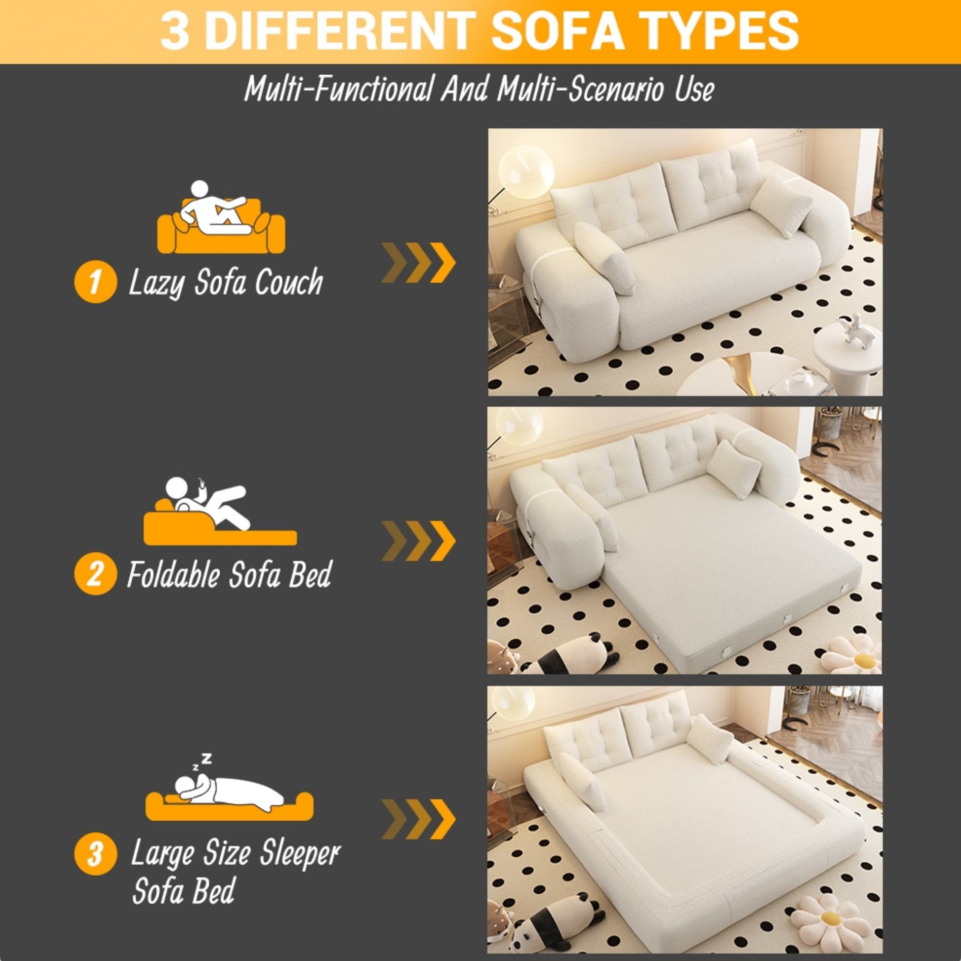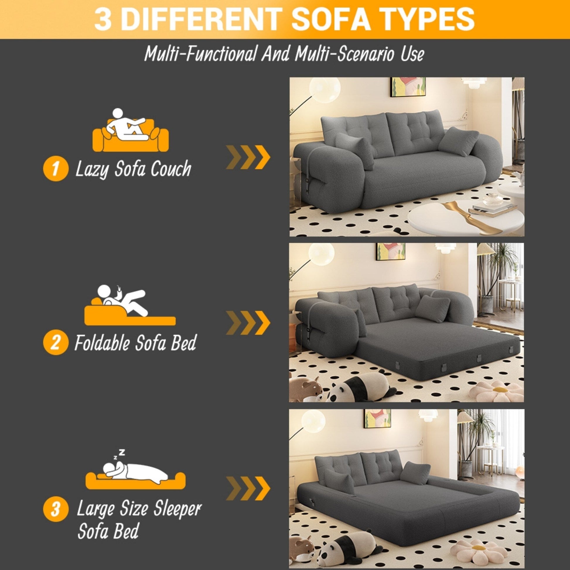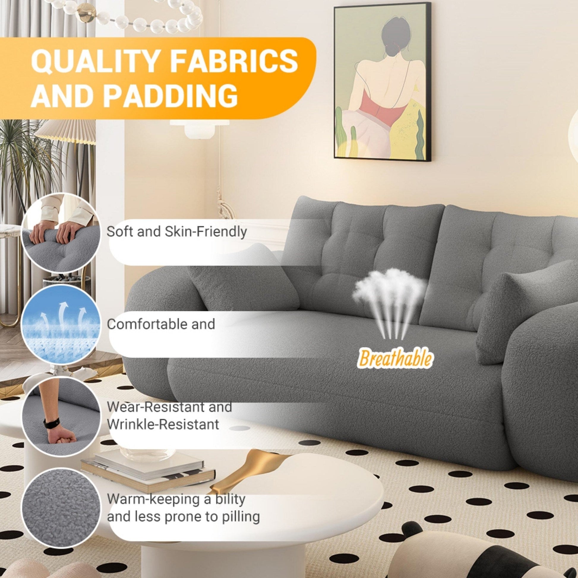 - Confort haut de gamme : Revêtu d'un tissu Teddy doux et respirant, ce canapé convertible est doté d'une mousse haute densité qui soulage efficacement la pression tout en offrant un soutien optimal. Ses coussins moelleux optimisent votre détente et vous garantissent une détente incomparable. Idéal pour toute la famille, ce havre de paix est aussi doux pour les peaux sensibles qu'élégant.